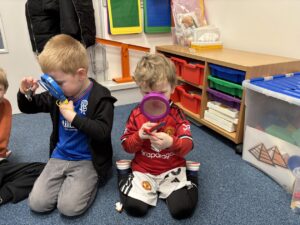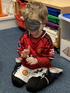 They also used magnifying glasses to closely observe each animal’s features and were excited to be blindfolded while guessing the animal using only their sense of touch.