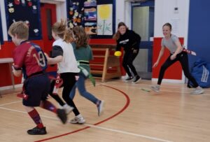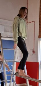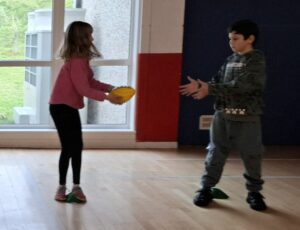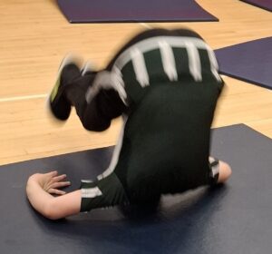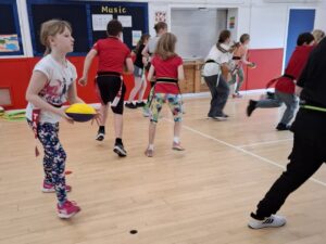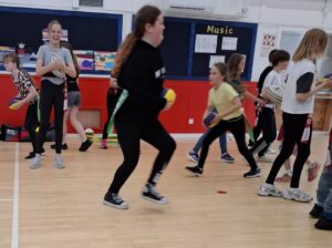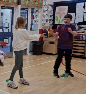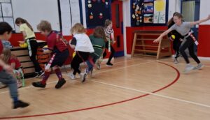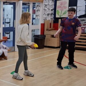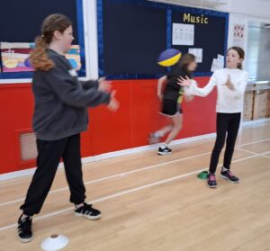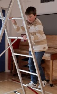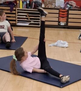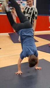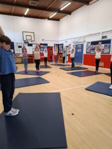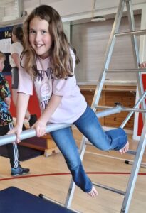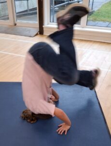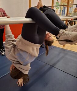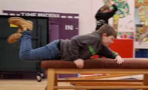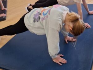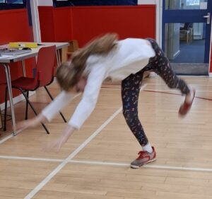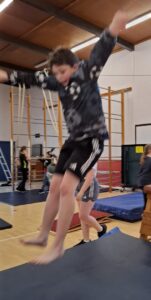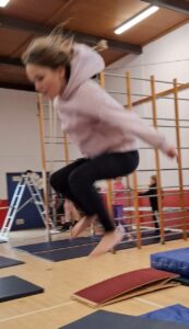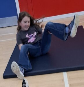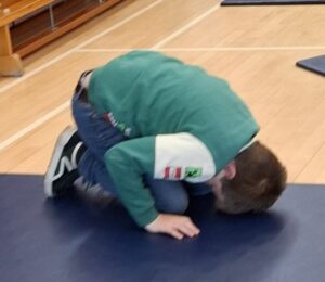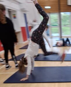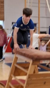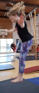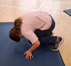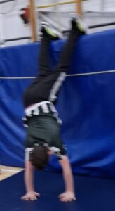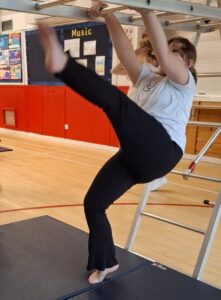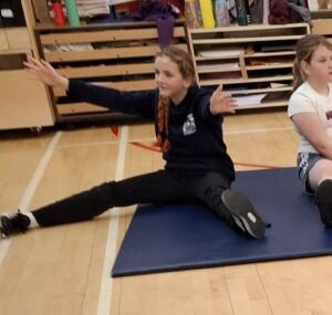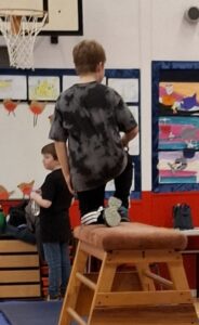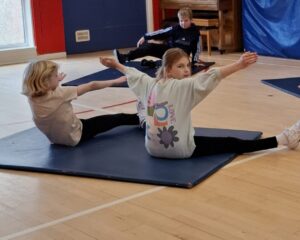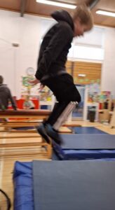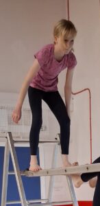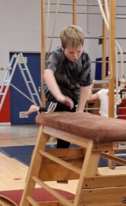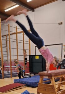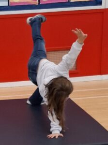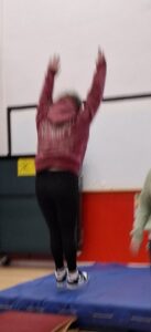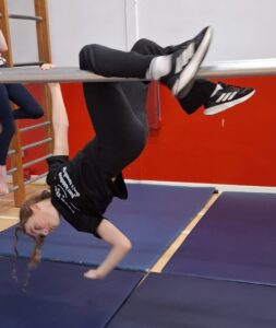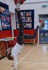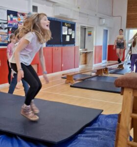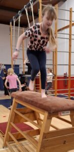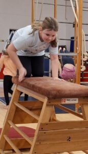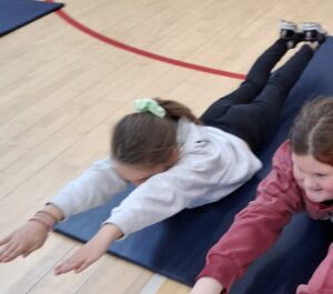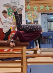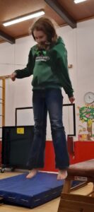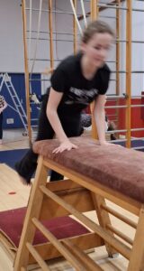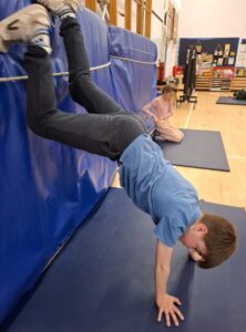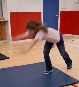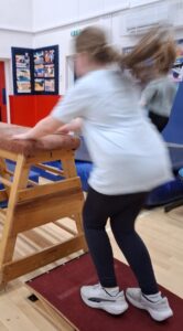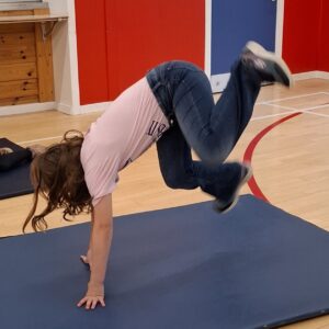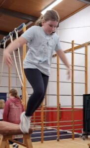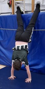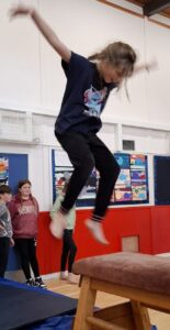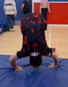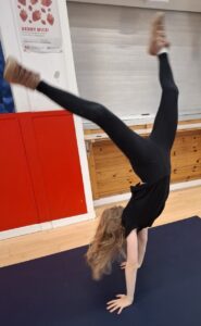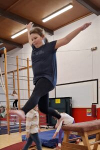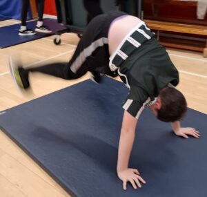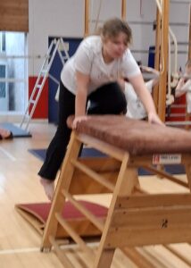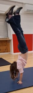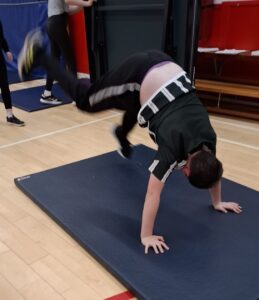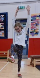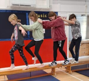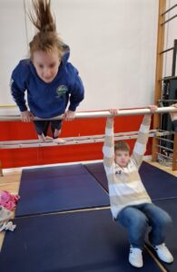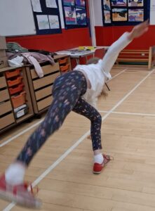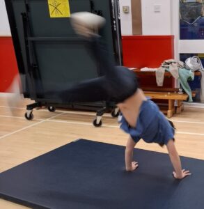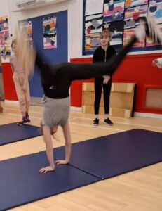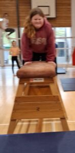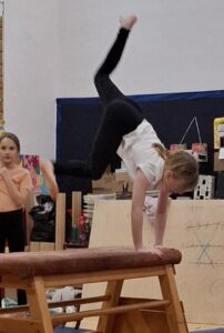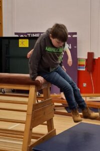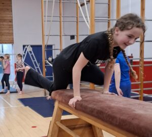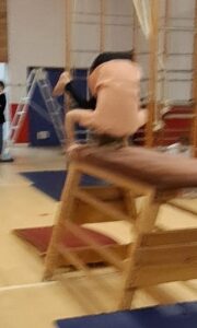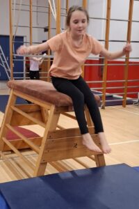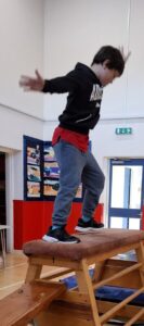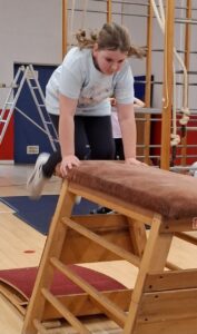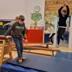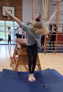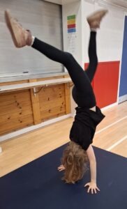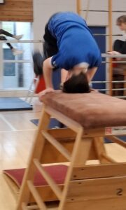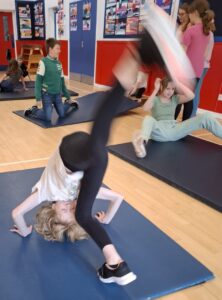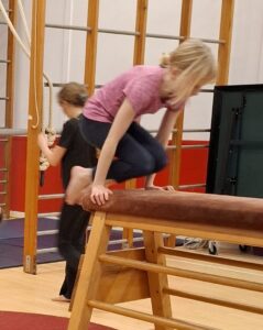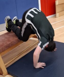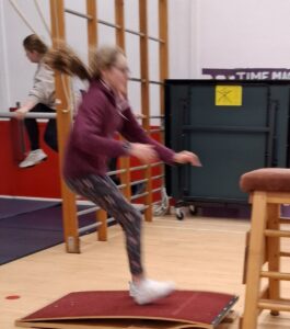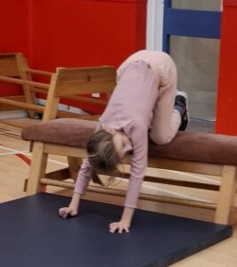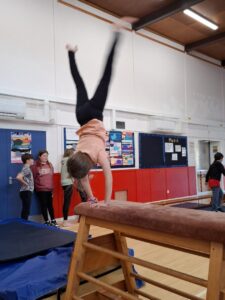 Gymnastics. For PE, we are currently doing gymnastics and have been working on the different pieces of equipment. We have got to try out the A-frame, the high box, the big climbing frame, springboards, benches and more. It has been lots of fun and the whole class have enjoyed it!