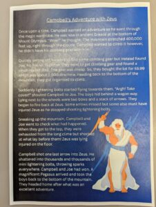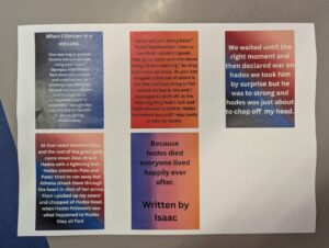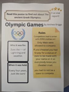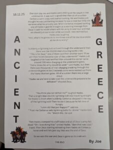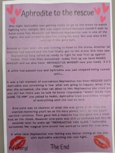 This week, we have been writing stories using the 5-part plan. We could write our story about anything linked to Ancient Greece. Here are some of the stories below.