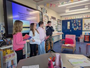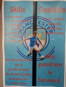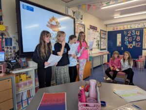 Writing. Last week we worked in groups to write a rap. We started by watching the ‘Michael Rosen Rap’ on Youtube (you should look it up as it is very funny). We all chose different topics to write our raps on but we had to make sure they had a beat, rhythm and rhyme. We then performed our raps to the class. They were very funny and everyone did an excellent job.