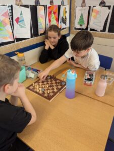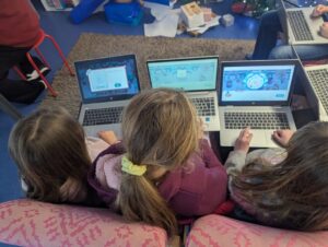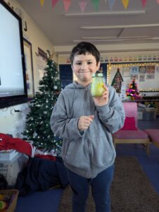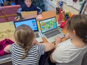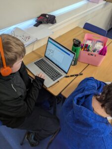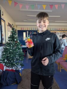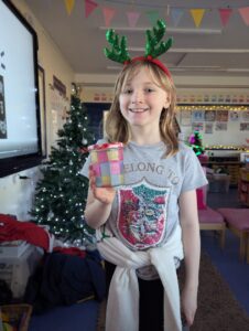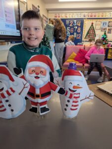 Maths – Prodigy.  We had 15 extra minutes of Prodigy because of Naughty or Nice. Every morning, Mrs Adamson spins the Advent wheel of names and if it is you that it lands on, then you pick a slip of paper. Get a green slip of paper with writing, that means you got a Nice, but if it was red… you got a Naughty! For example, if you got a Naughty you would have to tidy the kindles for a week, or if you got a Nice you could choose a game to play!