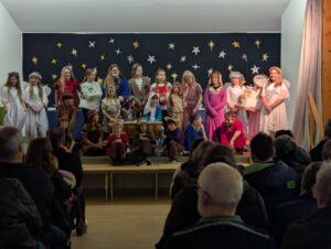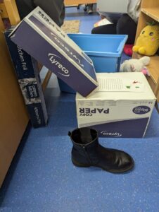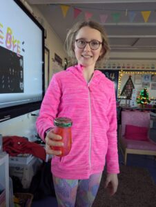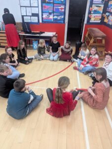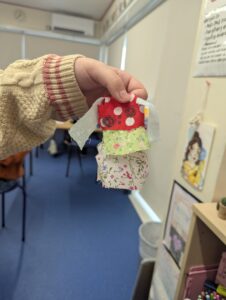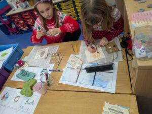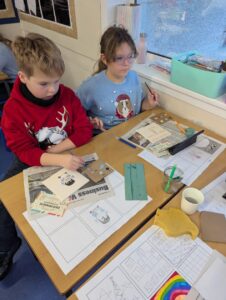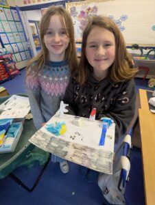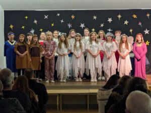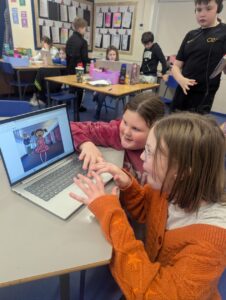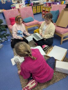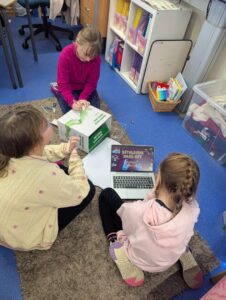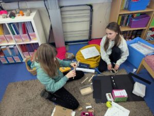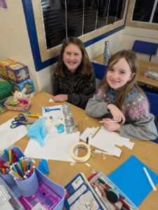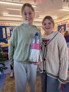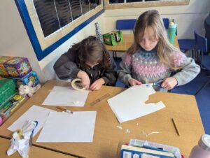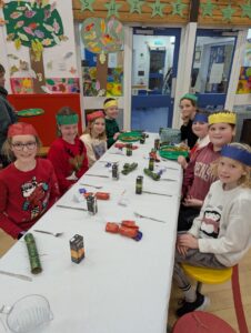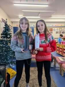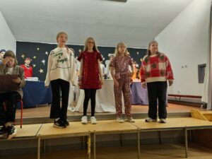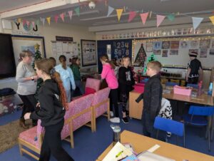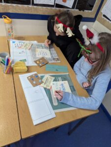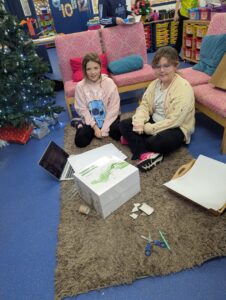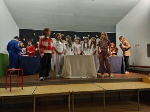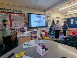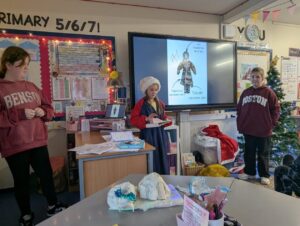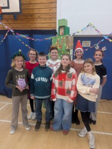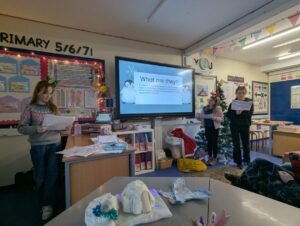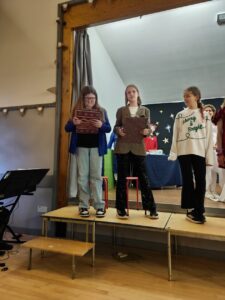 Christmas Concert Practice. We have moved the tables so we have a mini stage to rehearse in our classroom. We have also started making and collecting props for our Bethlehem Bake-Off. Cheryl and Eilidh Smith is our prompts, the people to tell us our lines when we forget them (which we hope won’t happen).