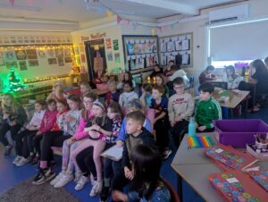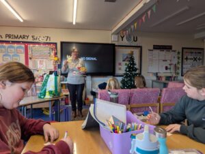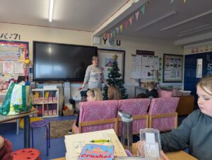 Class visitors. On Friday morning, P4-7 enjoyed having a few visitors to help us on our business project for the Christmas Craft fair. We learned about different parts of a business and how to run a successful business. We even got to take part in a fun competition. Thanks to Brian and Kristina for coming in to see us.