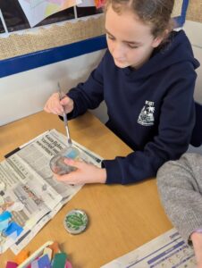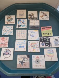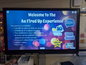 The Aa Fired Up Experience. As a result of all our amazing enterprise work, Miss Mann and Mrs A organised an ‘Aa Fired Up’ experience for both classes. We designed a tile with anything we wanted and then painted them. We also got to have a cake, a drink and a squishy cube. It was a nice surprise.