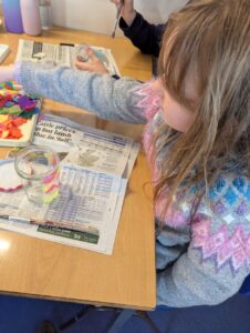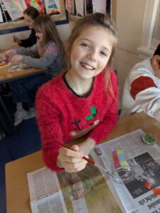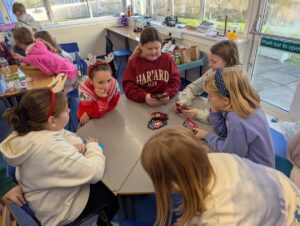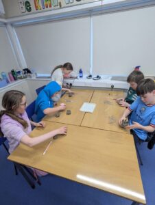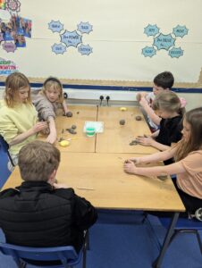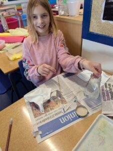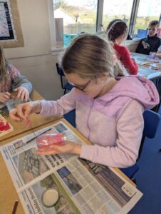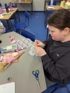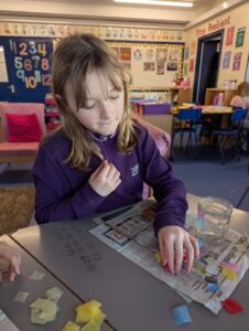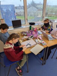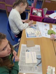 Maths – Money. For maths this week, some of it has been linked in with our Enterprise project. In our groups, we looked at costings of our products with Mrs A and then worked out how much we would need to sell things for. Cheryl also checked off all orders to make sure our accounts were in order. We also did an activity with P4/5 to think about how to fairly price our items. We had to think about how much time and effort went into our products as well as the cost of materials.