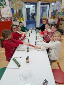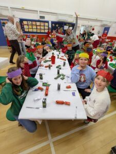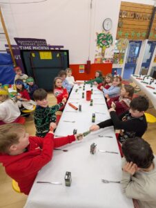 Christmas Lunch. The P7 pupils got to help set up the tables for lunch and then helped to serve the lunches. It was delicious and we all got to pull crackers too.