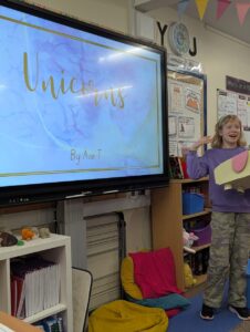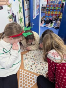 Literacy – Plays.  This week we have been continuing to do plays during reading time for us to be practicing for our Christmas concert. For group plays, Mrs A pulls out a group of people and we choose different roles for a play in a book, so we can practice characterisation, fluency and expression. We all love this and fight over who gets to take part. We have also been doing read throughs of the Christmas Concert too which we’re really enjoying.