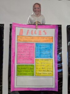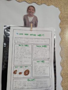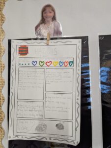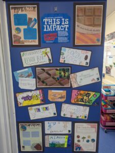 Chocolate! For our Big Question this week, I interviewed Megan to find out what the class were learning about.  “So we were learning about Fair Trade, in particular ‘Chocolate! Fair trade means that farmers get paid more money for their cocoa beans and a fair price as they don’t always get a fair amount of money for what they grow.  We go to try chocolate that was fair trade and we had the choice between different flavours. We then made chocolate fair trade posters in pairs and design our own fair trade chocolate bars. ”