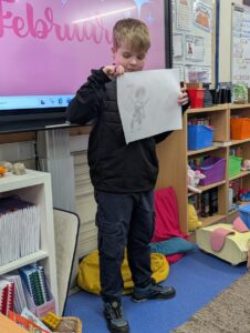 Big Question – The Choice to Act. The best class value is kindness. This week we have been looking at values in action. We agreed on our top 4 class values of fun, determination, kindness and creativity and then Mrs A set up ‘Value jars’ that we can add counters to when we see the value in action. We also drew big people and wrote key values on the inside and actions linked to these on the outside.