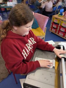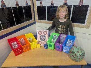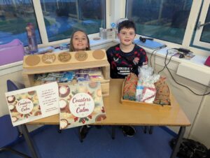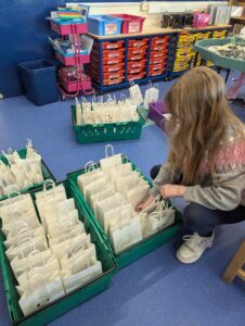 Maths – Money. For maths this week, some of it has been linked in with our Enterprise project. In our groups, we looked at costings of our products with Mrs A and then worked out how much we would need to sell things for. Cheryl also checked off all orders to make sure our accounts were in order. We also did an activity with P4/5 to think about how to fairly price our items. We had to think about how much time and effort went into our products as well as the cost of materials.