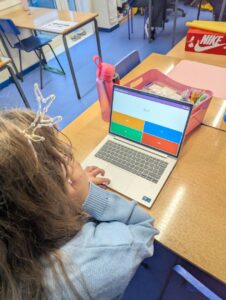 Literacy – Plays. This week we have been continuing to do plays during reading time for us to be practicing for our Christmas concert. For group plays, Mrs A pulls out a group of people and we choose different roles for a play in a book, so we can practice characterisation, fluency and expression. We all love this and fight over who gets to take part. We have also been doing read throughs of the Christmas Concert too which we’re really enjoying.