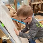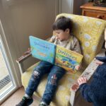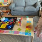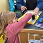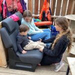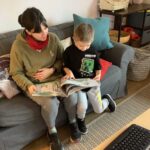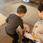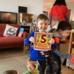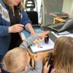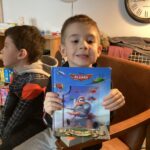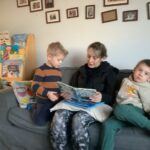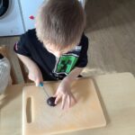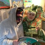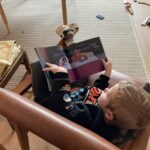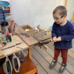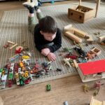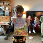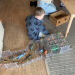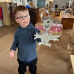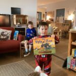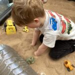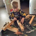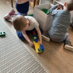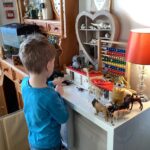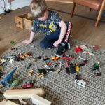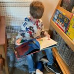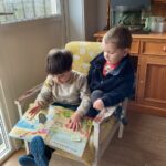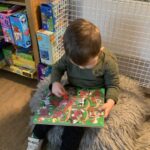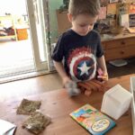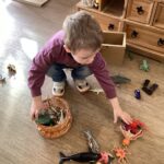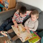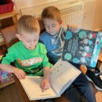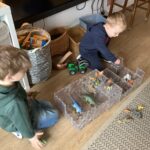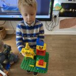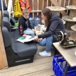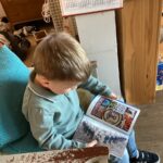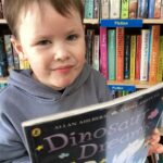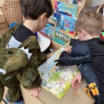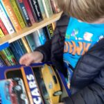 We went the the library van and put back our borrowed books. We chose a few more to borrow, thinking about what we didn’t already have and picking some favourite topics – dinosaurs, cars and animals.