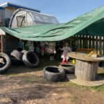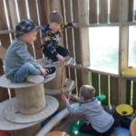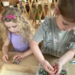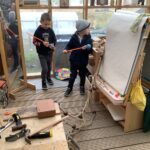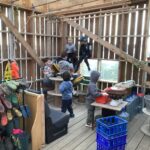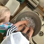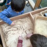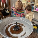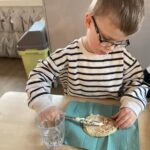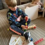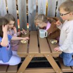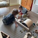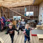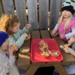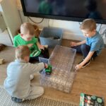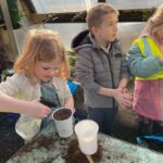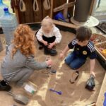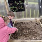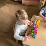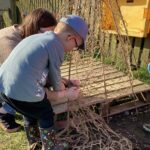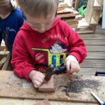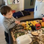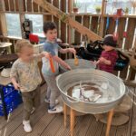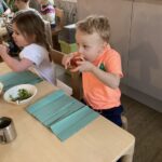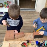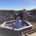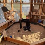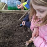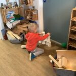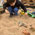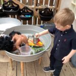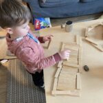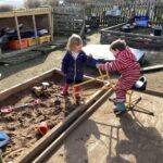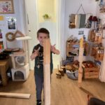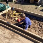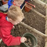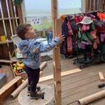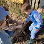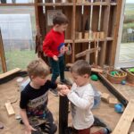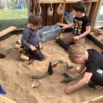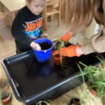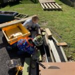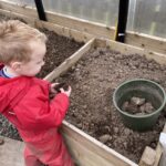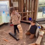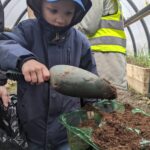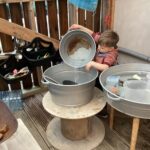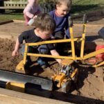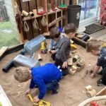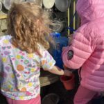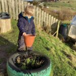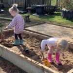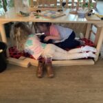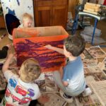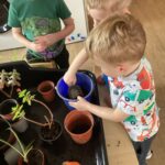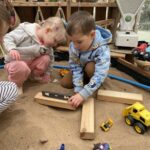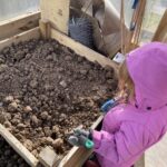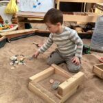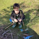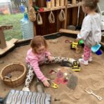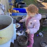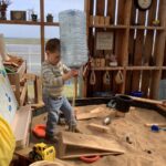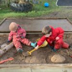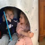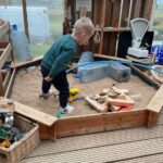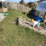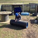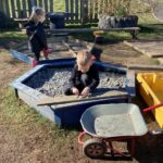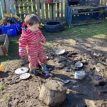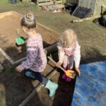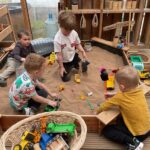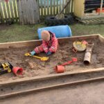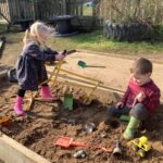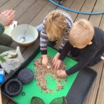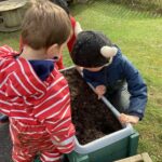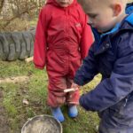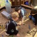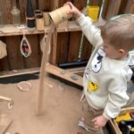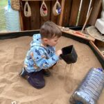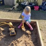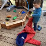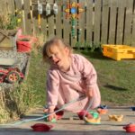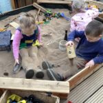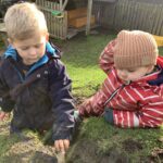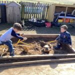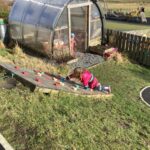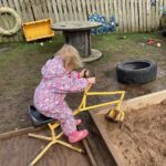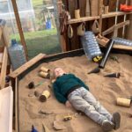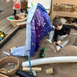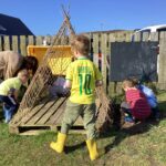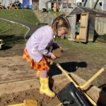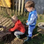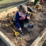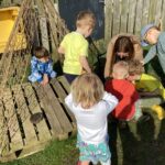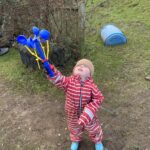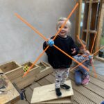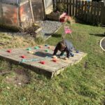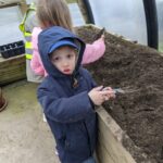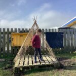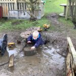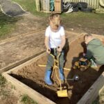 We have spent lots of time outside this week. Our highlights include building a sweet pea teepee, having snack, den building and digging.