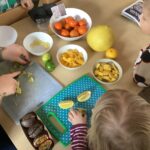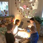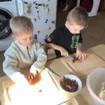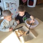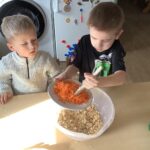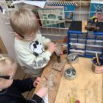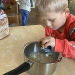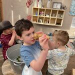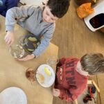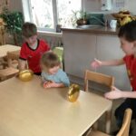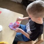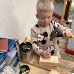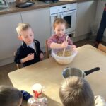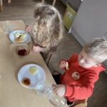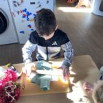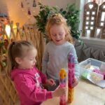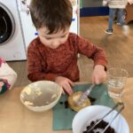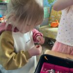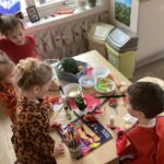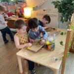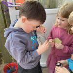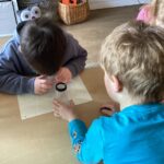 Here is a selection of our play and learning from the week. The bairns searched for bugs out at the back of the quiet room and used magnifying tools to see them up close. We also baked apple muffins and created structures from paper cups.