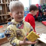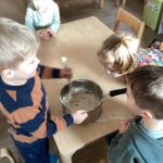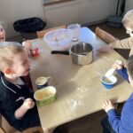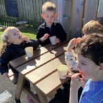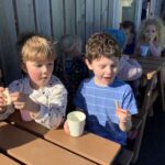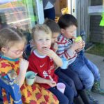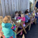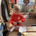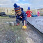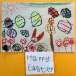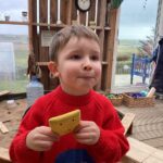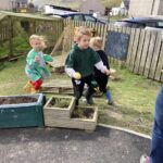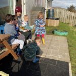 The bairns thought the residents next to the nursery would like an Easter card. They drew beautiful pictures including a chick, flowers and an Easter egg scene. We went around the houses delivering the cards and the bairns said a hearty “Happy Easter when it comes!” to everyone that was home.