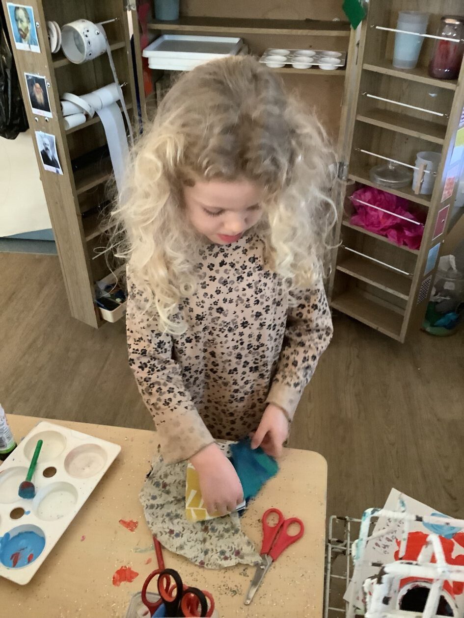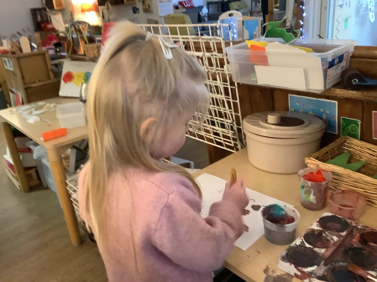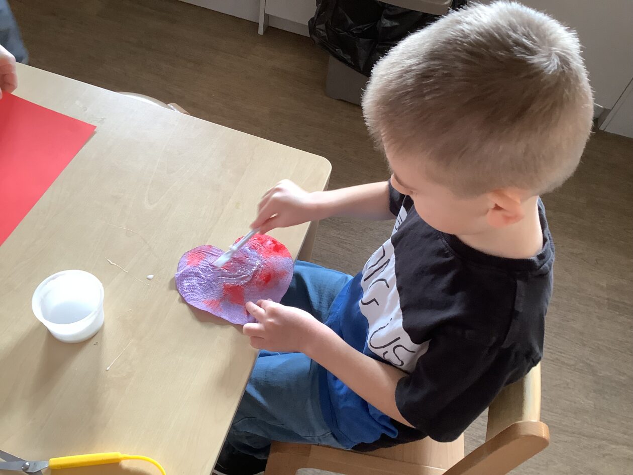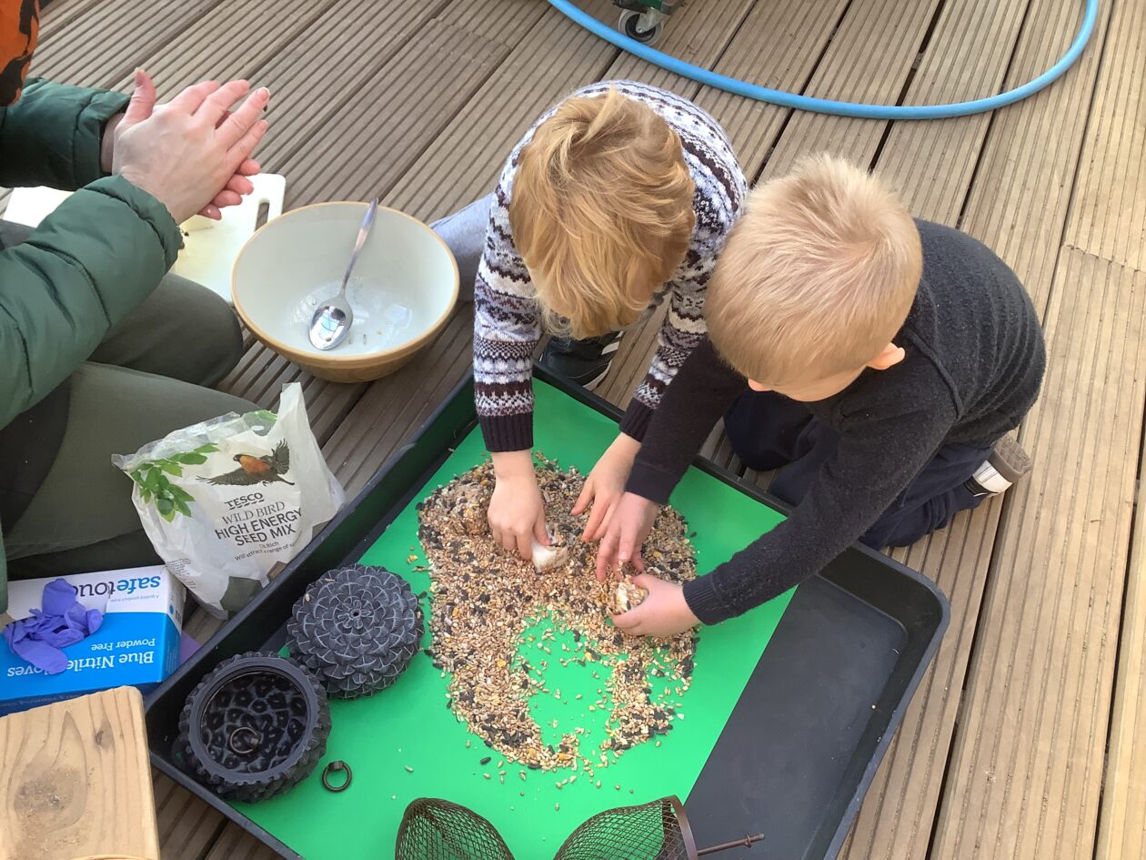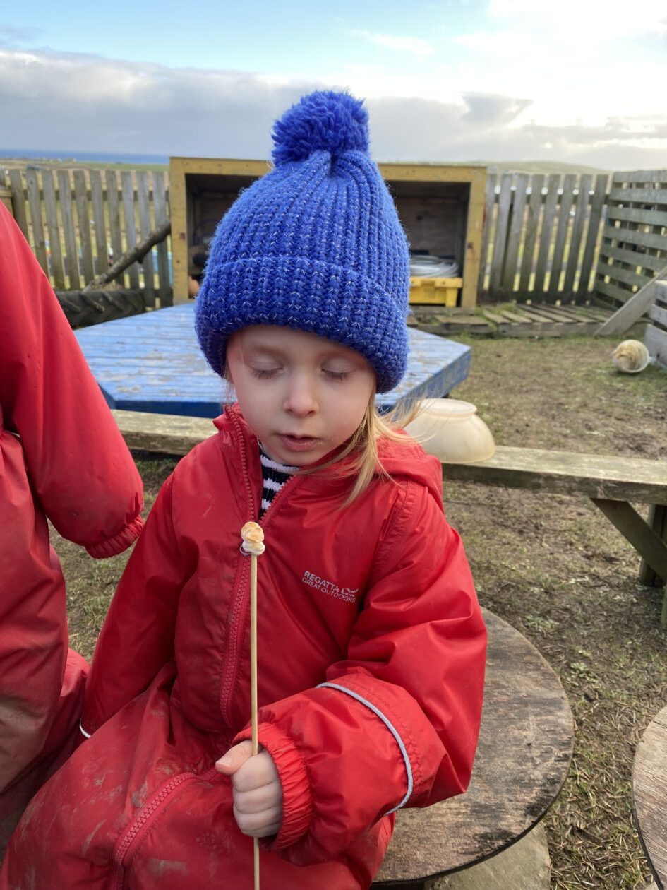 The paper making was a success! The bairns were very excited to see if the pulp had dried and carefully pulled it away from the cloths trying not to tear it. They found some leaves from the garden and fading valentines day flowers for printing using the hammers and rolling pins to see if the colours would come on to their paper. ‘The pink is there and my flower is squishy now.’ We explored the differences between hitting harder and softer with the hammer and how the colours were different because of this.