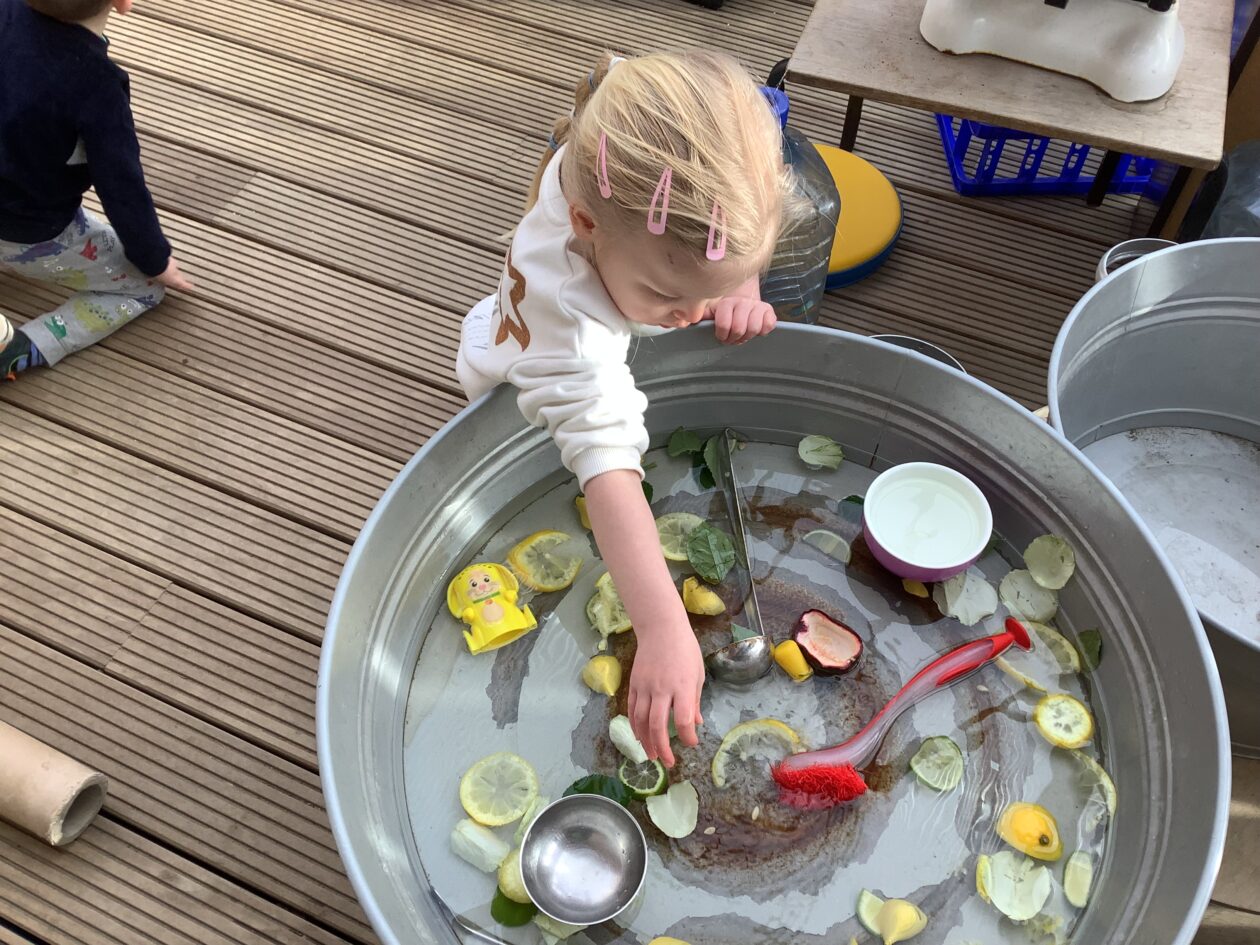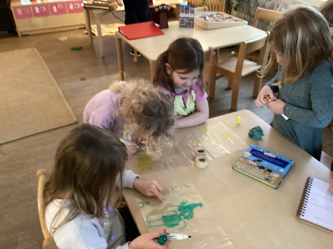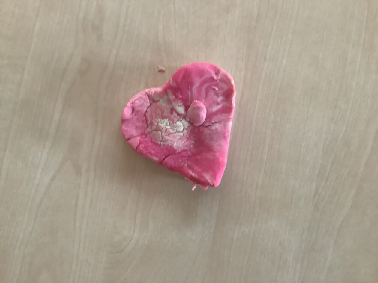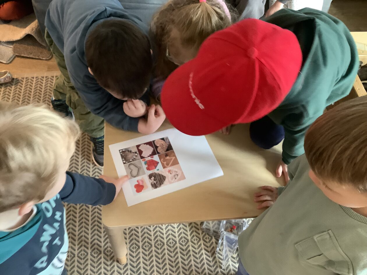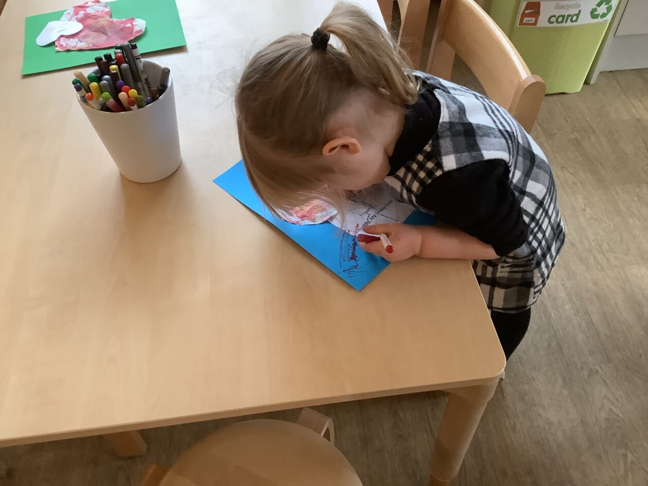 The paper making was a success! The bairns were very excited to see if the pulp had dried and carefully pulled it away from the cloths trying not to tear it. They found some leaves from the garden and fading valentines day flowers for printing using the hammers and rolling pins to see if the colours would come on to their paper. ‘The pink is there and my flower is squishy now.’ We explored the differences between hitting harder and softer with the hammer and how the colours were different because of this.