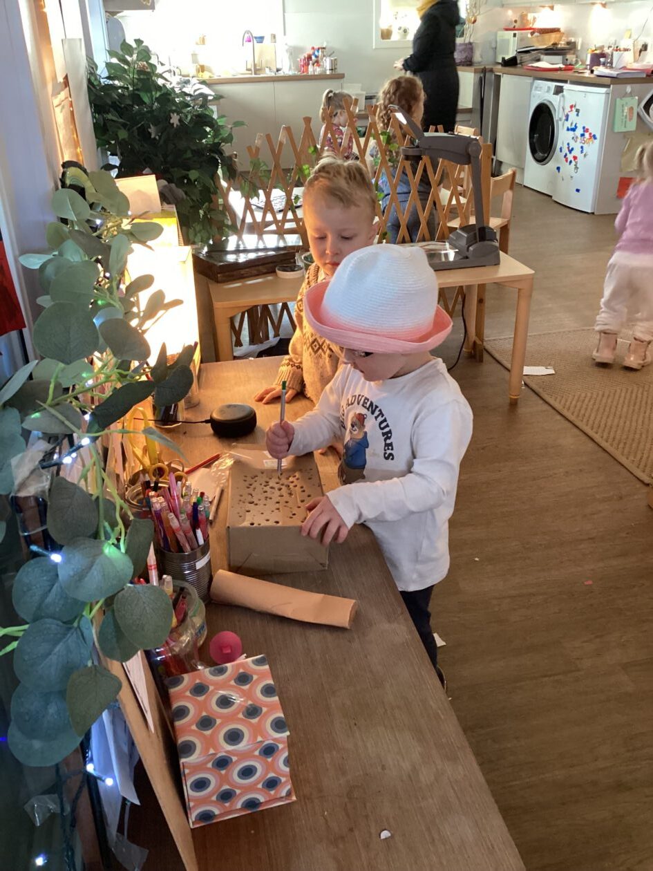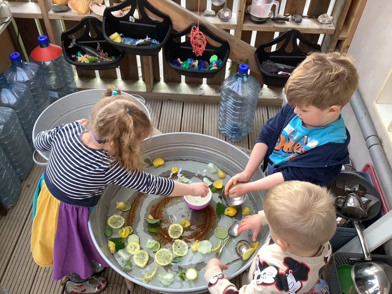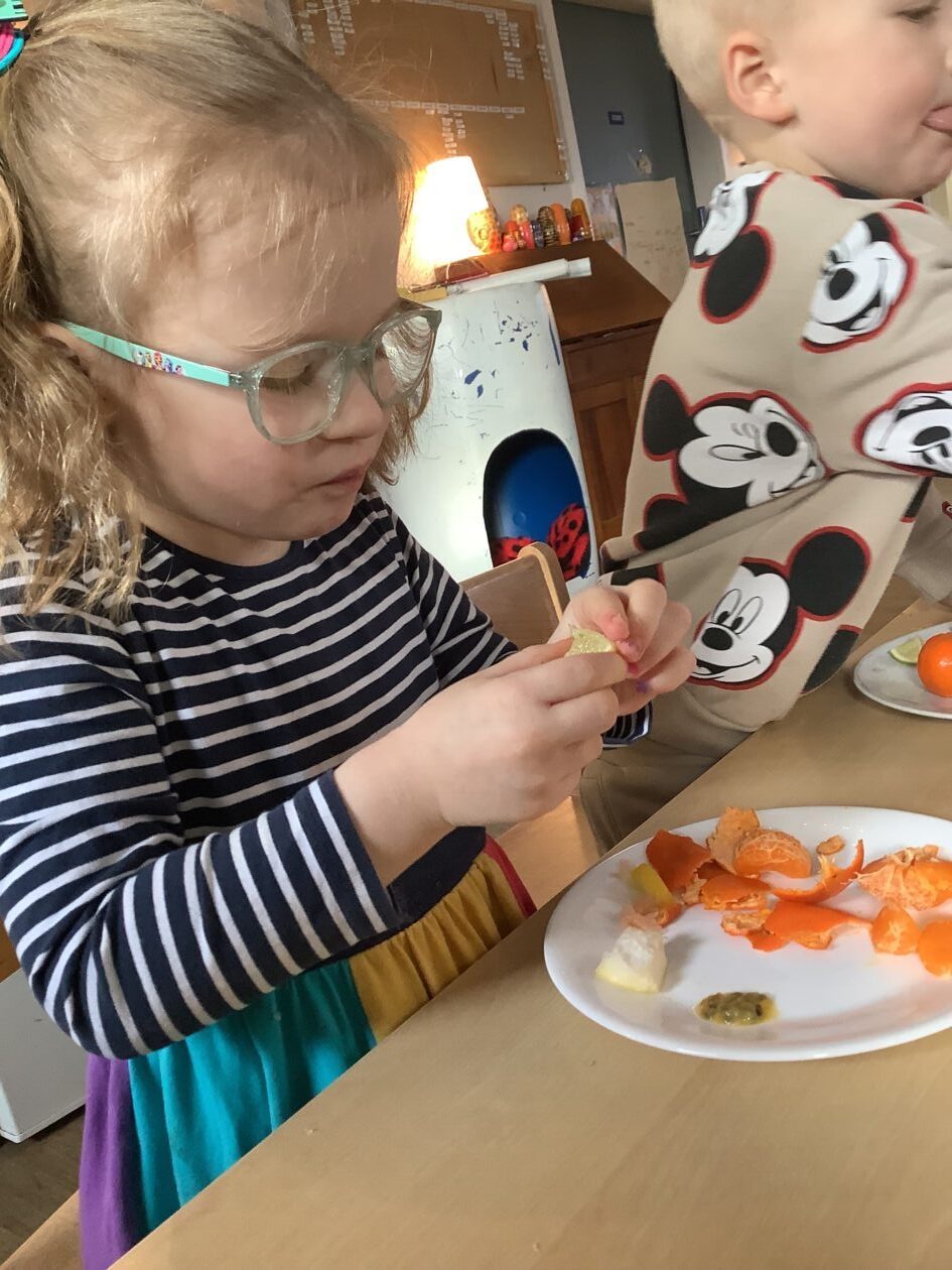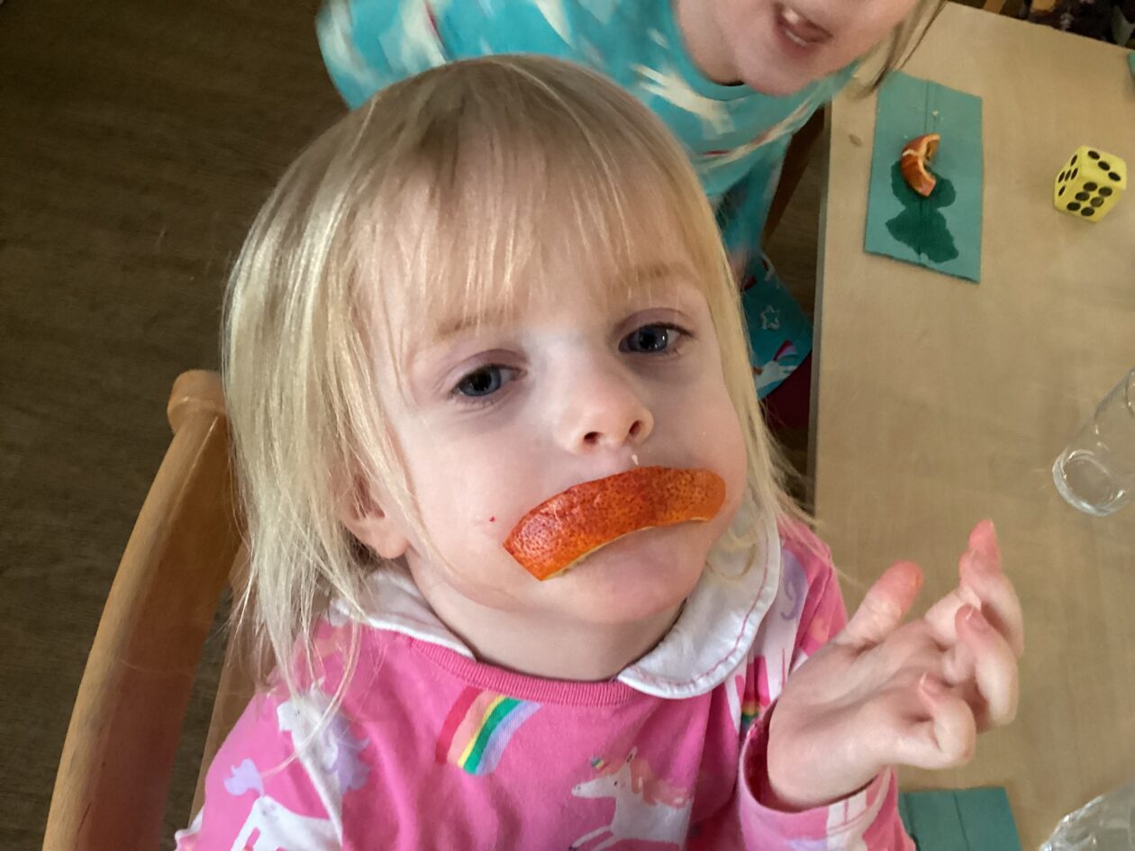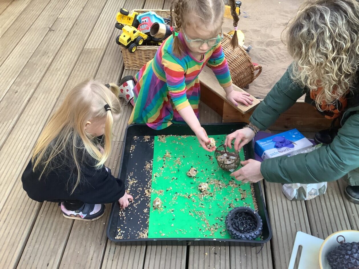 The paper making was a success! The bairns were very excited to see if the pulp had dried and carefully pulled it away from the cloths trying not to tear it. They found some leaves from the garden and fading valentines day flowers for printing using the hammers and rolling pins to see if the colours would come on to their paper. ‘The pink is there and my flower is squishy now.’ We explored the differences between hitting harder and softer with the hammer and how the colours were different because of this.