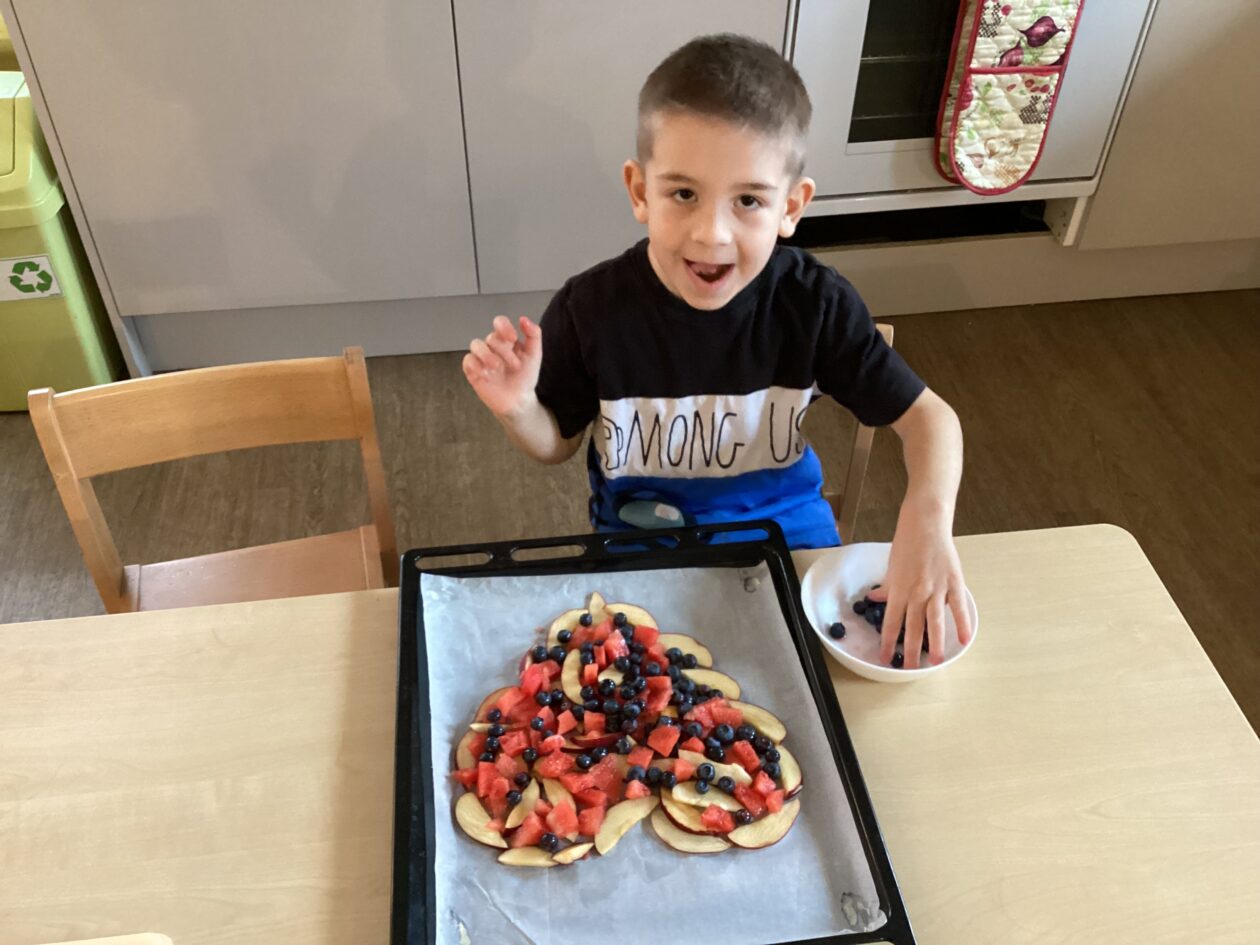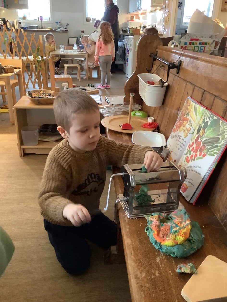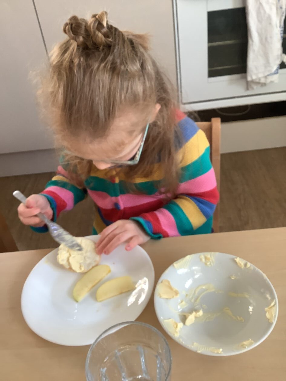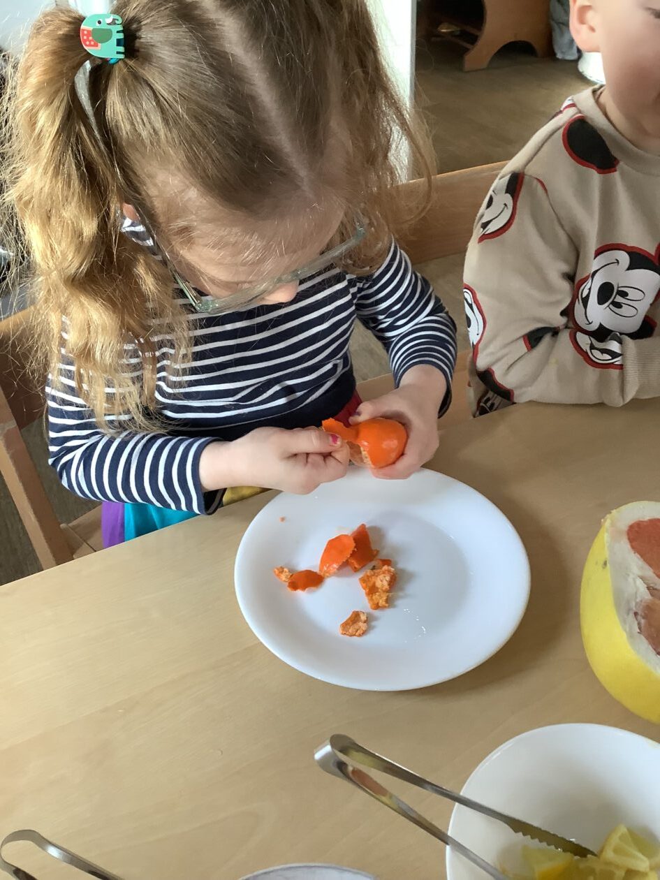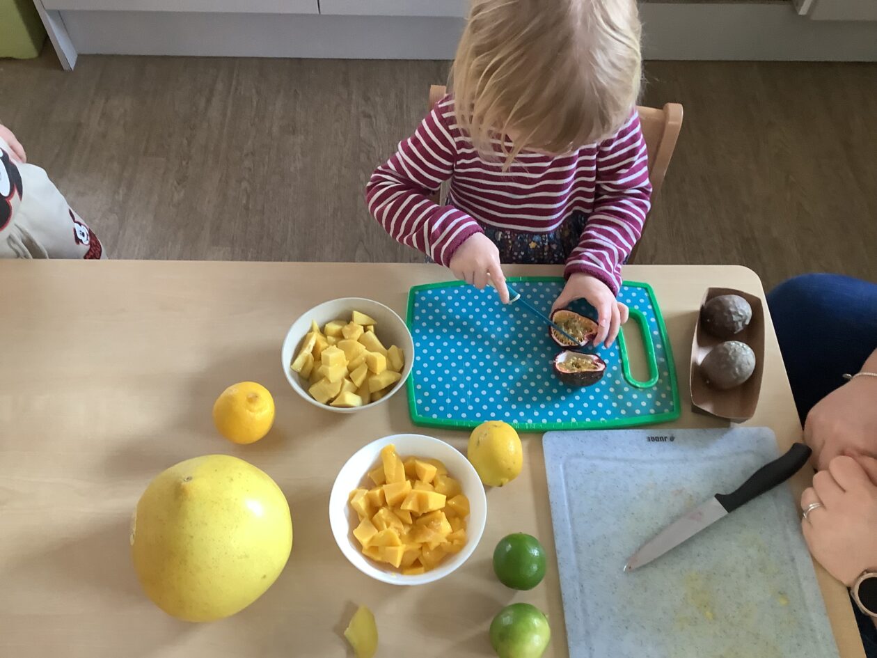 The paper making was a success! The bairns were very excited to see if the pulp had dried and carefully pulled it away from the cloths trying not to tear it. They found some leaves from the garden and fading valentines day flowers for printing using the hammers and rolling pins to see if the colours would come on to their paper. ‘The pink is there and my flower is squishy now.’ We explored the differences between hitting harder and softer with the hammer and how the colours were different because of this.