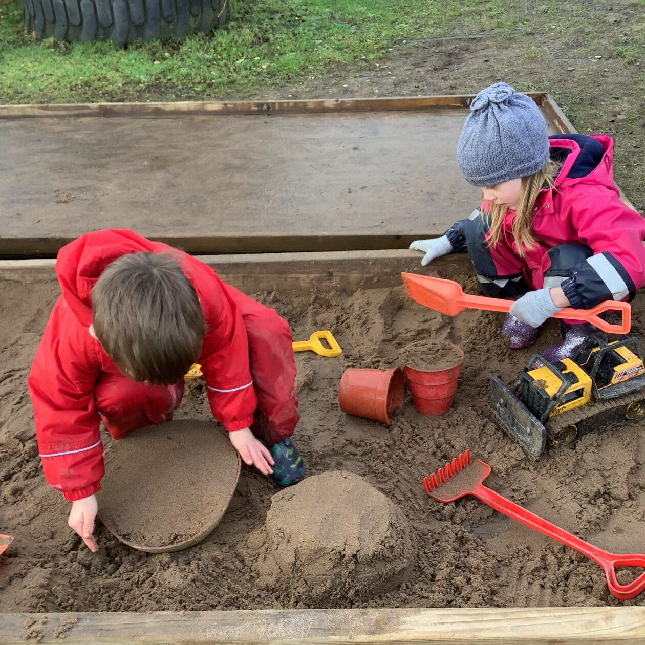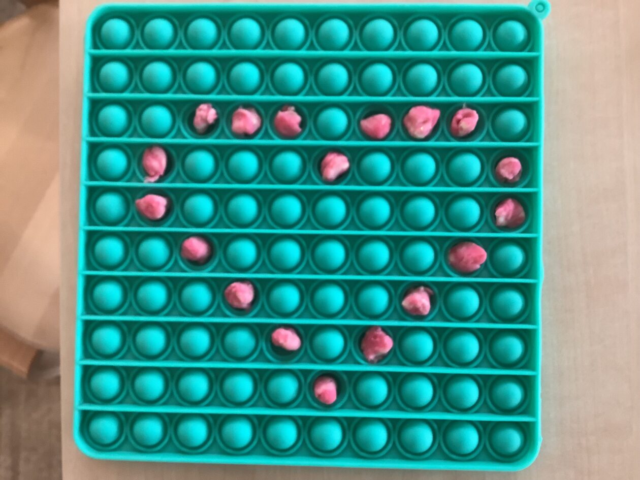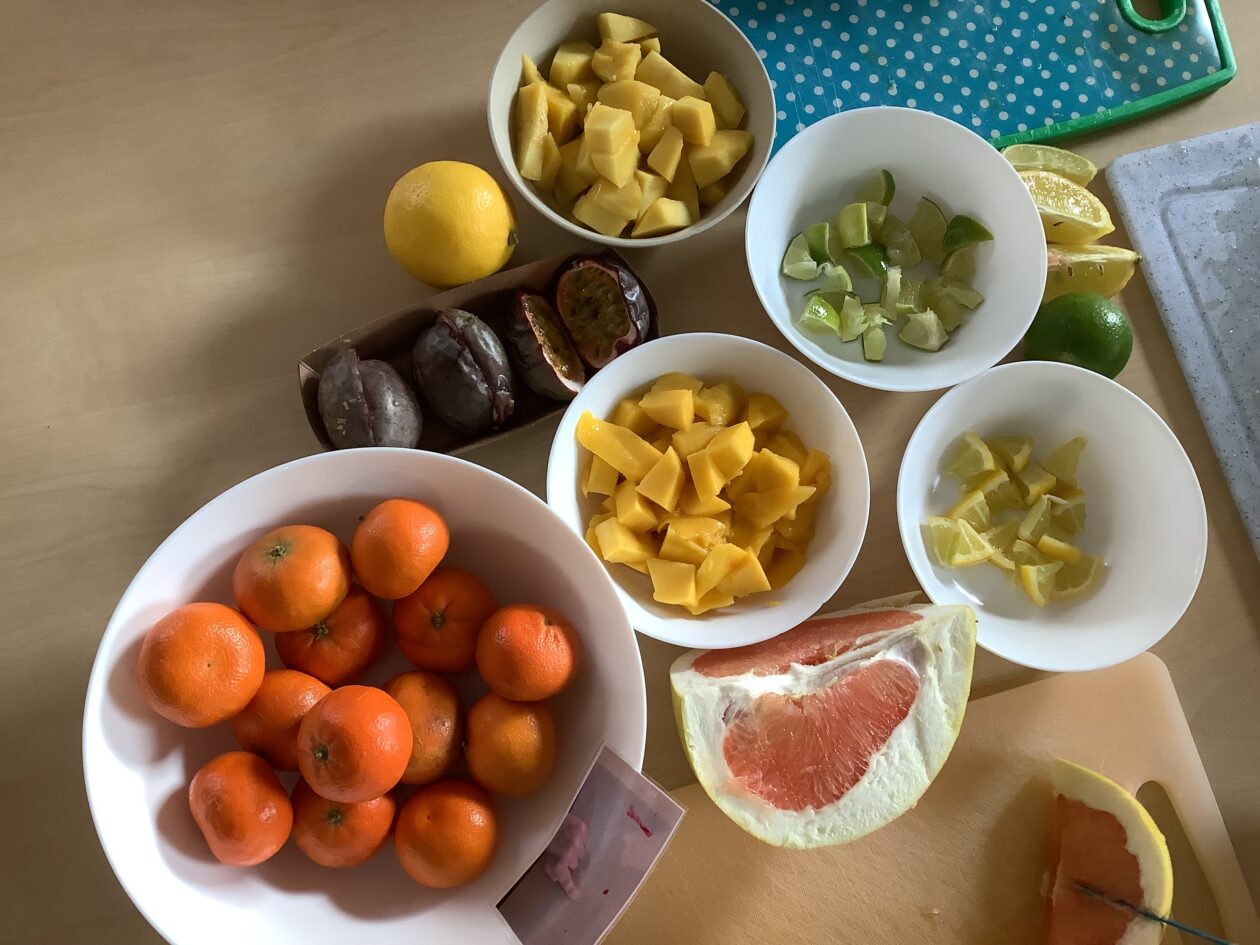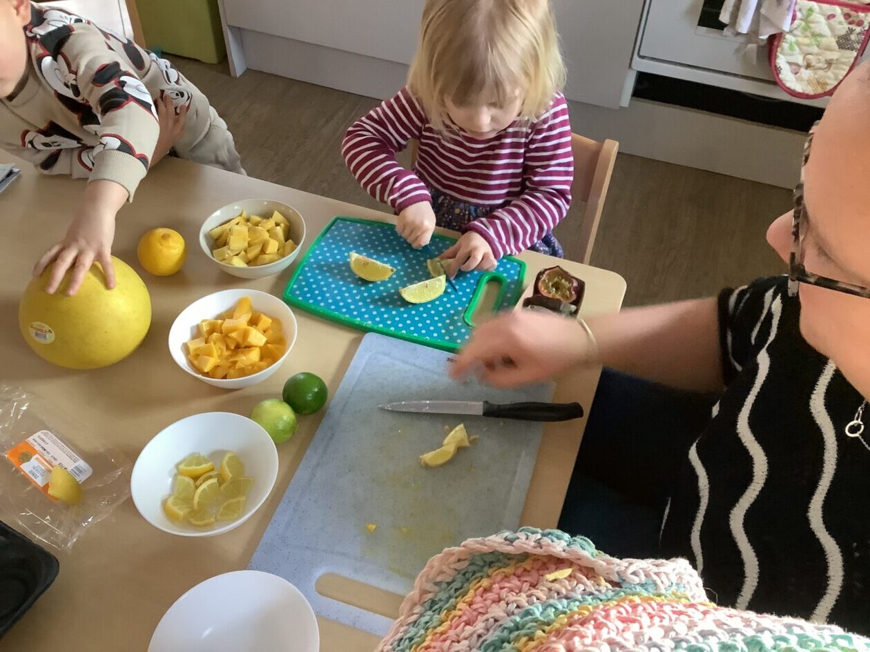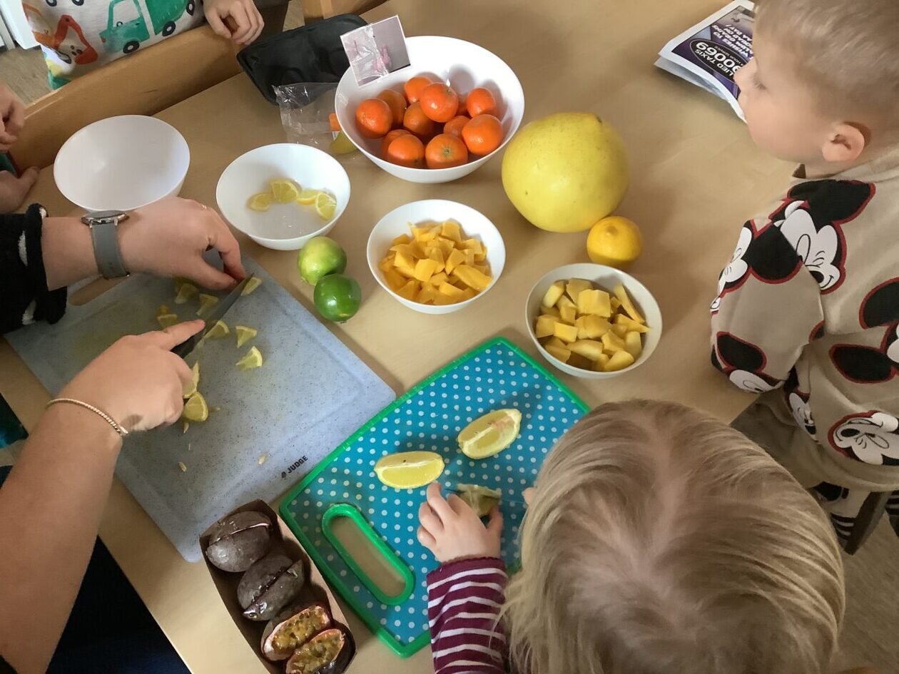 The paper making was a success! The bairns were very excited to see if the pulp had dried and carefully pulled it away from the cloths trying not to tear it. They found some leaves from the garden and fading valentines day flowers for printing using the hammers and rolling pins to see if the colours would come on to their paper. ‘The pink is there and my flower is squishy now.’ We explored the differences between hitting harder and softer with the hammer and how the colours were different because of this.