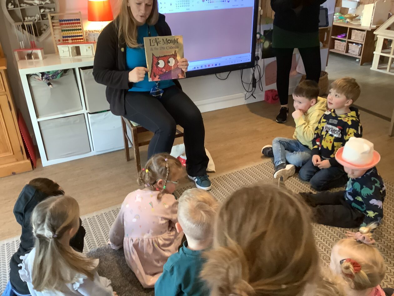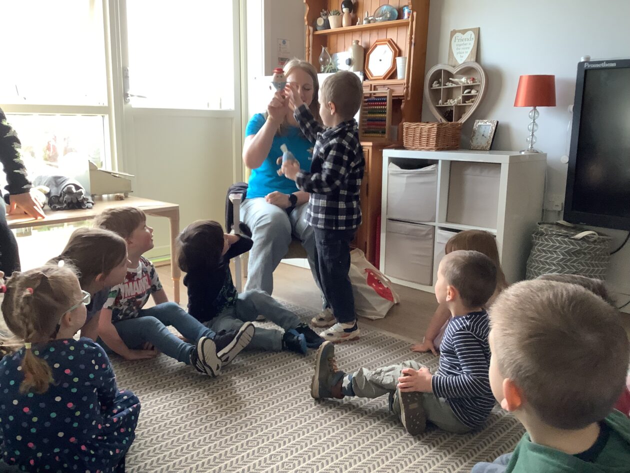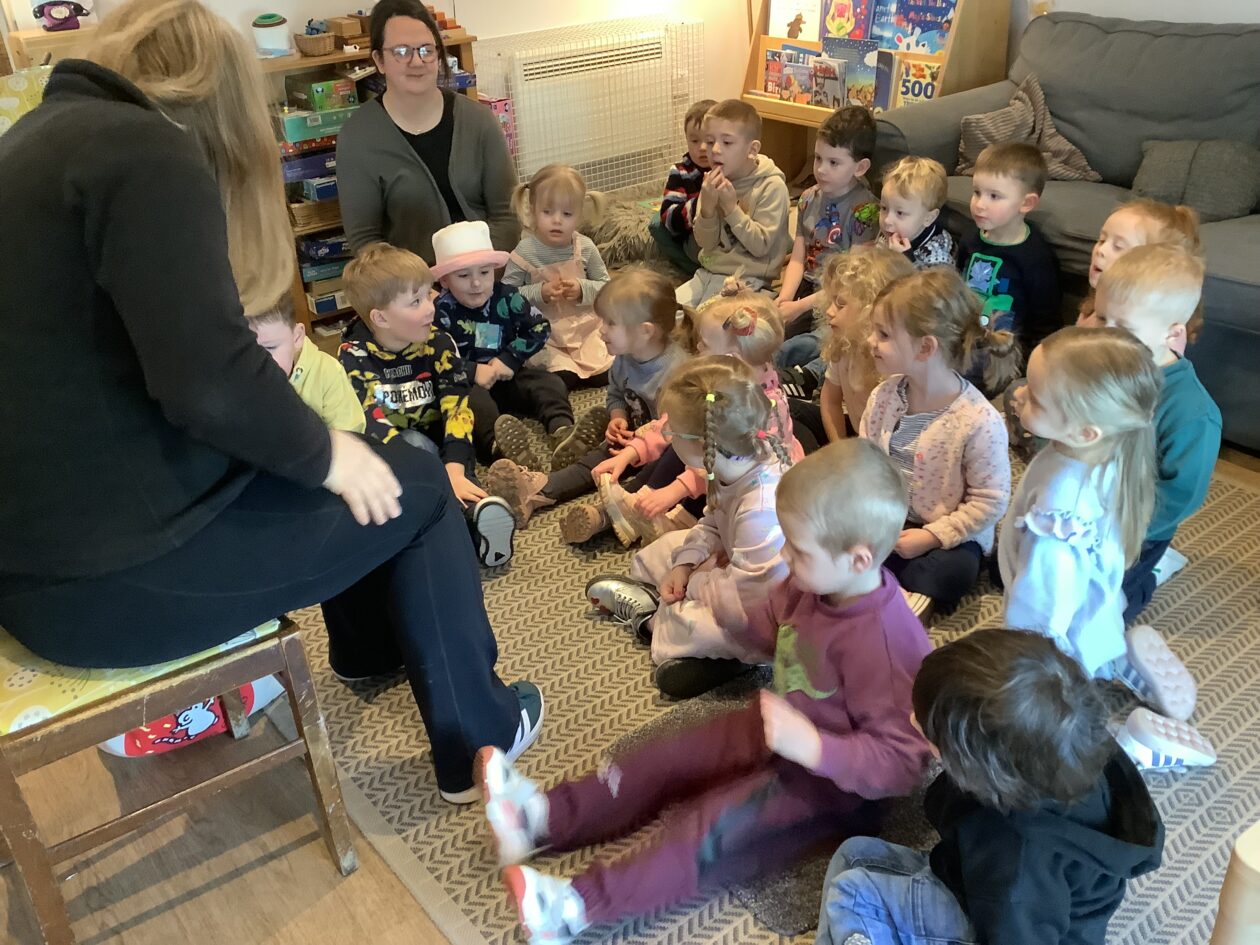 Claire came for a Bookbug story and rhyme session starting off with a very energetic ‘Shake Shake Shake and Stop‘ to help everyone get ready for sitting and listening to the story ‘Who’s next, Guess who.‘ The bairns were invited to guess which animal was coming next using the clues in the corner of each page. The session finished off with the usual favourites 5 fat peas, Jelly on a plate and the Grand old Duke of York. The bairns joined in with the actions and words and were happy to collect a sticker from Claire at the end.