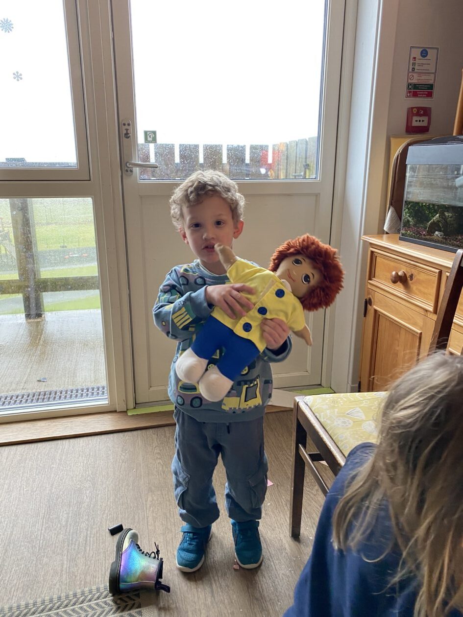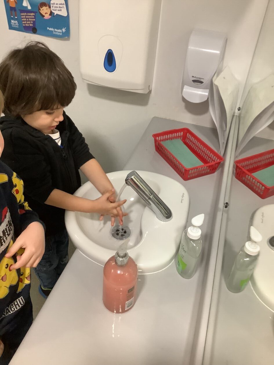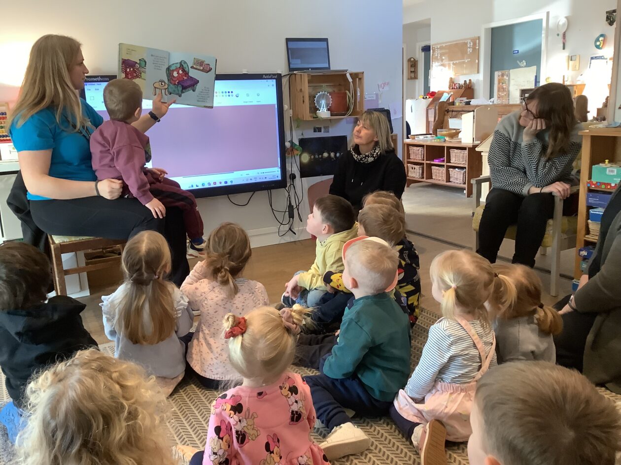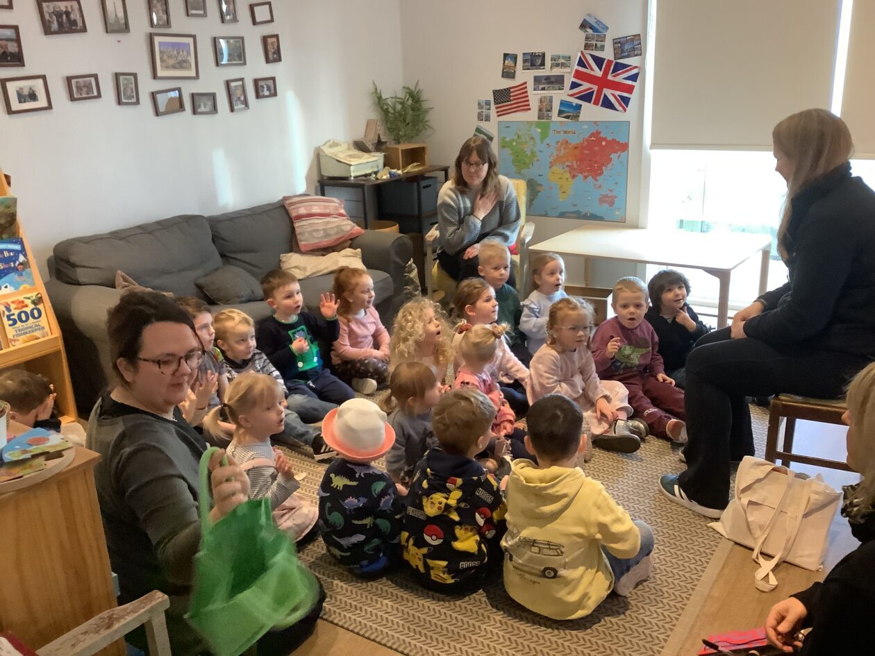 Claire came for a Bookbug story and rhyme session starting off with a very energetic ‘Shake Shake Shake and Stop‘ to help everyone get ready for sitting and listening to the story ‘Who’s next, Guess who.‘ The bairns were invited to guess which animal was coming next using the clues in the corner of each page. The session finished off with the usual favourites 5 fat peas, Jelly on a plate and the Grand old Duke of York. The bairns joined in with the actions and words and were happy to collect a sticker from Claire at the end.