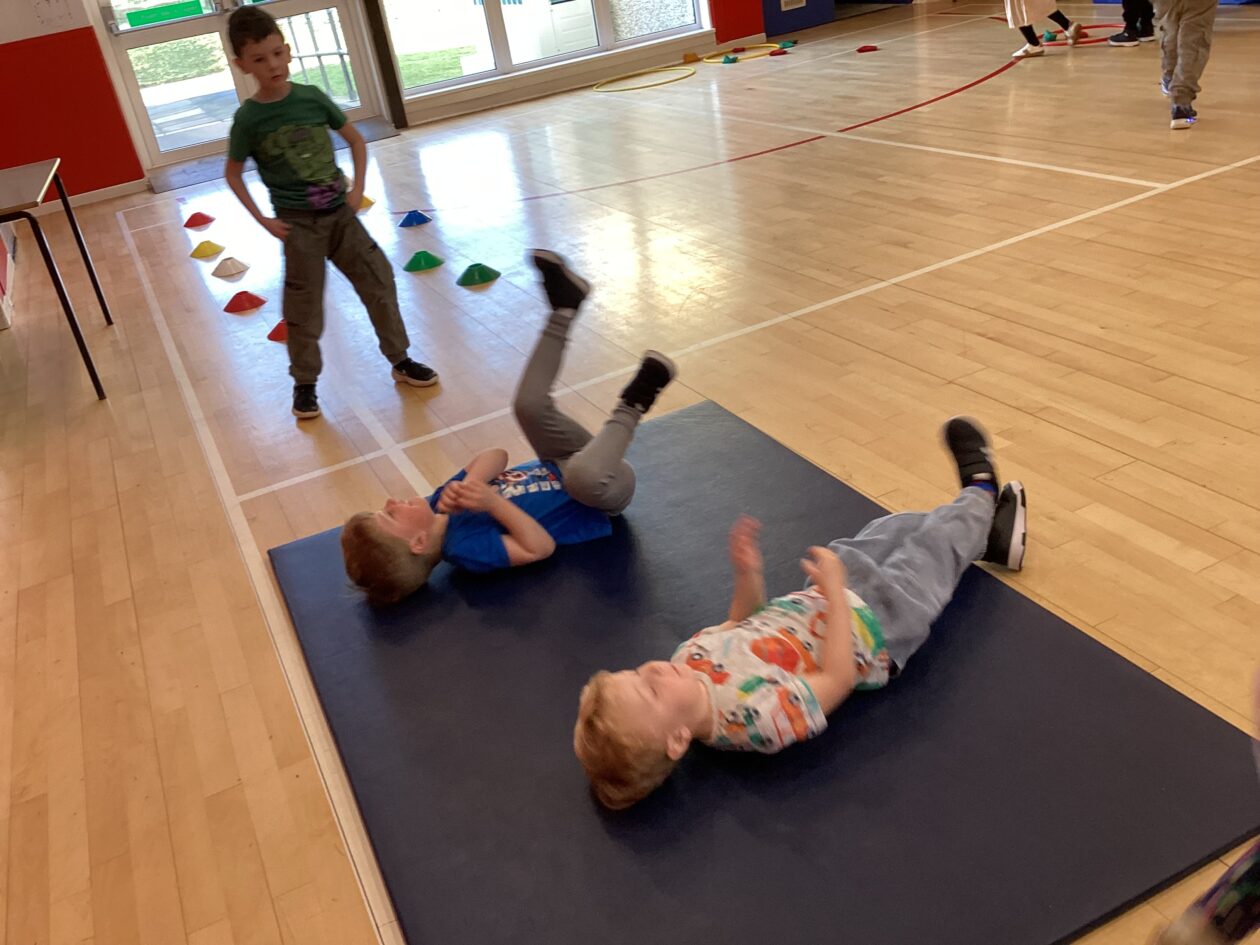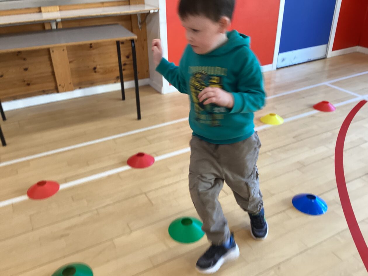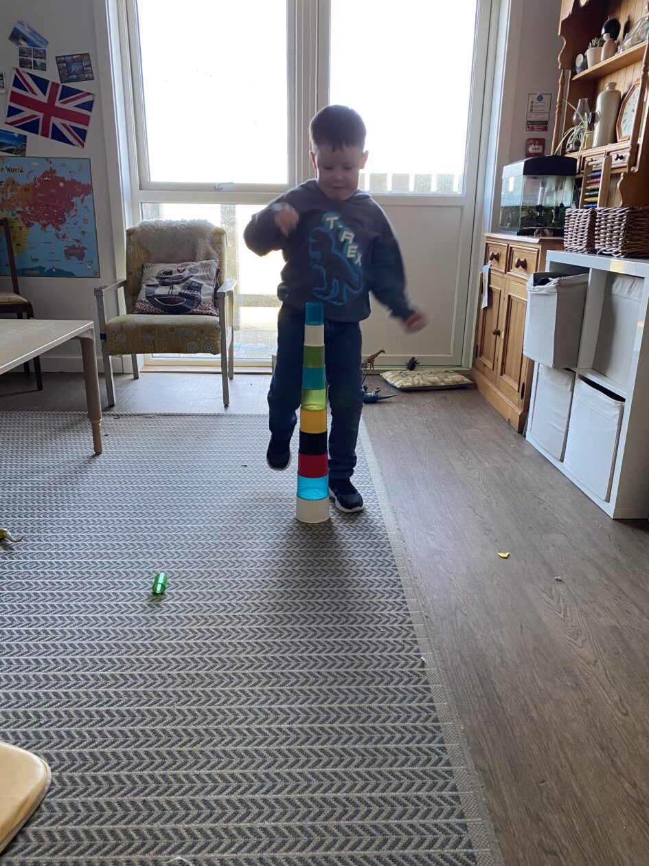 Challenges! ‘Can you jump over all the cups?’ ‘How many did you knock down?’