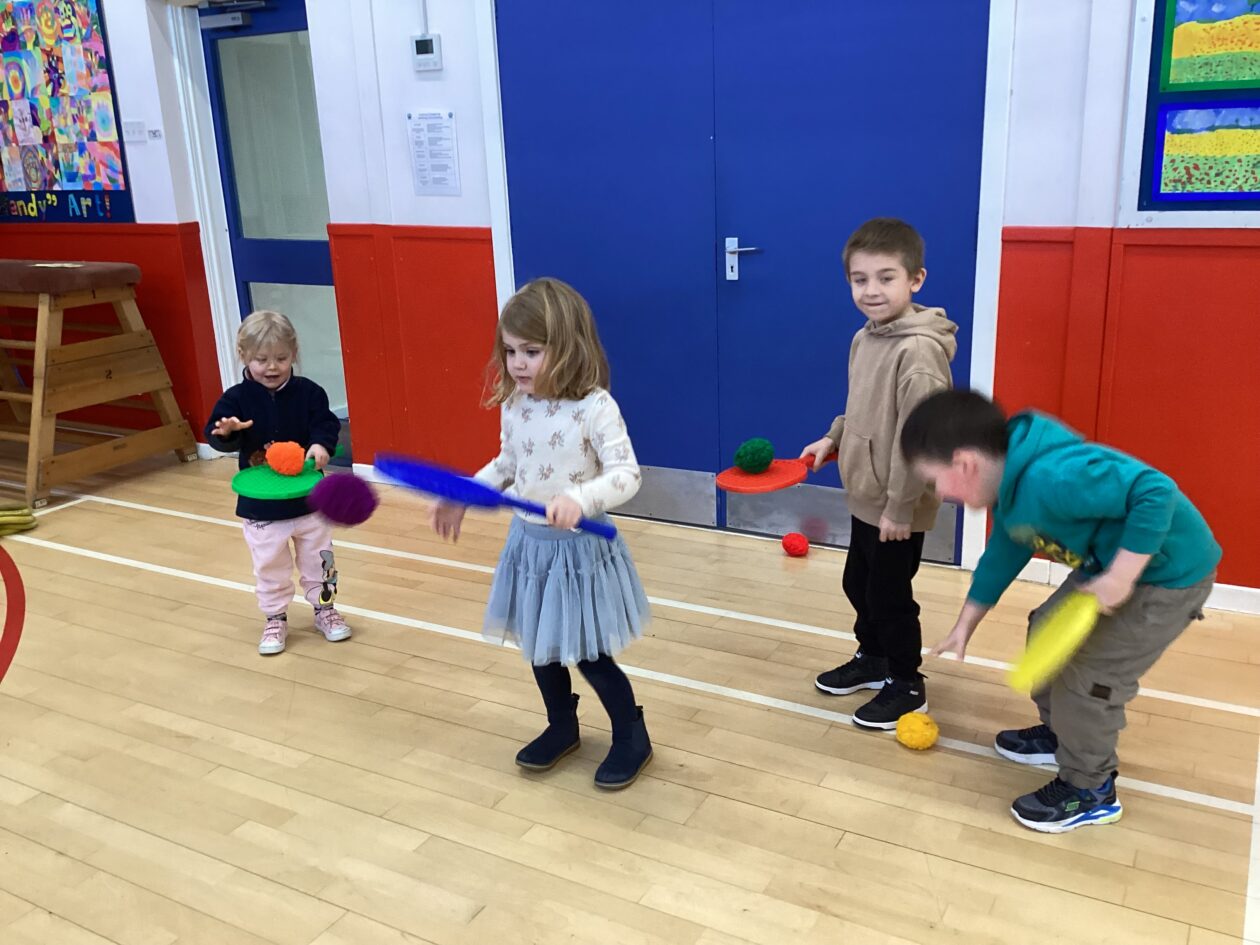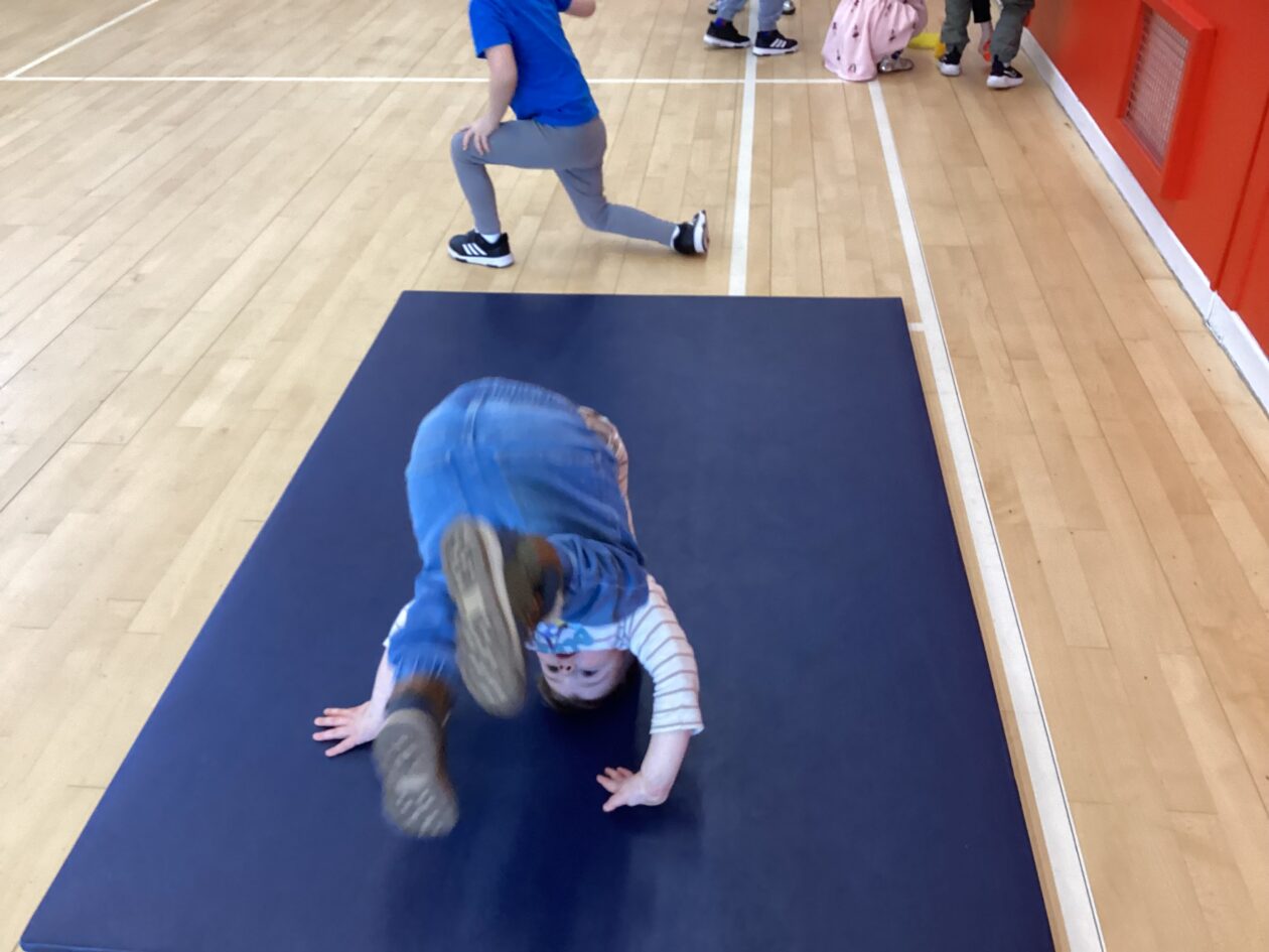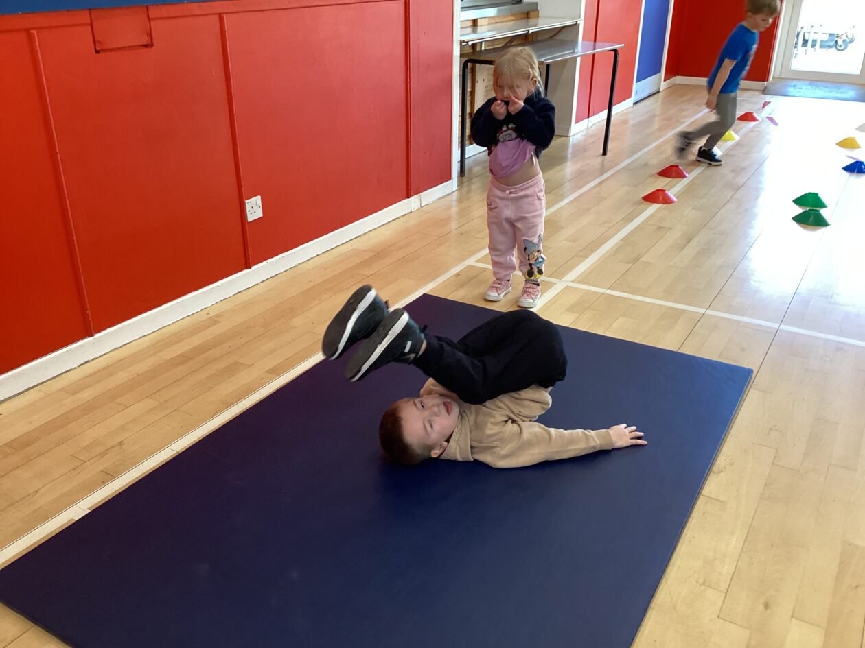 Challenges! ‘Can you jump over all the cups?’ ‘How many did you knock down?’