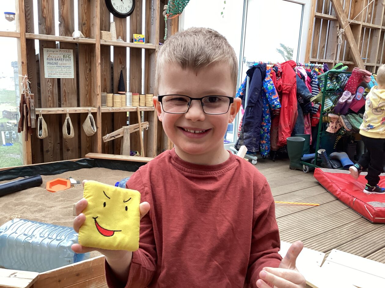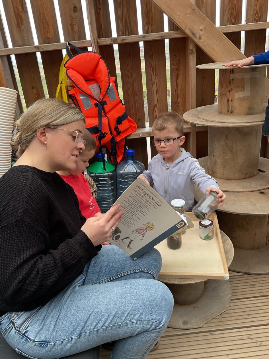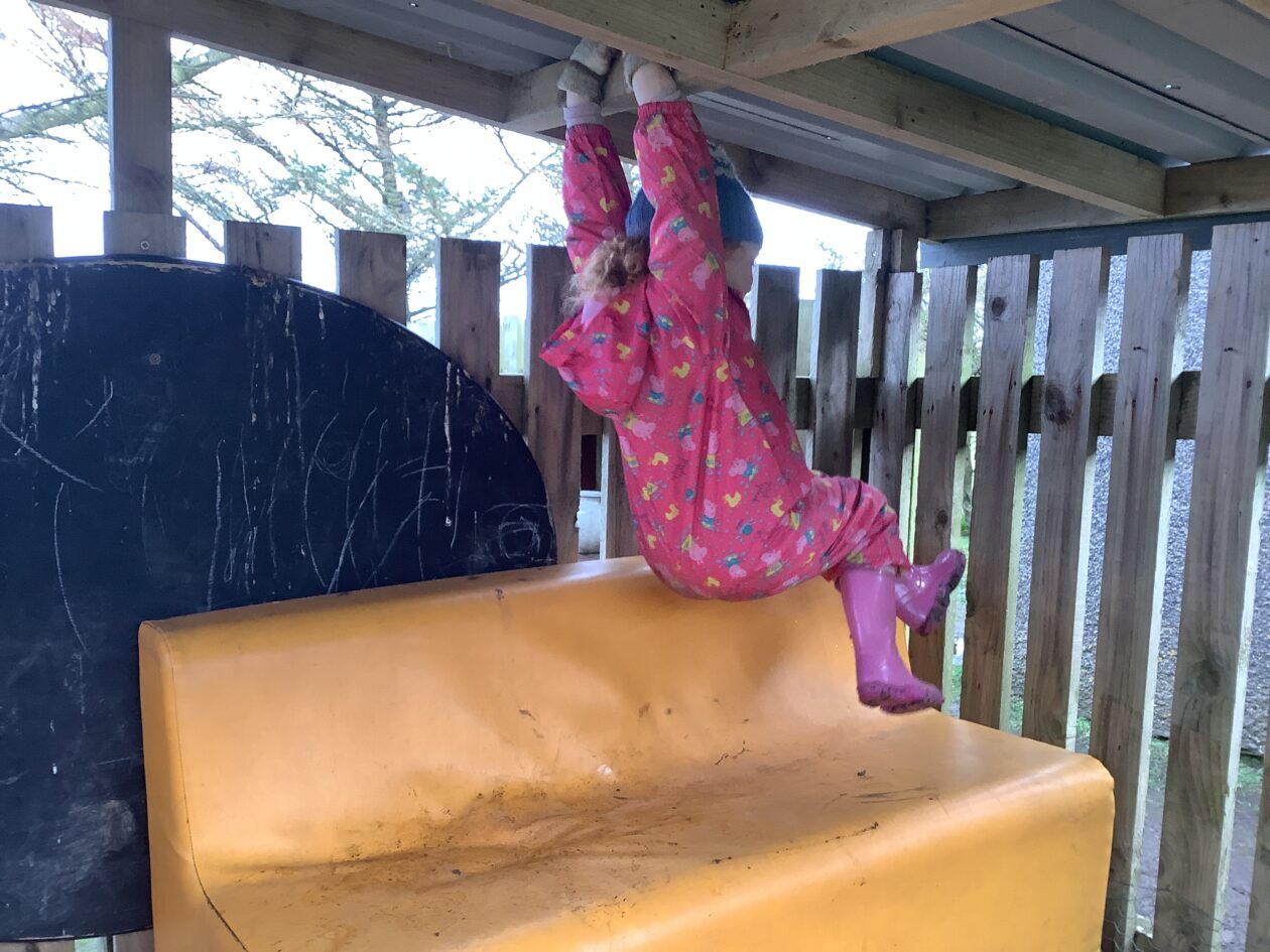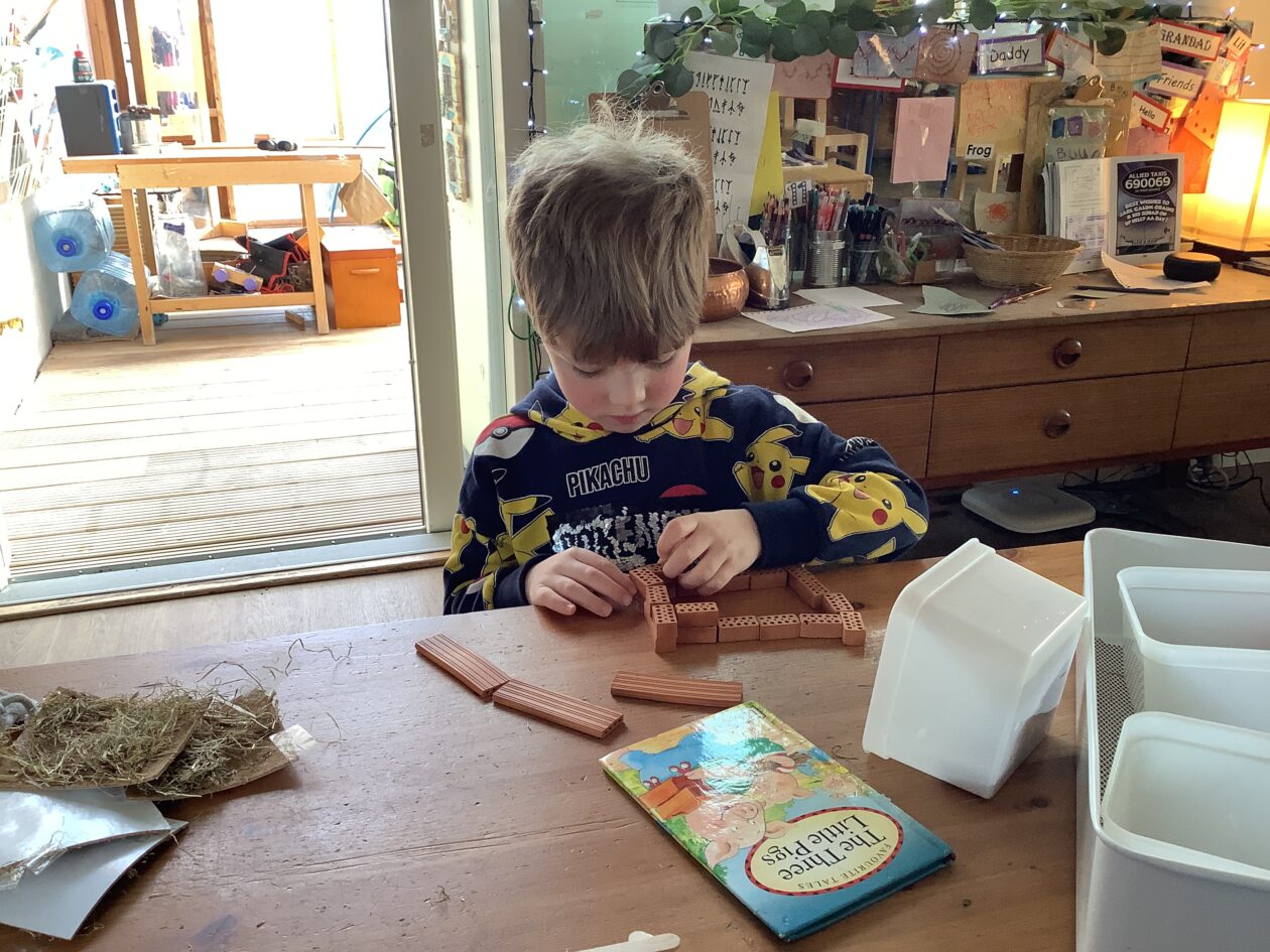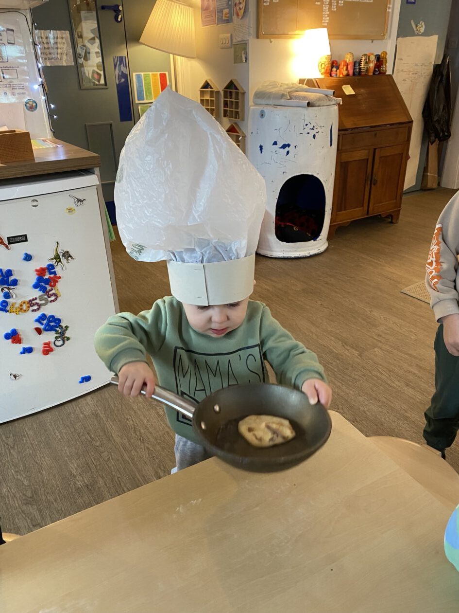 The outdoor room is always a popular choice and a great place to observe schemas (a repeated action used to explore and test theories in play). The bairns have used positioning, transporting, trajectory, enveloping, rotation and enclosure schemas in their play this week. They made paper aeroplanes and then built a platform to launch their planes from, watching how far they flew. They have also been engaged in imaginative play using the large hollow blocks and cable drums as fishing boats. “He is da een dat goes in da water. He is da fishing een and I’m da Captain.”