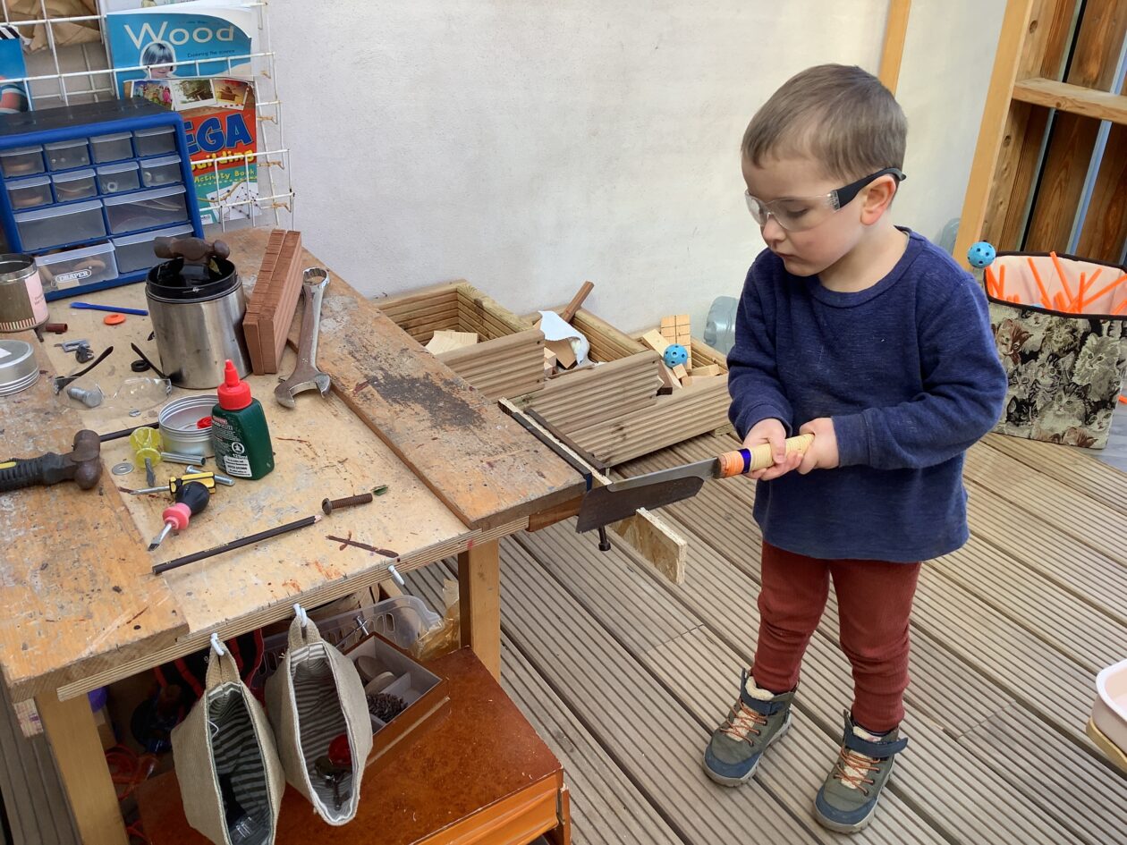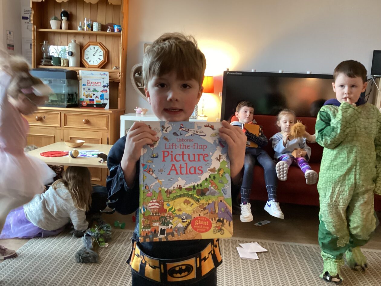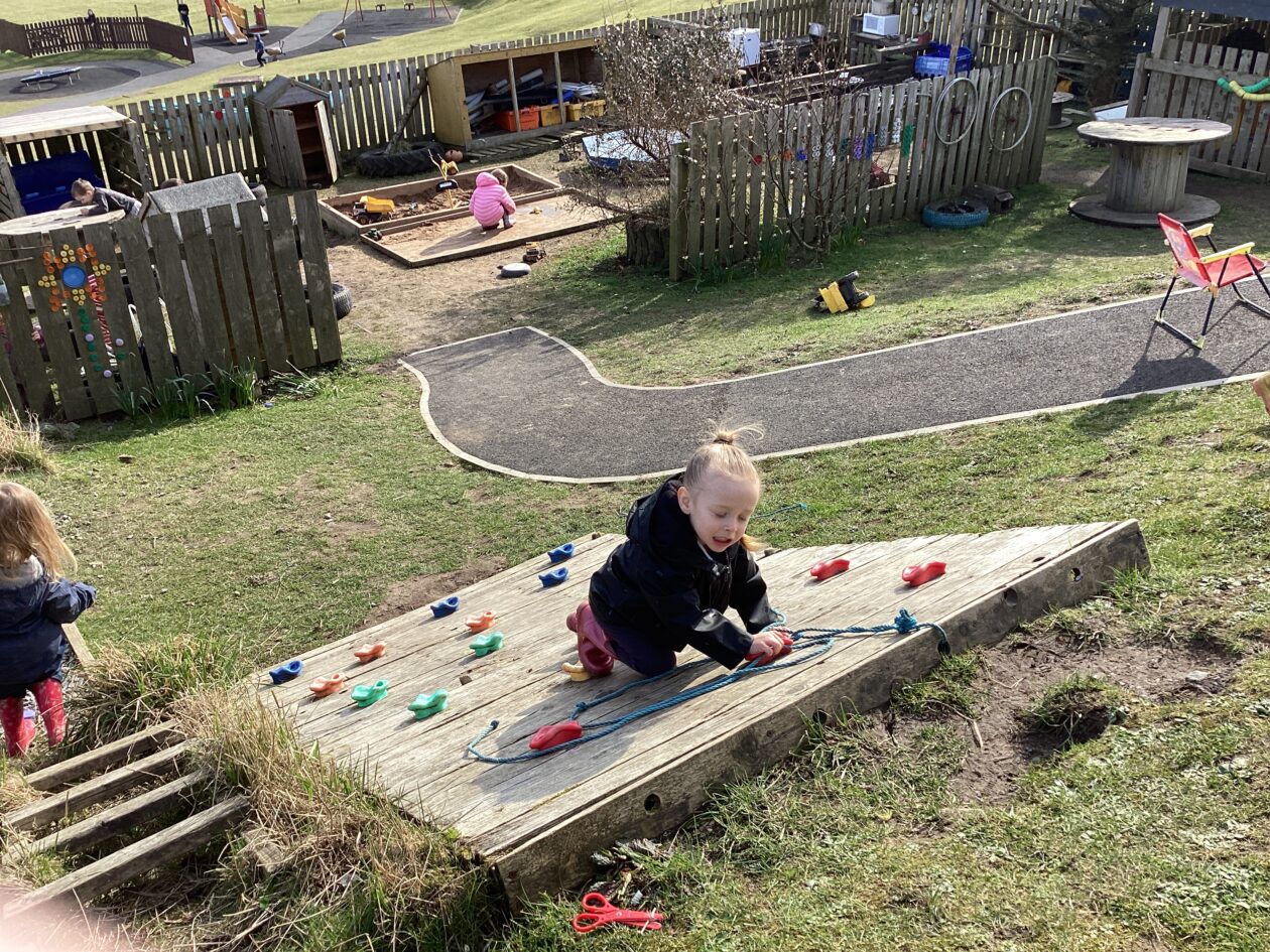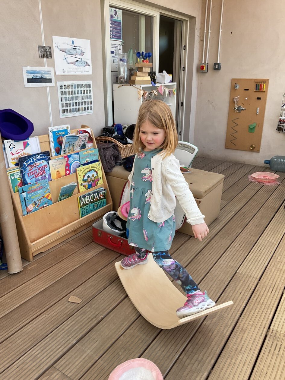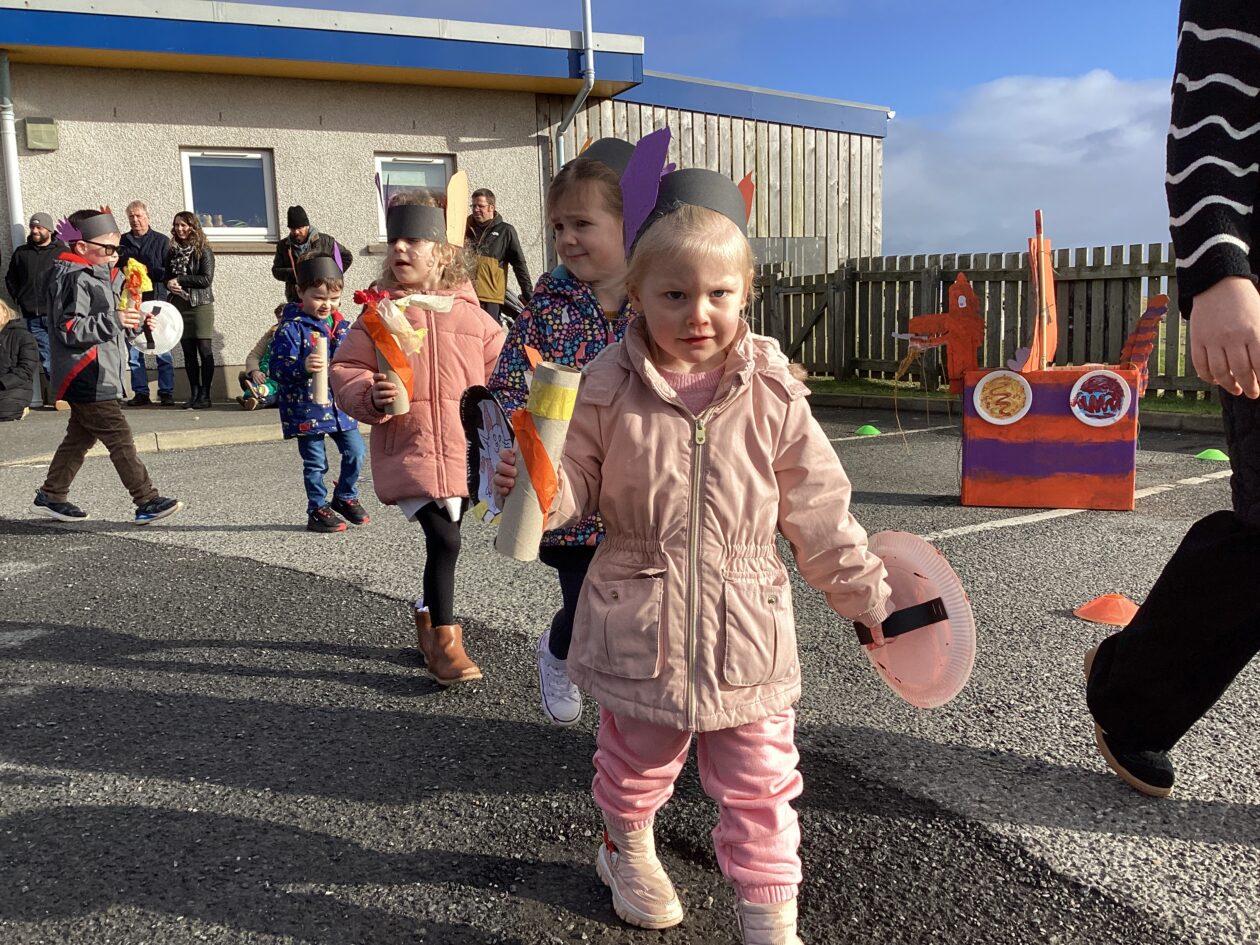 The outdoor room is always a popular choice and a great place to observe schemas (a repeated action used to explore and test theories in play). The bairns have used positioning, transporting, trajectory, enveloping, rotation and enclosure schemas in their play this week. They made paper aeroplanes and then built a platform to launch their planes from, watching how far they flew. They have also been engaged in imaginative play using the large hollow blocks and cable drums as fishing boats. “He is da een dat goes in da water. He is da fishing een and I’m da Captain.”