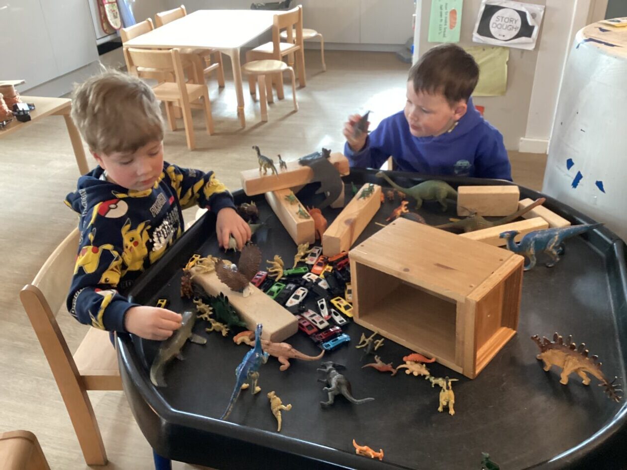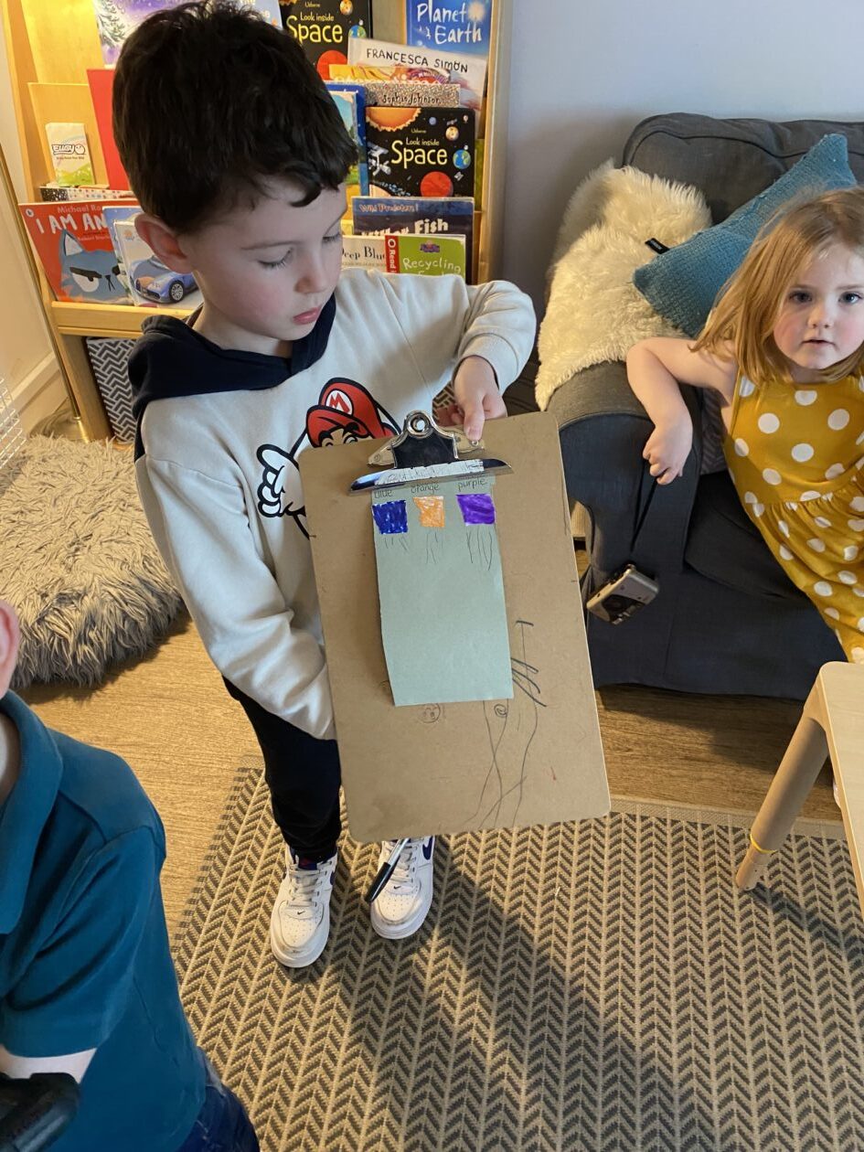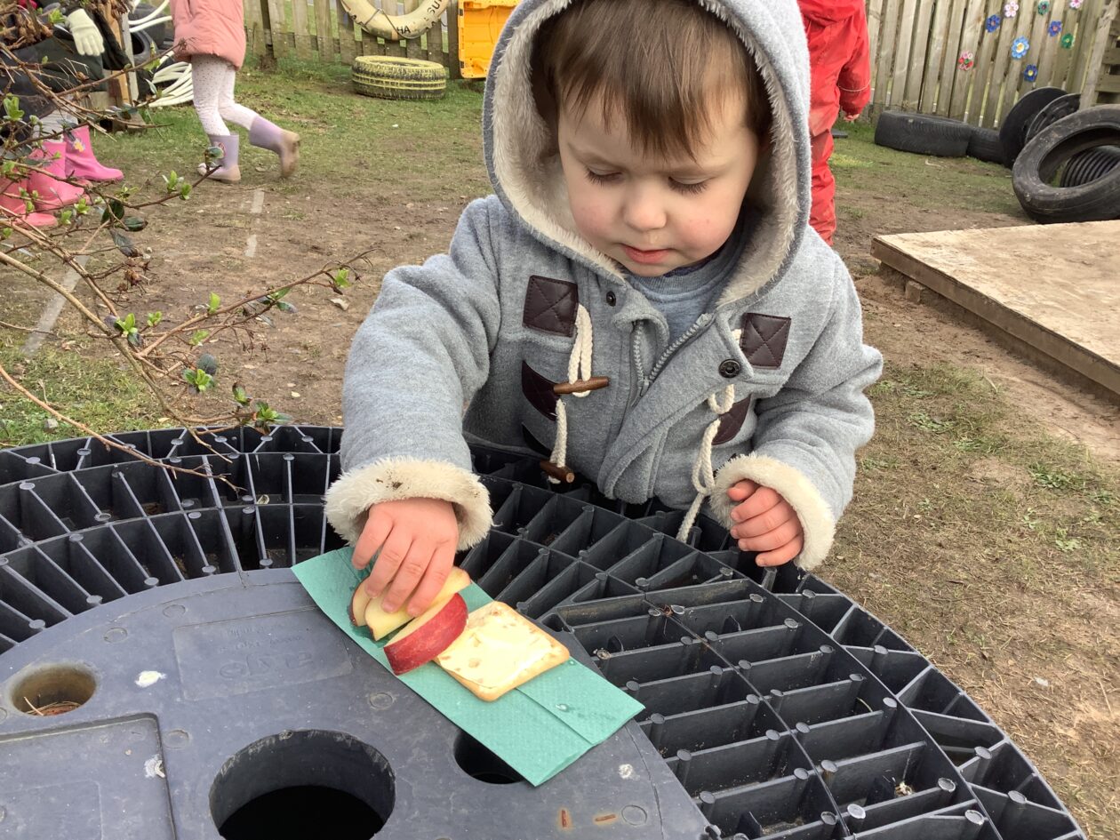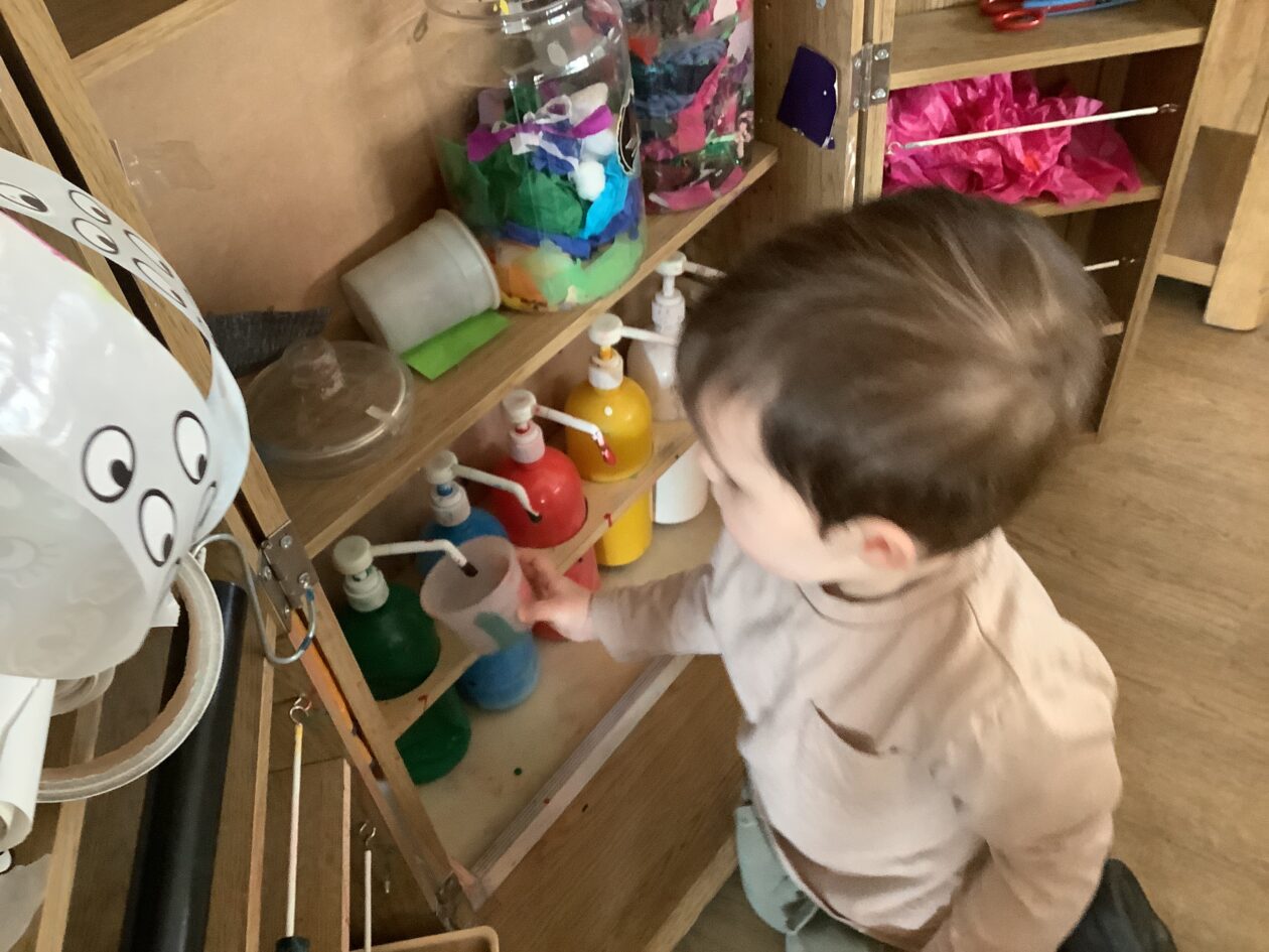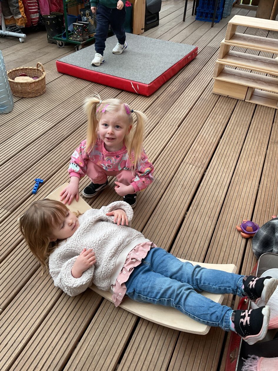 The outdoor room is always a popular choice and a great place to observe schemas (a repeated action used to explore and test theories in play). The bairns have used positioning, transporting, trajectory, enveloping, rotation and enclosure schemas in their play this week. They made paper aeroplanes and then built a platform to launch their planes from, watching how far they flew. They have also been engaged in imaginative play using the large hollow blocks and cable drums as fishing boats. “He is da een dat goes in da water. He is da fishing een and I’m da Captain.”