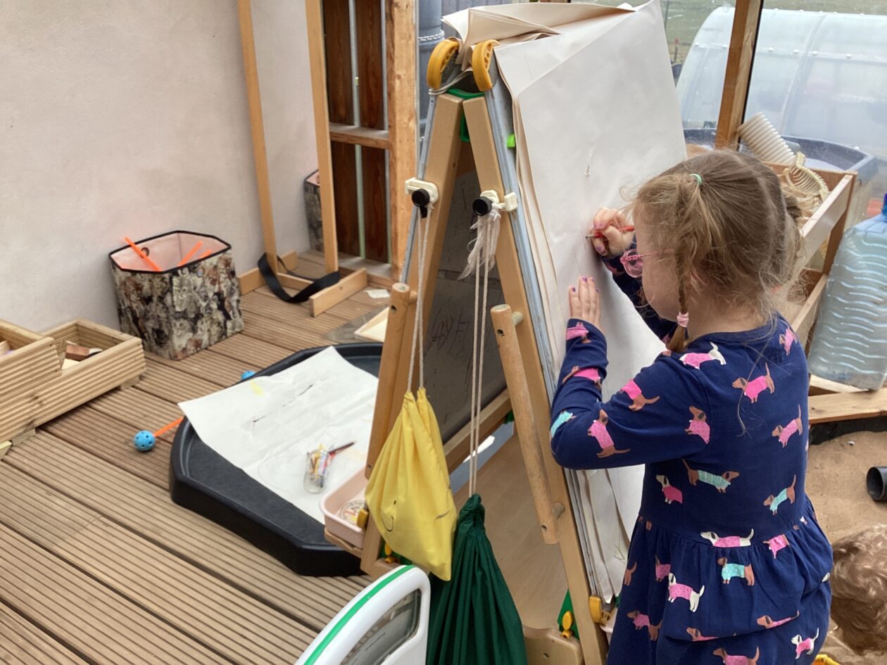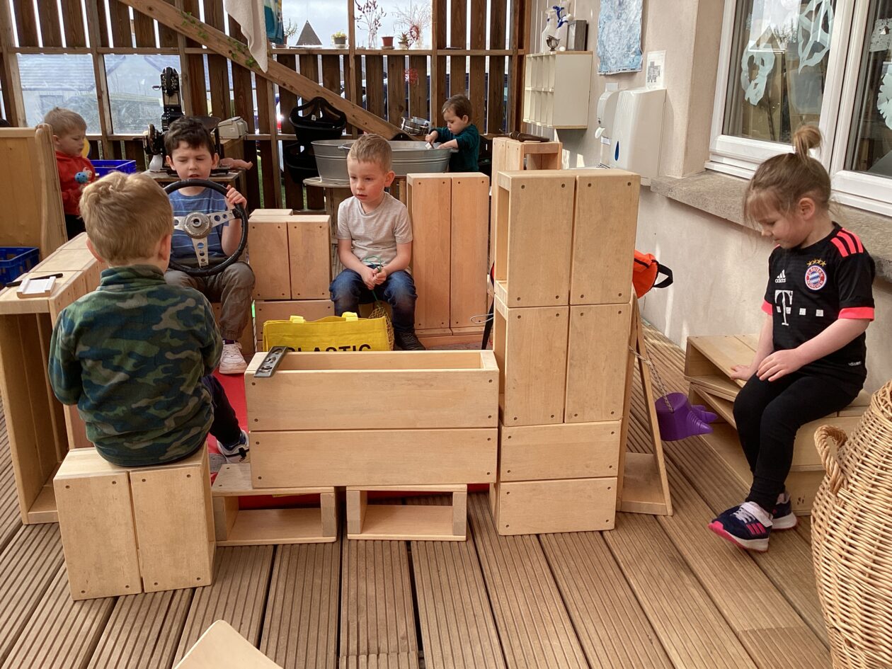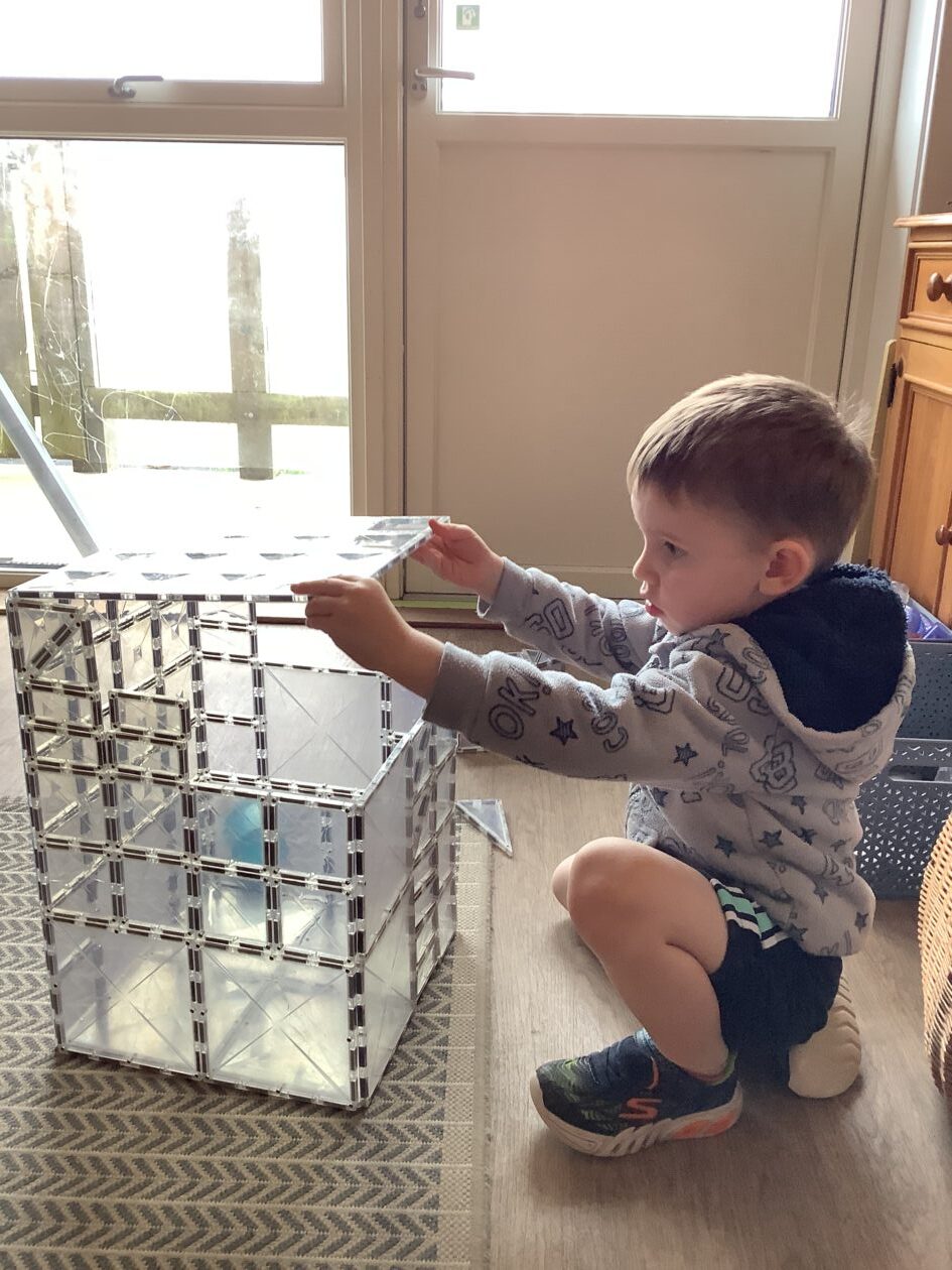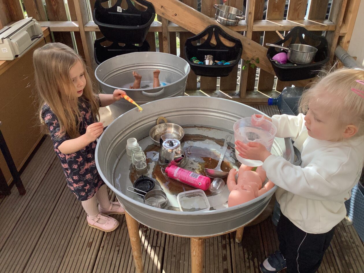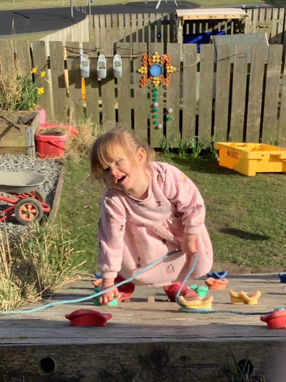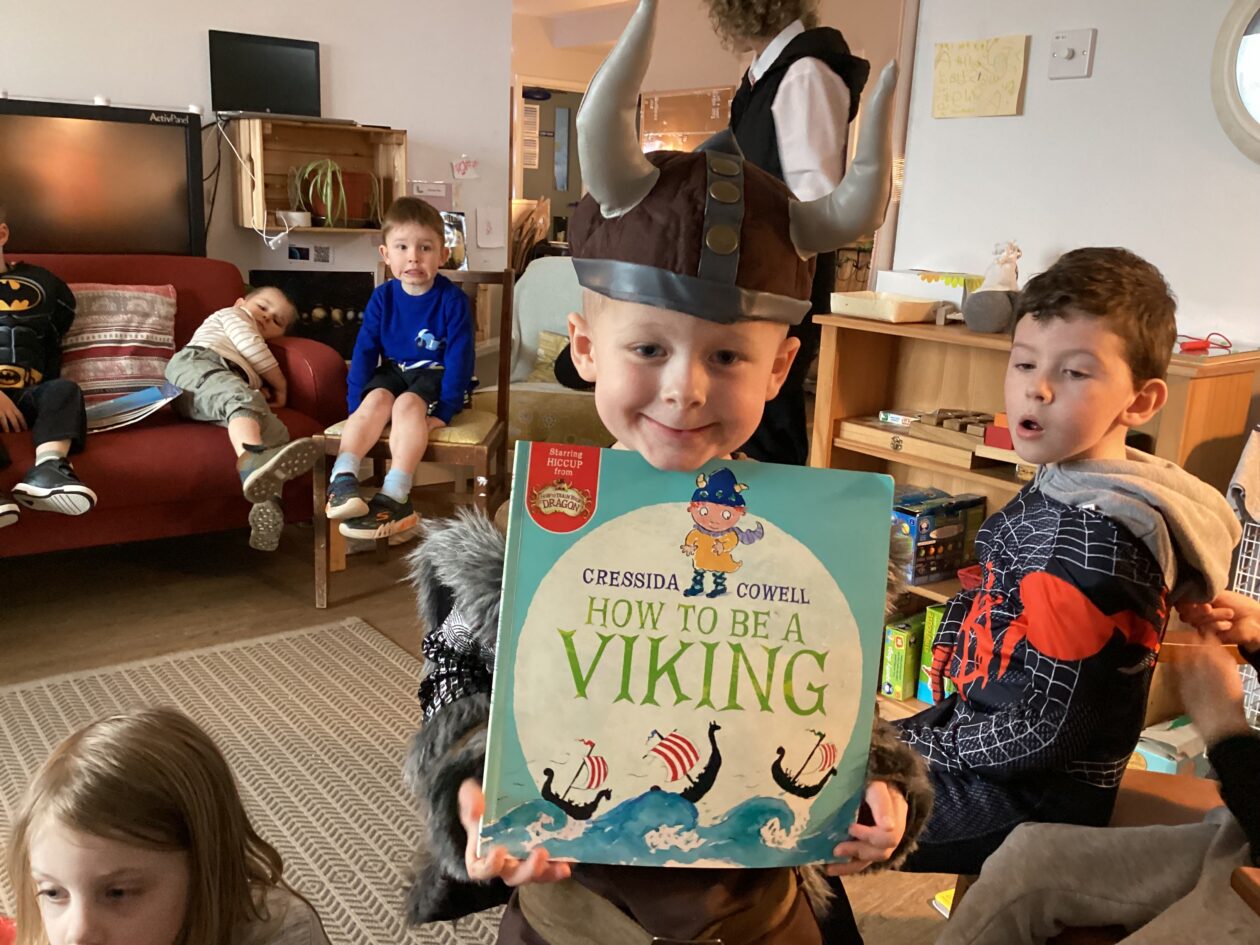 The outdoor room is always a popular choice and a great place to observe schemas (a repeated action used to explore and test theories in play). The bairns have used positioning, transporting, trajectory, enveloping, rotation and enclosure schemas in their play this week. They made paper aeroplanes and then built a platform to launch their planes from, watching how far they flew. They have also been engaged in imaginative play using the large hollow blocks and cable drums as fishing boats. “He is da een dat goes in da water. He is da fishing een and I’m da Captain.”