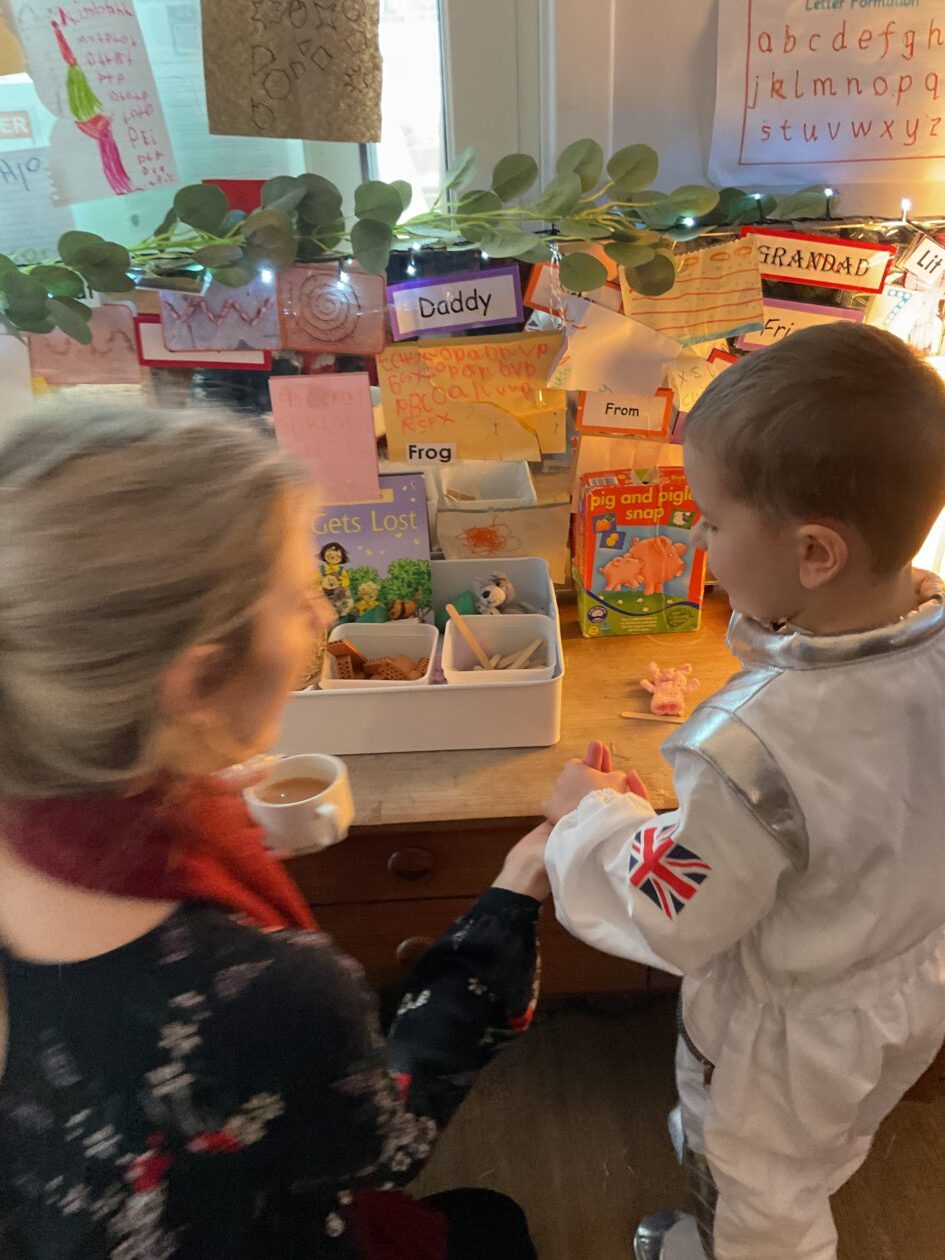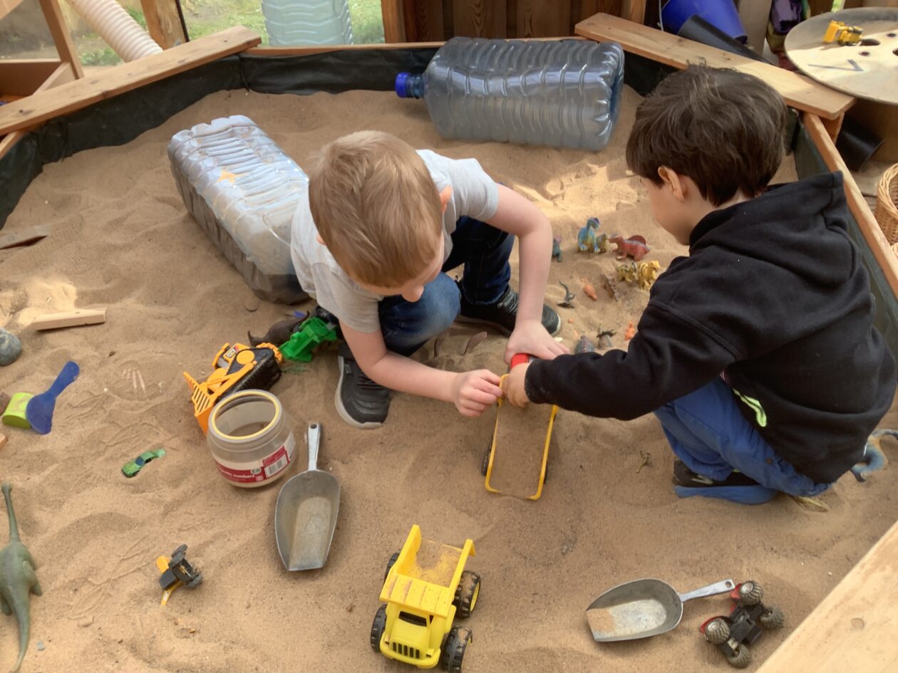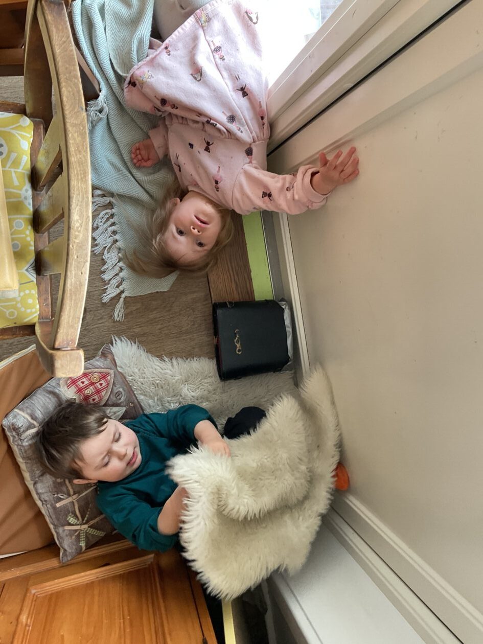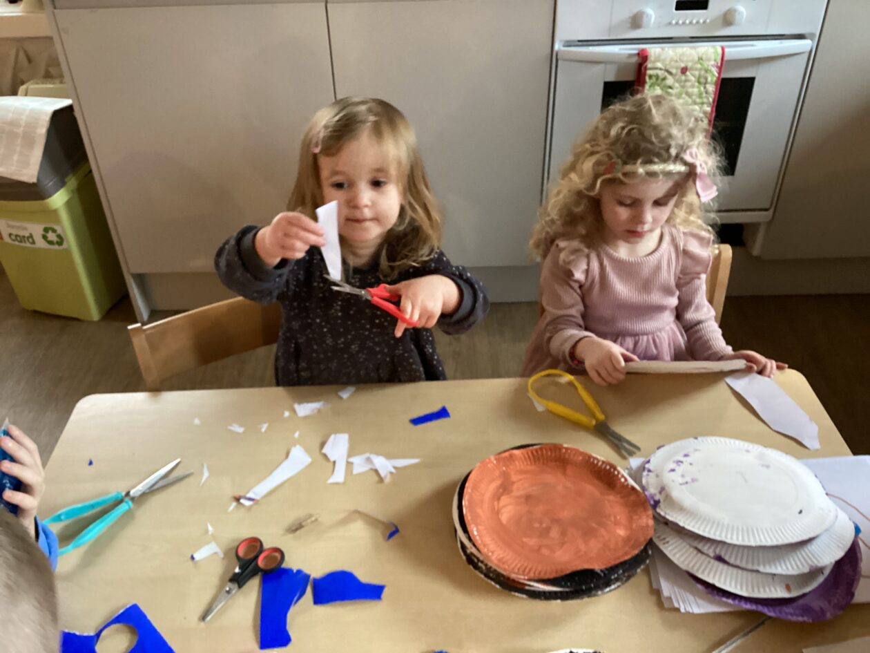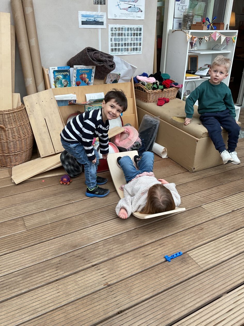 The outdoor room is always a popular choice and a great place to observe schemas (a repeated action used to explore and test theories in play). The bairns have used positioning, transporting, trajectory, enveloping, rotation and enclosure schemas in their play this week. They made paper aeroplanes and then built a platform to launch their planes from, watching how far they flew. They have also been engaged in imaginative play using the large hollow blocks and cable drums as fishing boats. “He is da een dat goes in da water. He is da fishing een and I’m da Captain.”