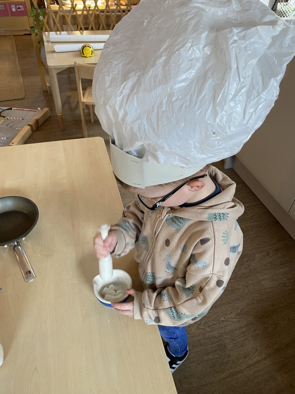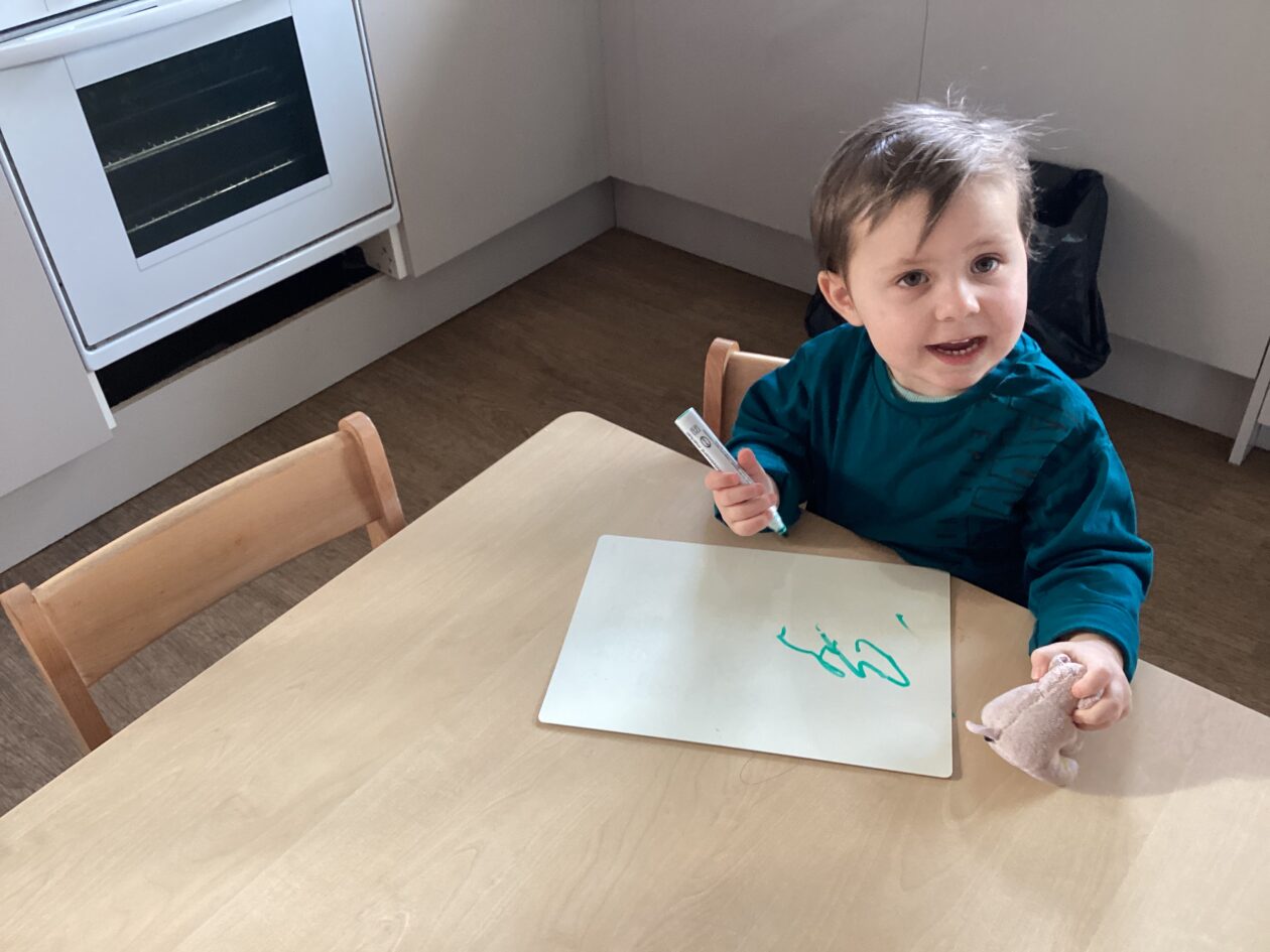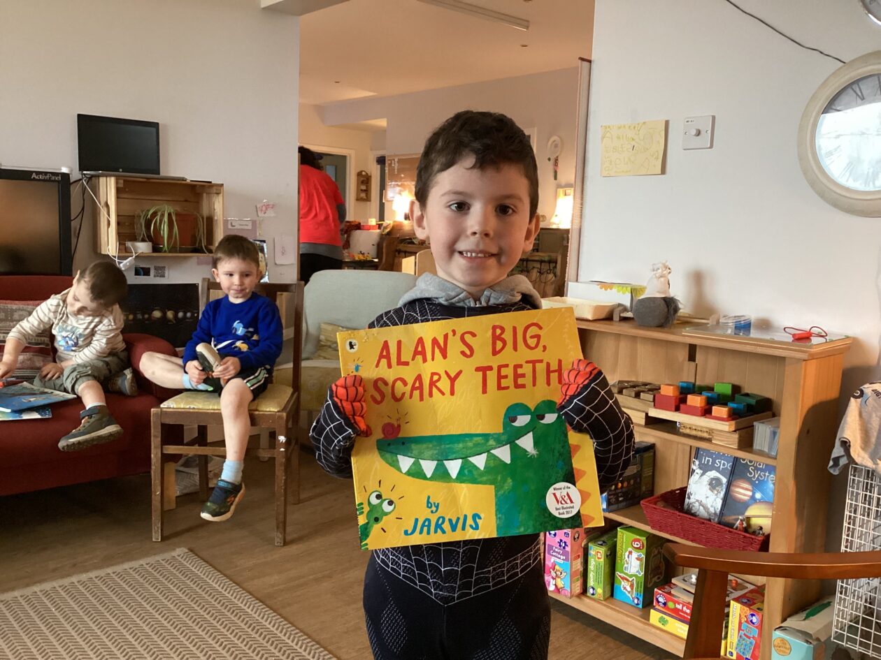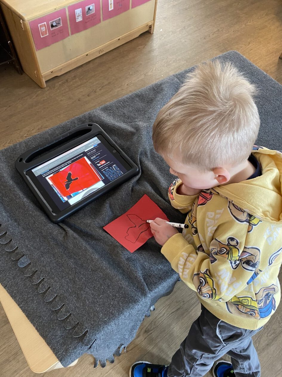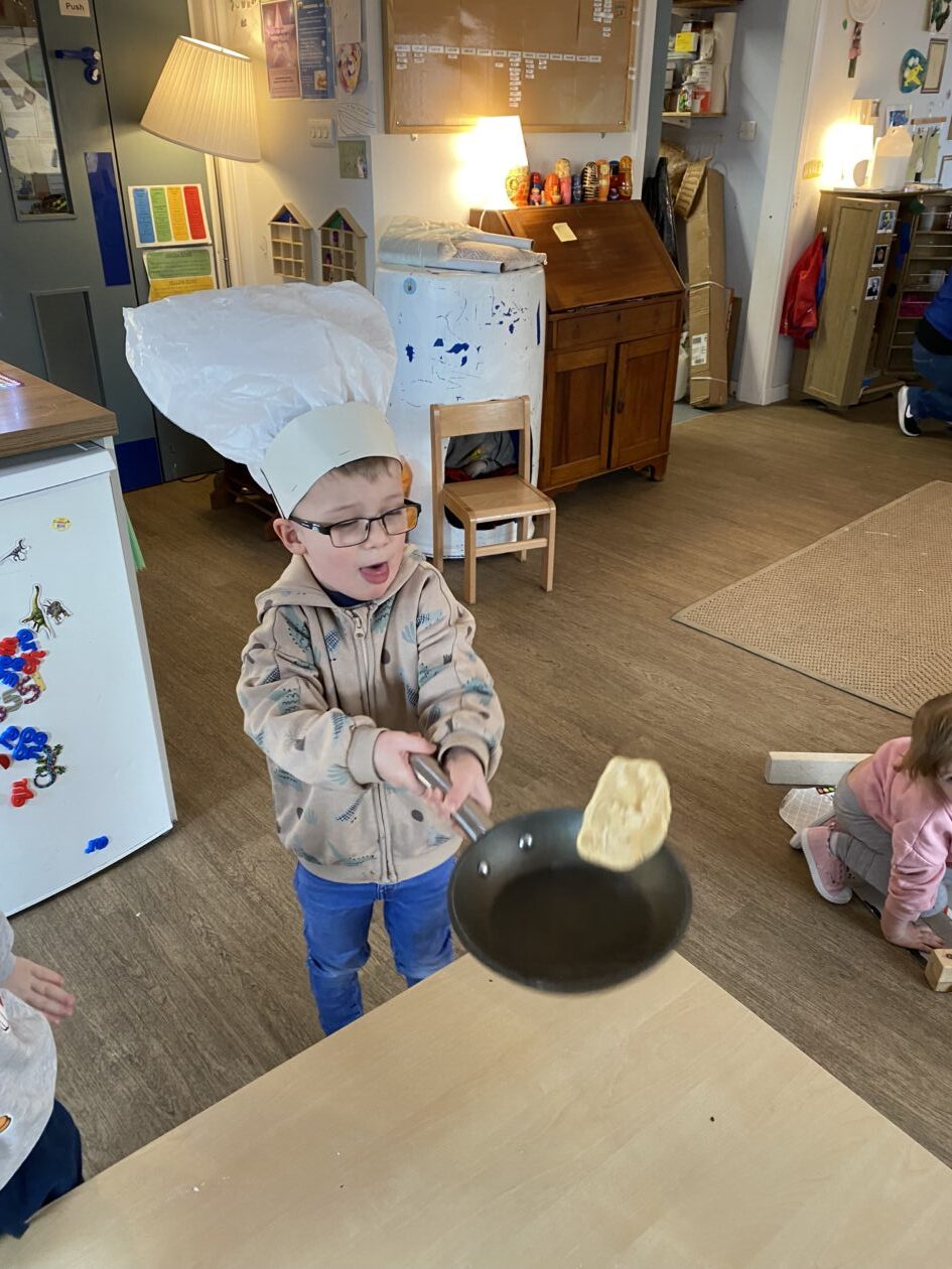The outdoor room is always a popular choice and a great place to observe schemas (a repeated action used to explore and test theories in play). The bairns have used positioning, transporting, trajectory, enveloping, rotation and enclosure schemas in their play this week. They made paper aeroplanes and then built a platform to launch their planes from, watching how far they flew. They have also been engaged in imaginative play using the large hollow blocks and cable drums as fishing boats. “He is da een dat goes in da water. He is da fishing een and I’m da Captain.”