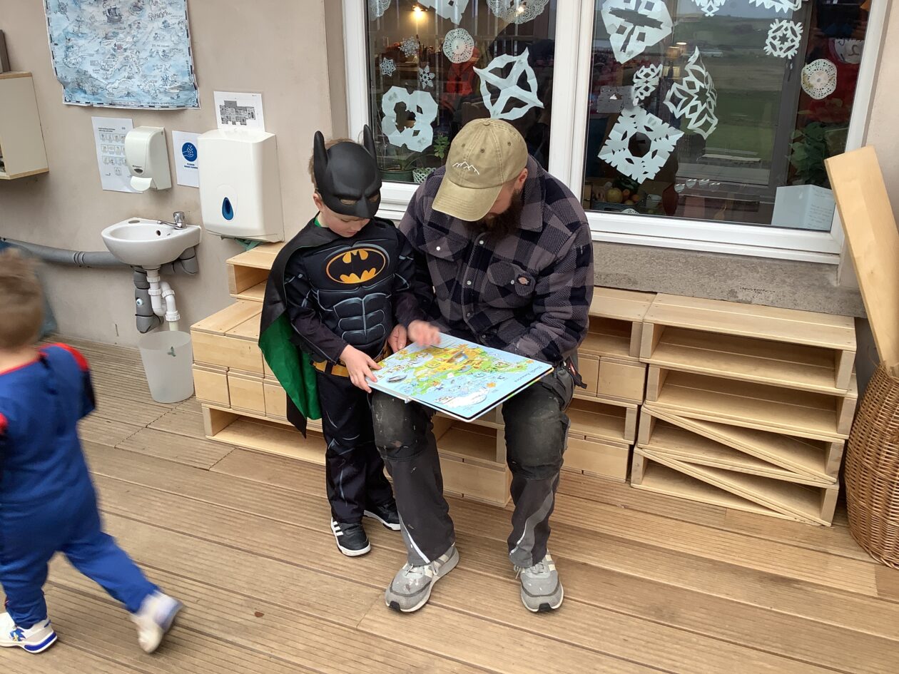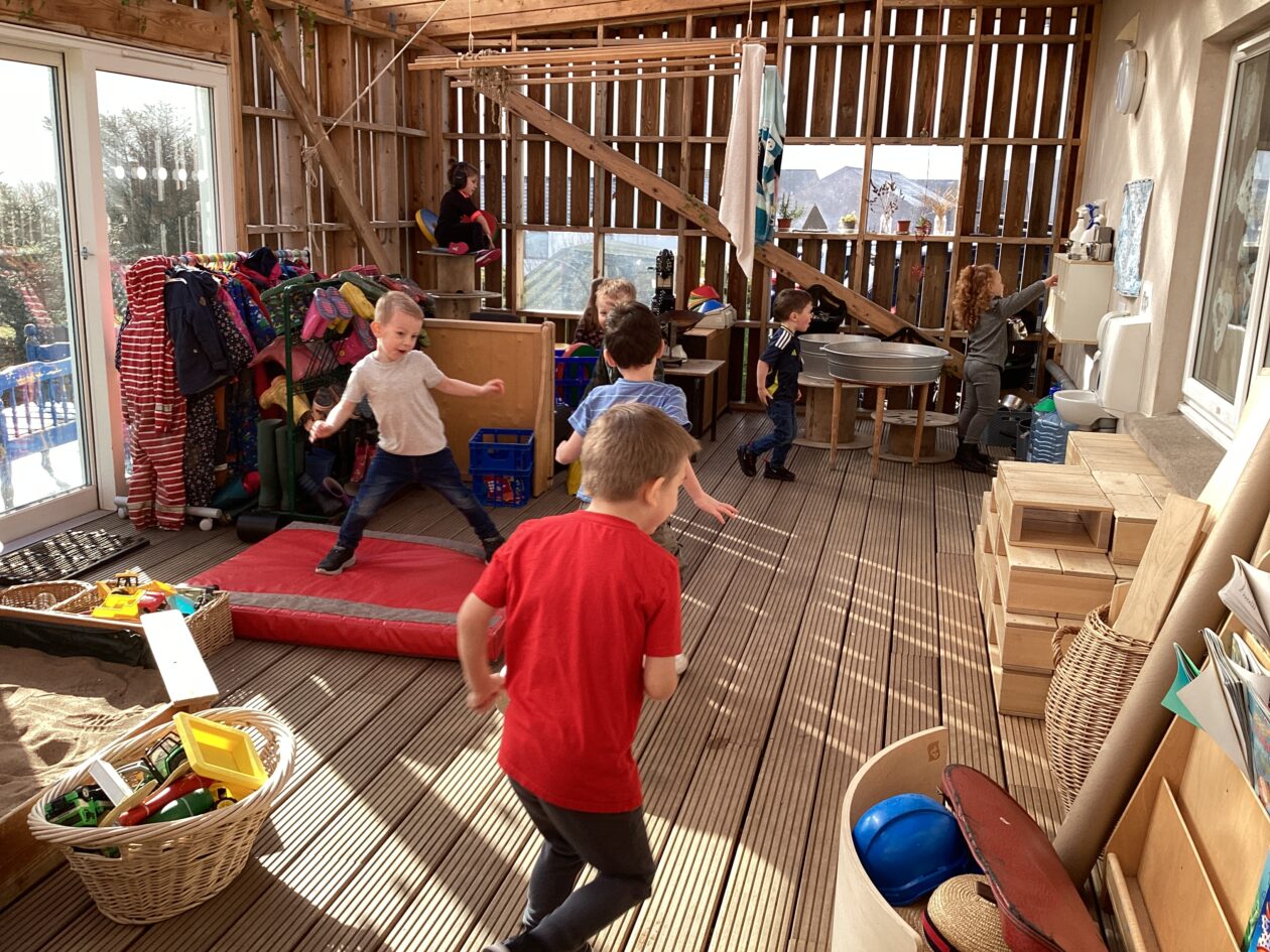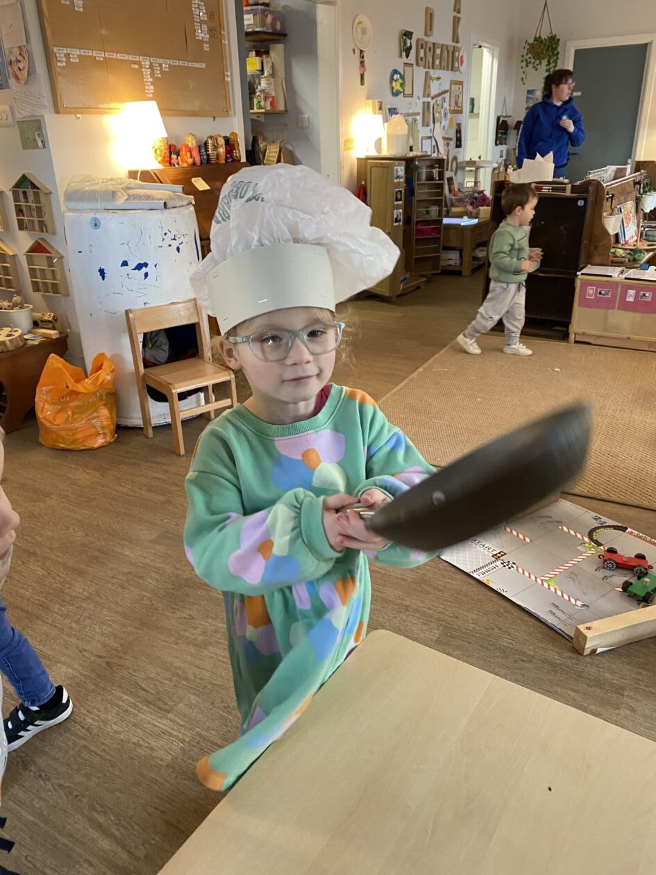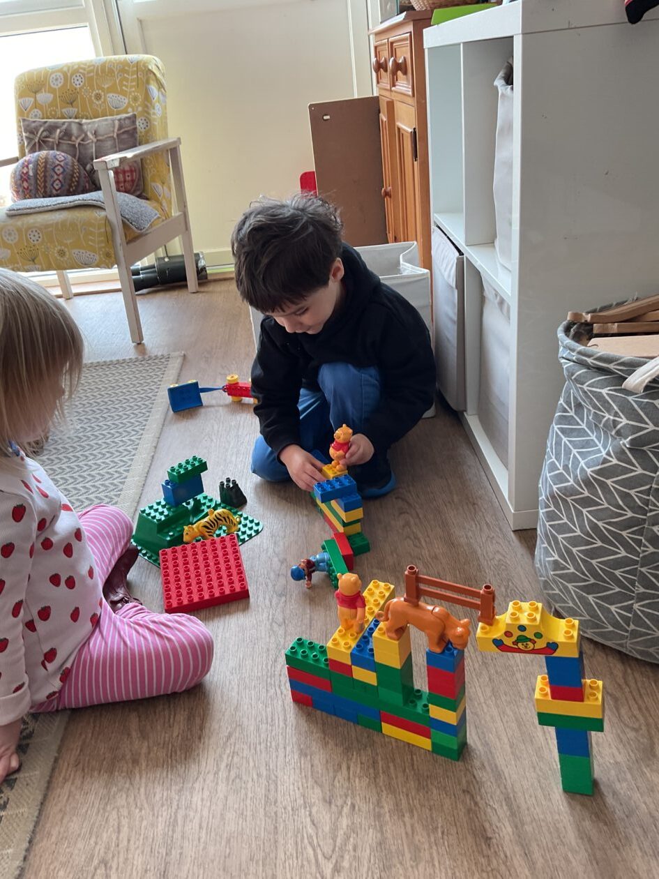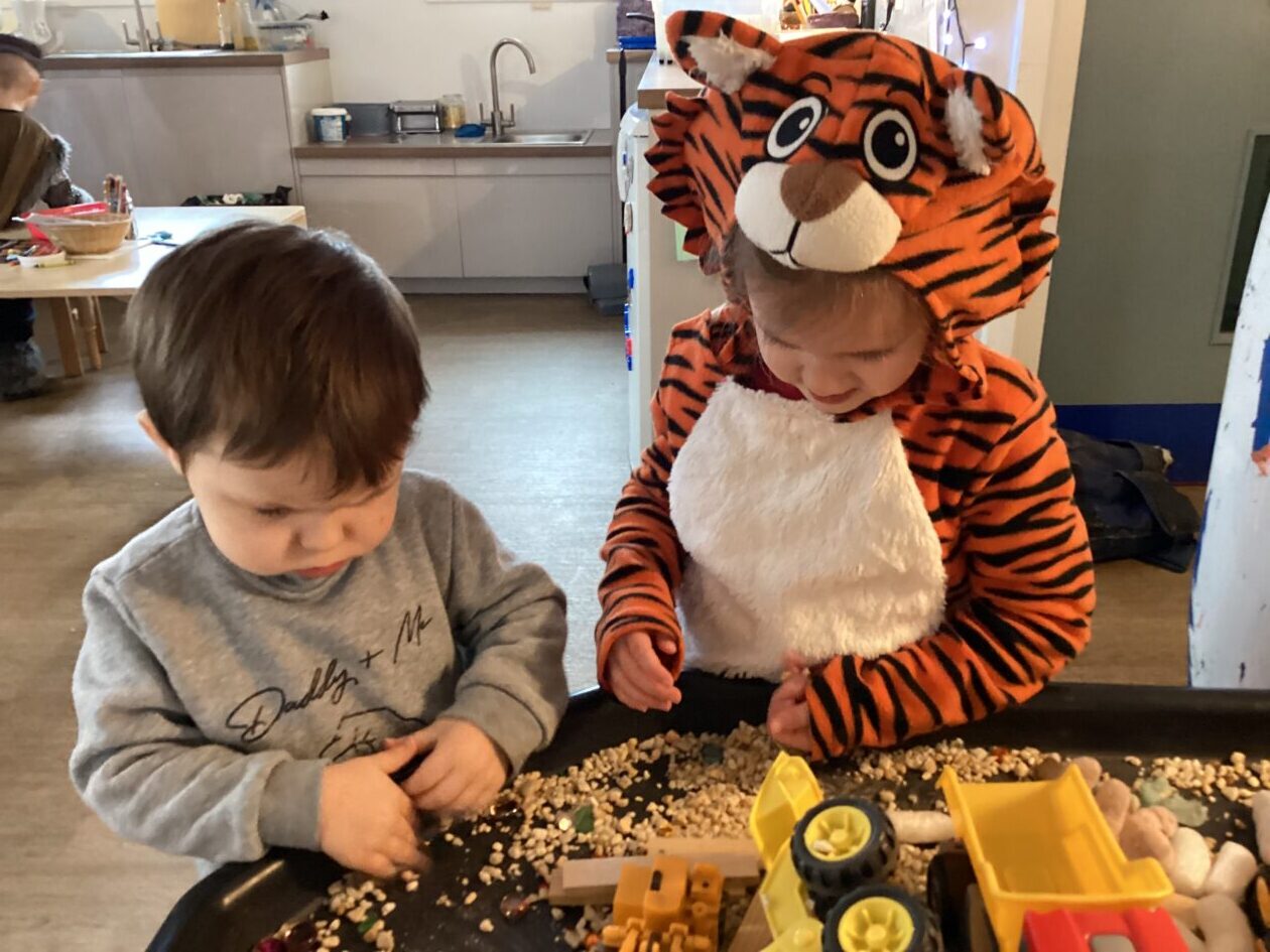 The outdoor room is always a popular choice and a great place to observe schemas (a repeated action used to explore and test theories in play). The bairns have used positioning, transporting, trajectory, enveloping, rotation and enclosure schemas in their play this week. They made paper aeroplanes and then built a platform to launch their planes from, watching how far they flew. They have also been engaged in imaginative play using the large hollow blocks and cable drums as fishing boats. “He is da een dat goes in da water. He is da fishing een and I’m da Captain.”
