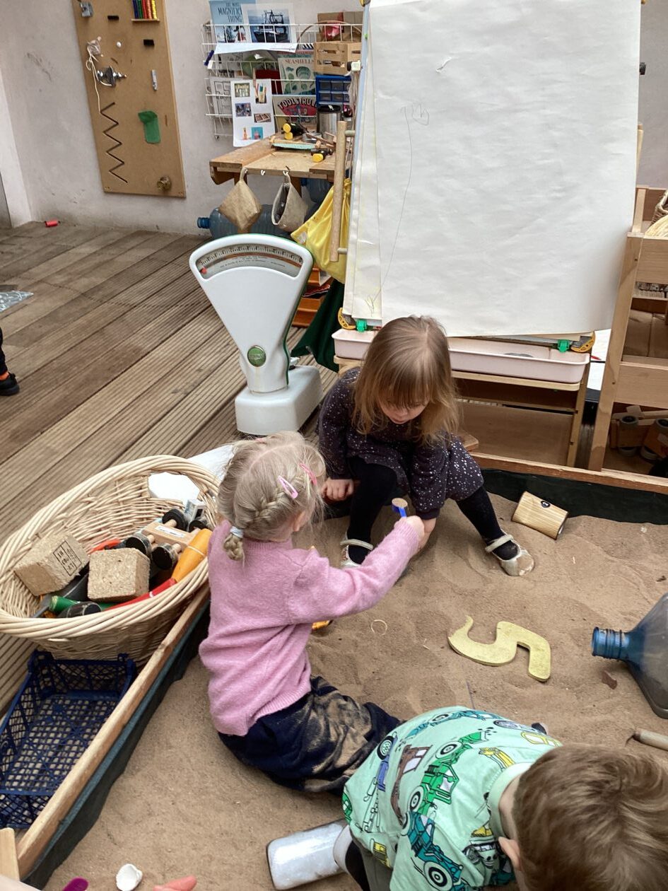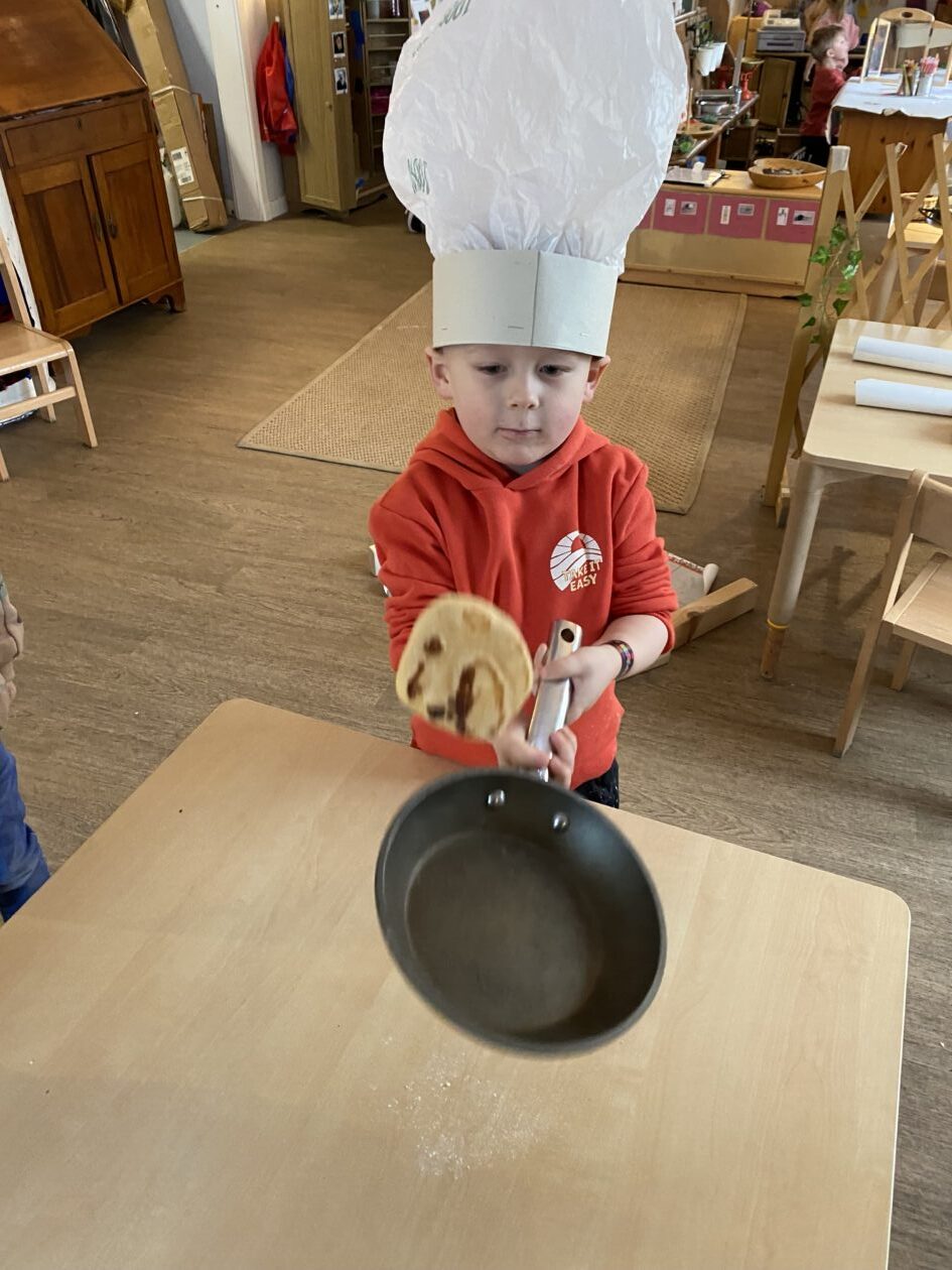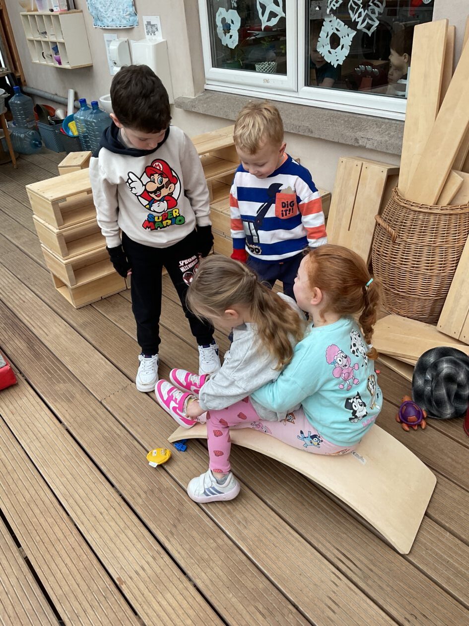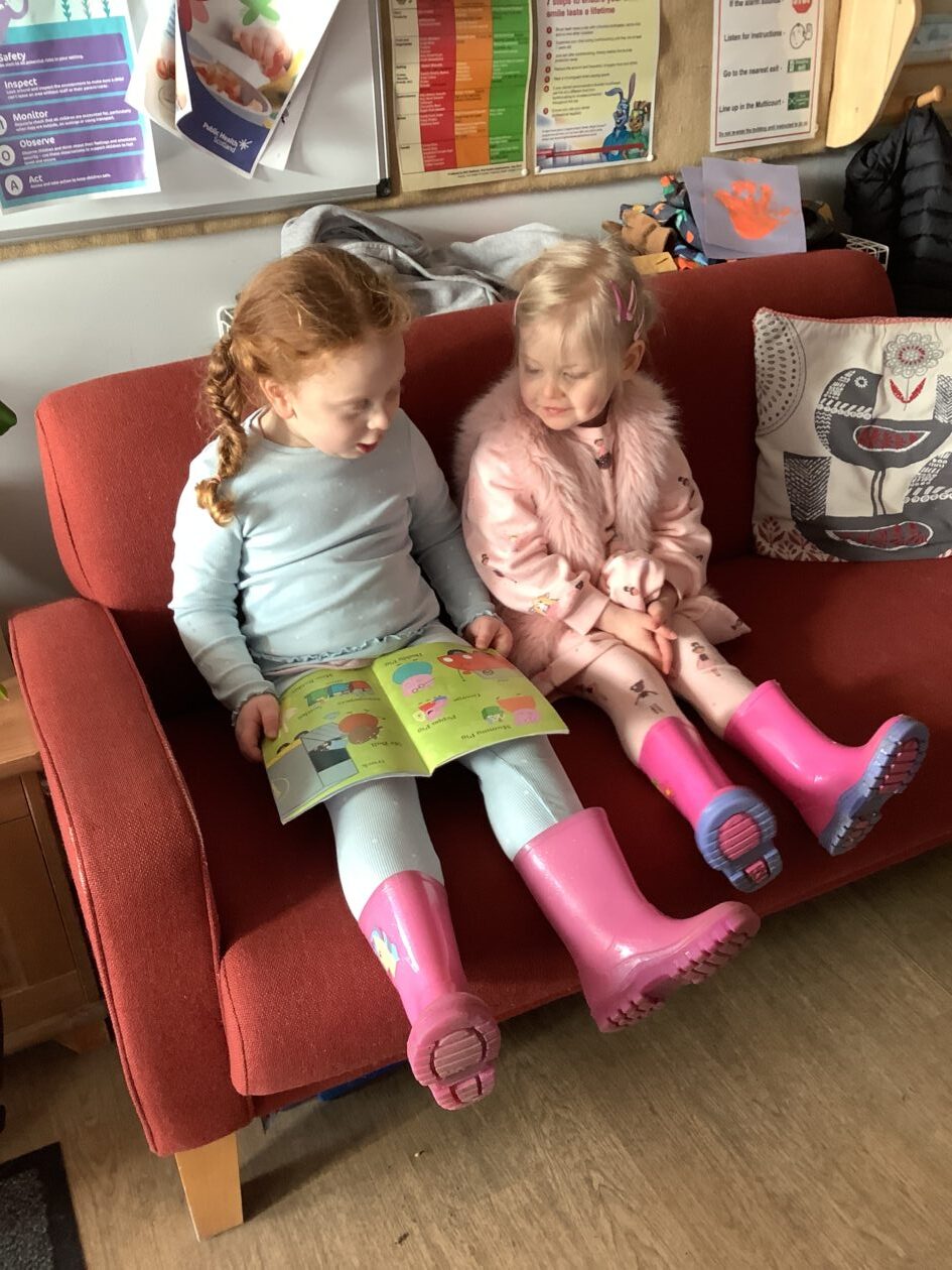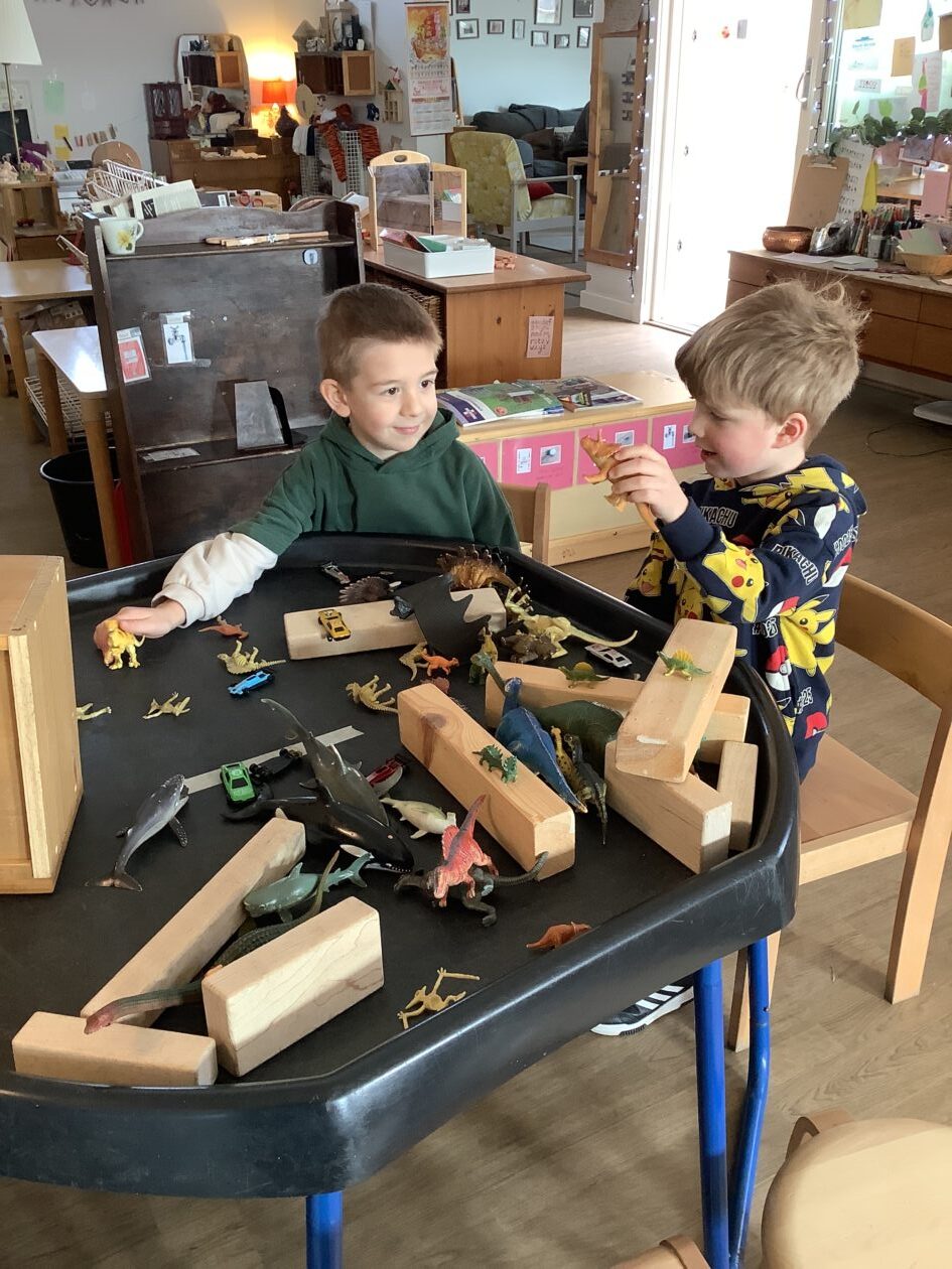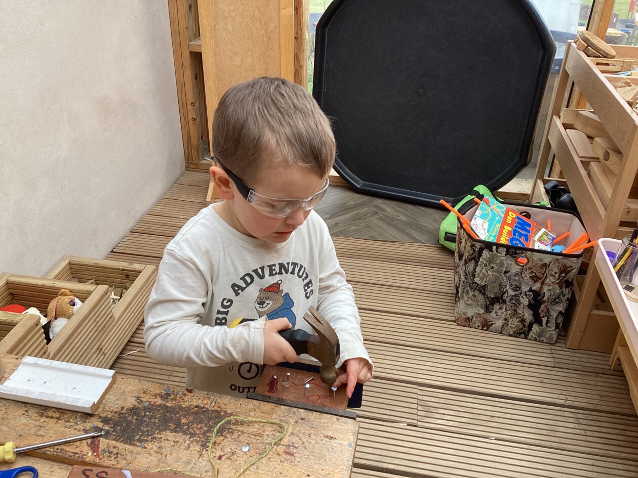 The outdoor room is always a popular choice and a great place to observe schemas (a repeated action used to explore and test theories in play). The bairns have used positioning, transporting, trajectory, enveloping, rotation and enclosure schemas in their play this week. They made paper aeroplanes and then built a platform to launch their planes from, watching how far they flew. They have also been engaged in imaginative play using the large hollow blocks and cable drums as fishing boats. “He is da een dat goes in da water. He is da fishing een and I’m da Captain.”