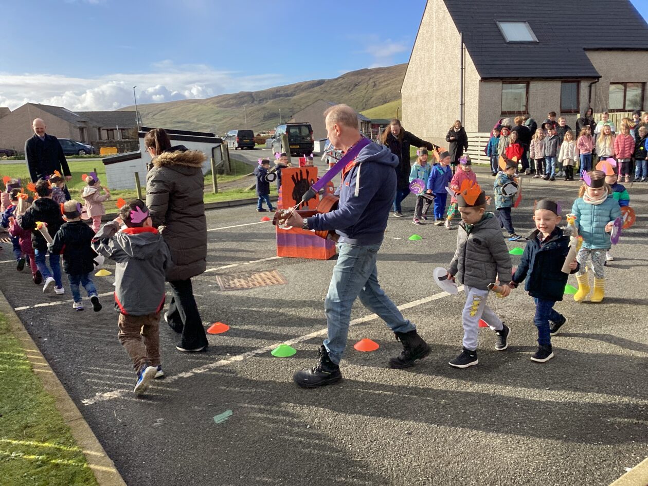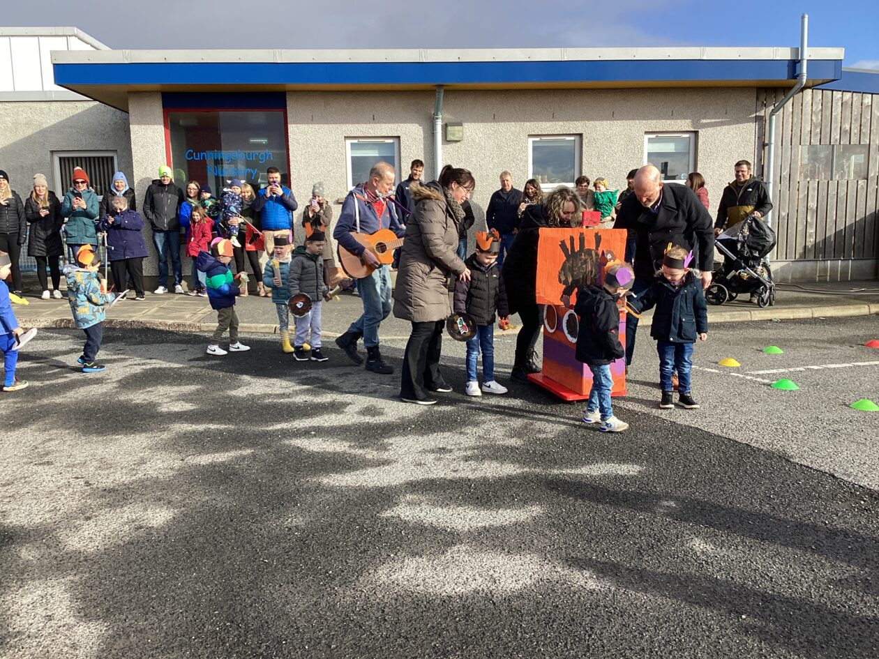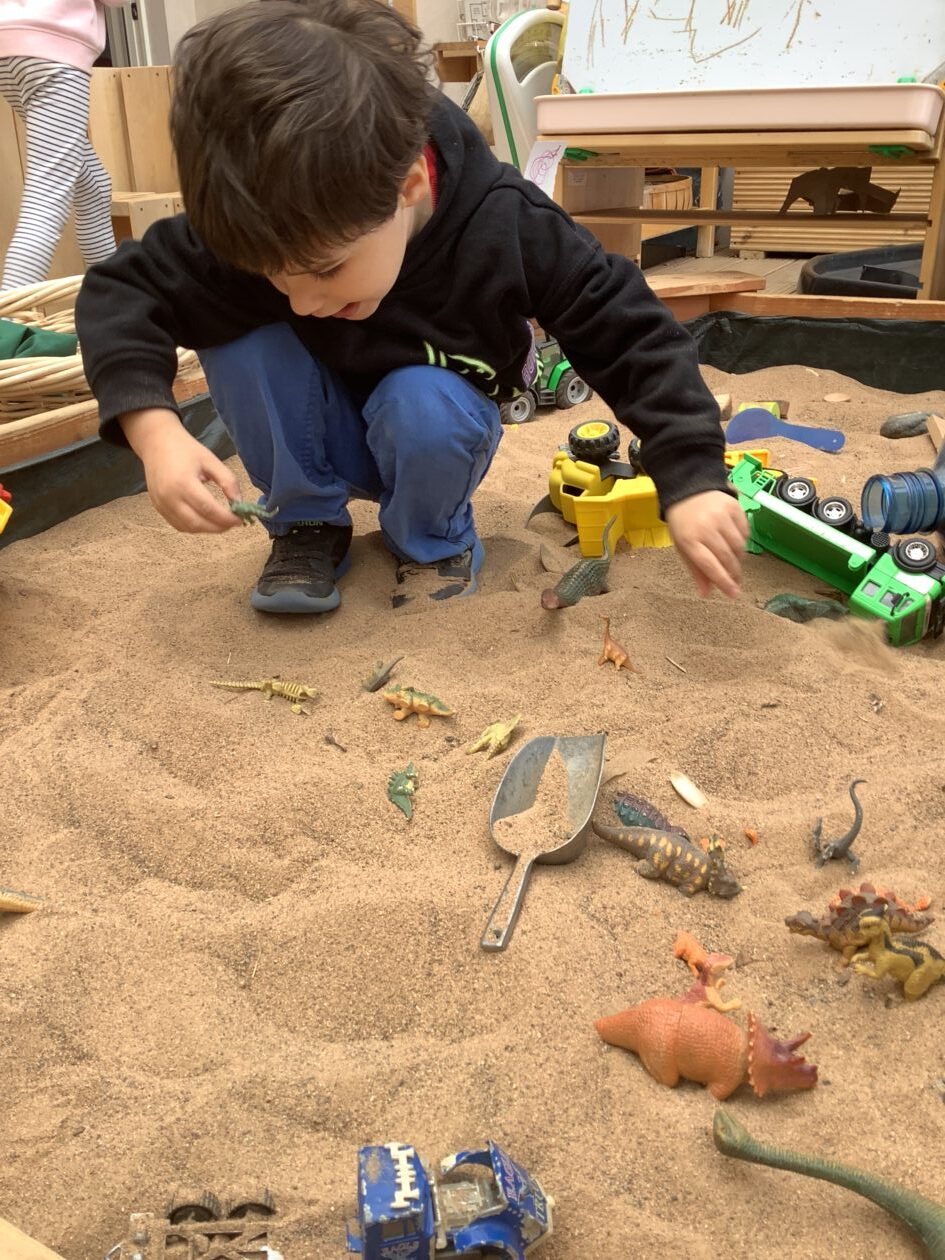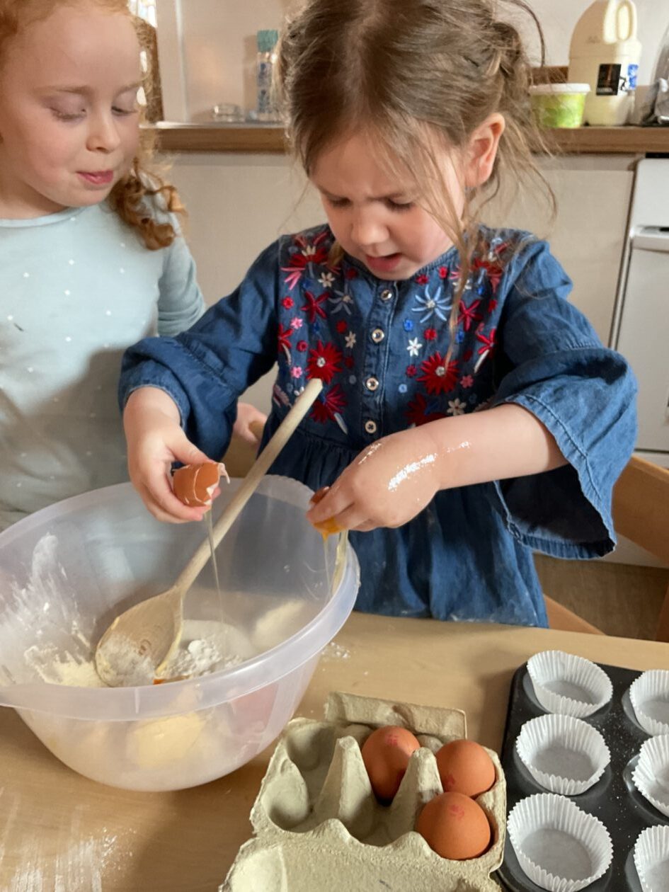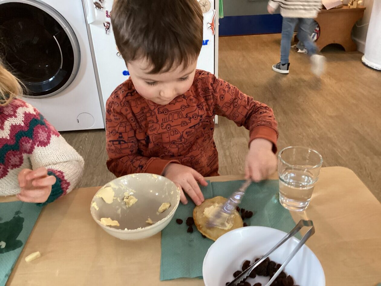 The outdoor room is always a popular choice and a great place to observe schemas (a repeated action used to explore and test theories in play). The bairns have used positioning, transporting, trajectory, enveloping, rotation and enclosure schemas in their play this week. They made paper aeroplanes and then built a platform to launch their planes from, watching how far they flew. They have also been engaged in imaginative play using the large hollow blocks and cable drums as fishing boats. “He is da een dat goes in da water. He is da fishing een and I’m da Captain.”
