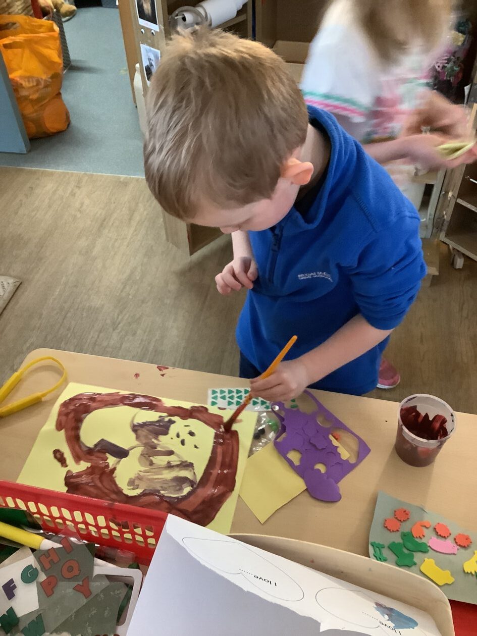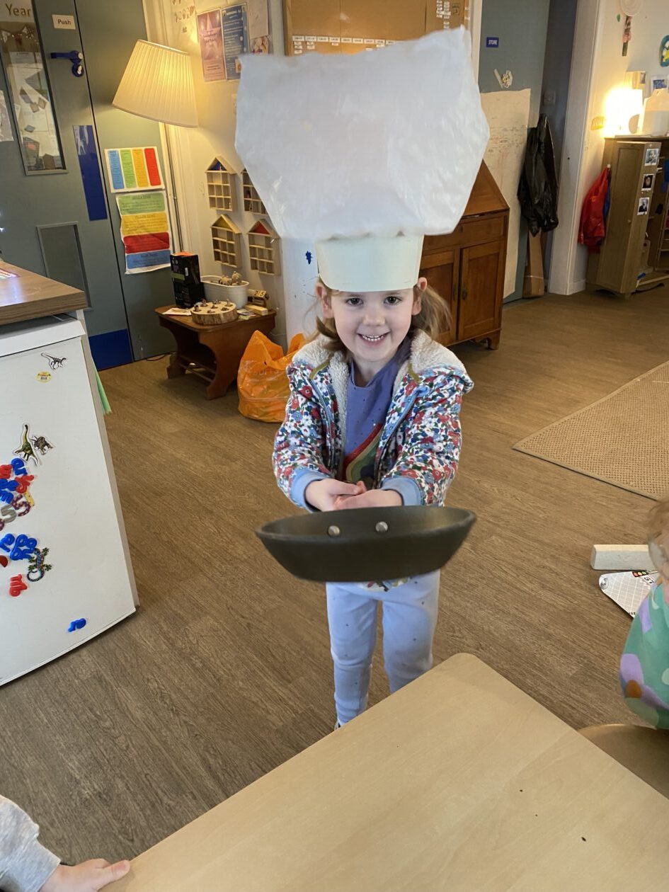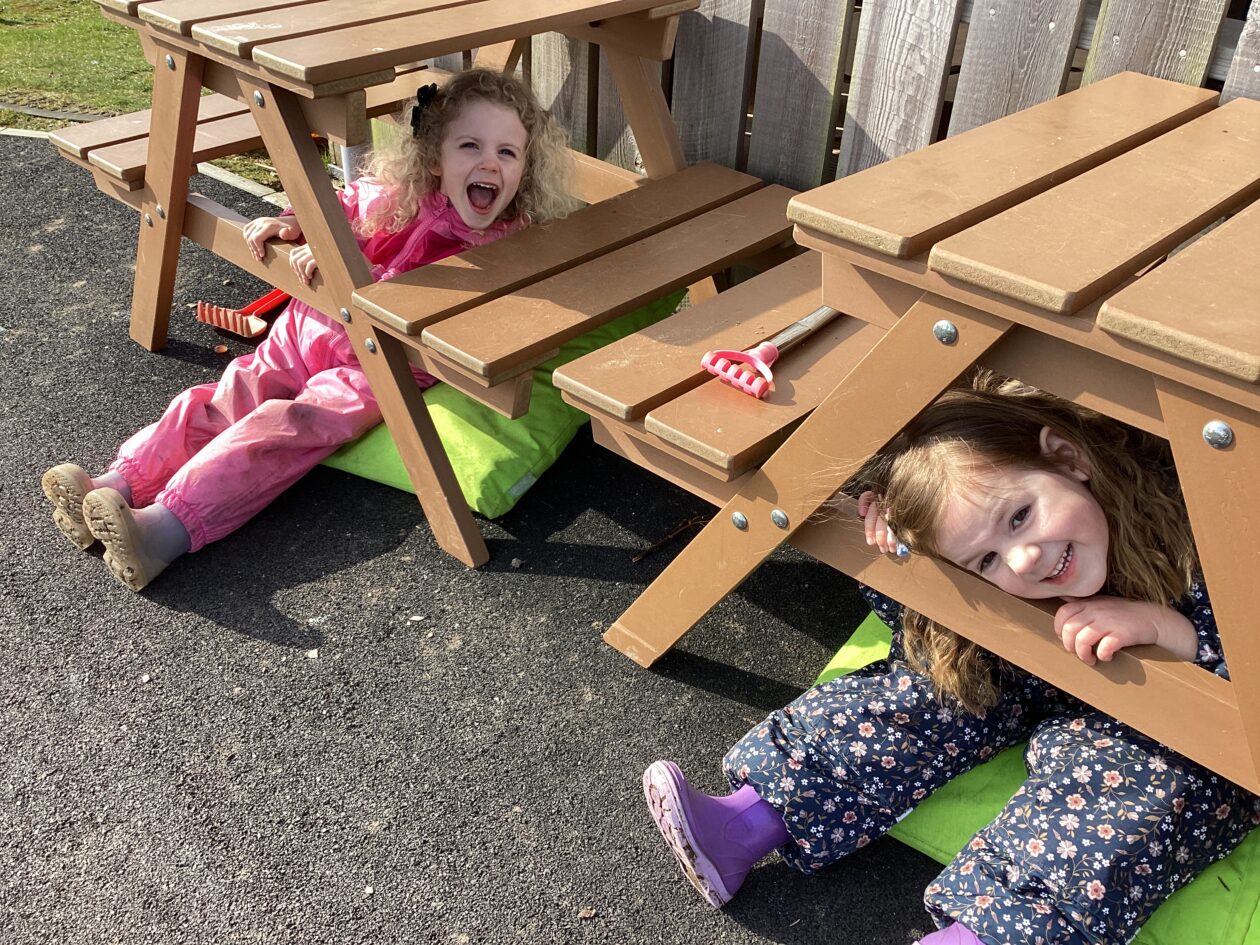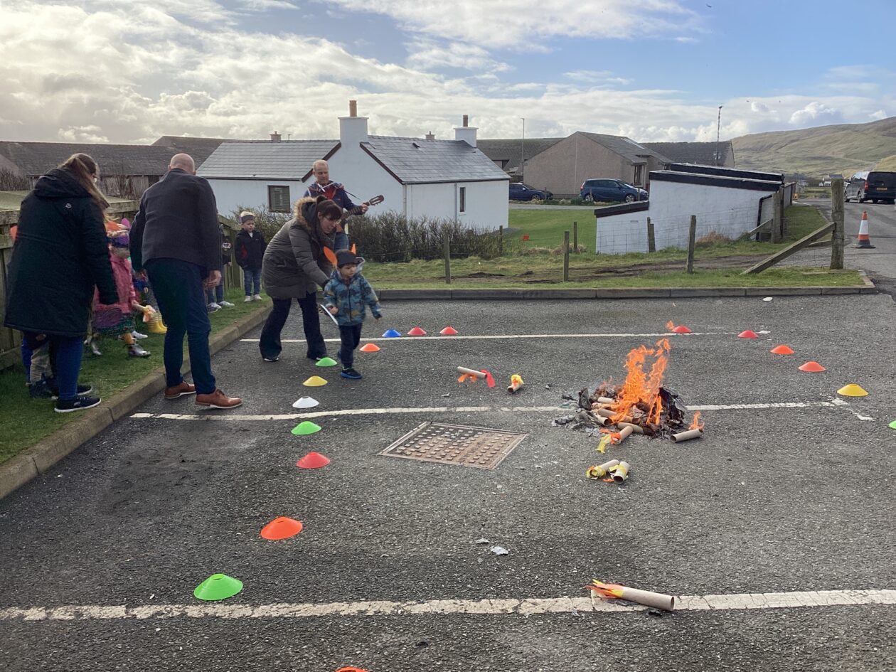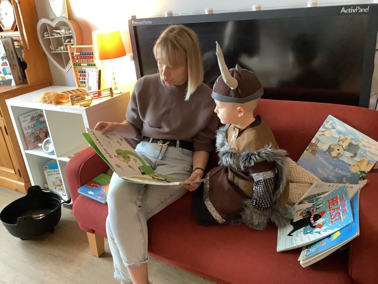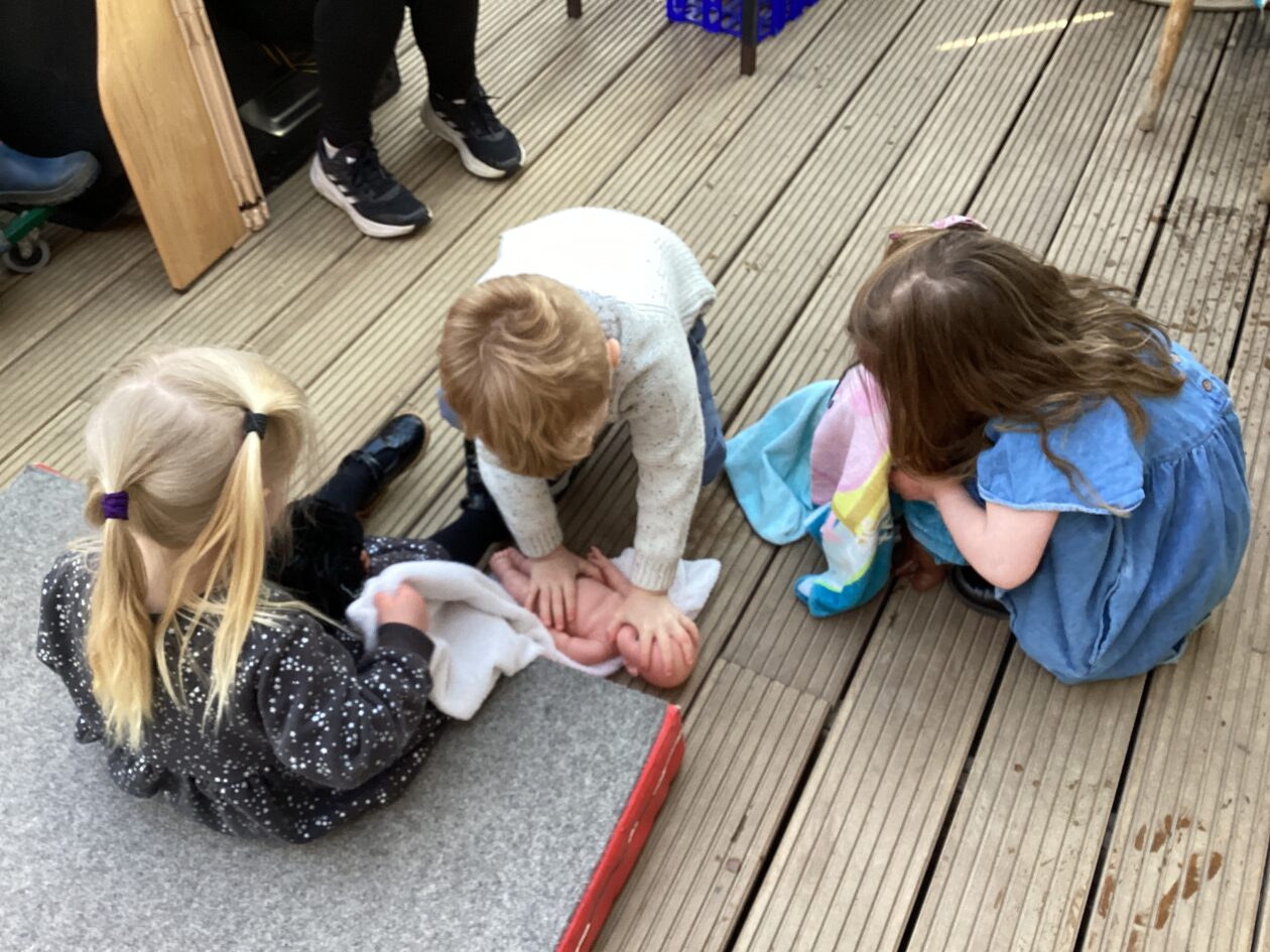 The outdoor room is always a popular choice and a great place to observe schemas (a repeated action used to explore and test theories in play). The bairns have used positioning, transporting, trajectory, enveloping, rotation and enclosure schemas in their play this week. They made paper aeroplanes and then built a platform to launch their planes from, watching how far they flew. They have also been engaged in imaginative play using the large hollow blocks and cable drums as fishing boats. “He is da een dat goes in da water. He is da fishing een and I’m da Captain.”
