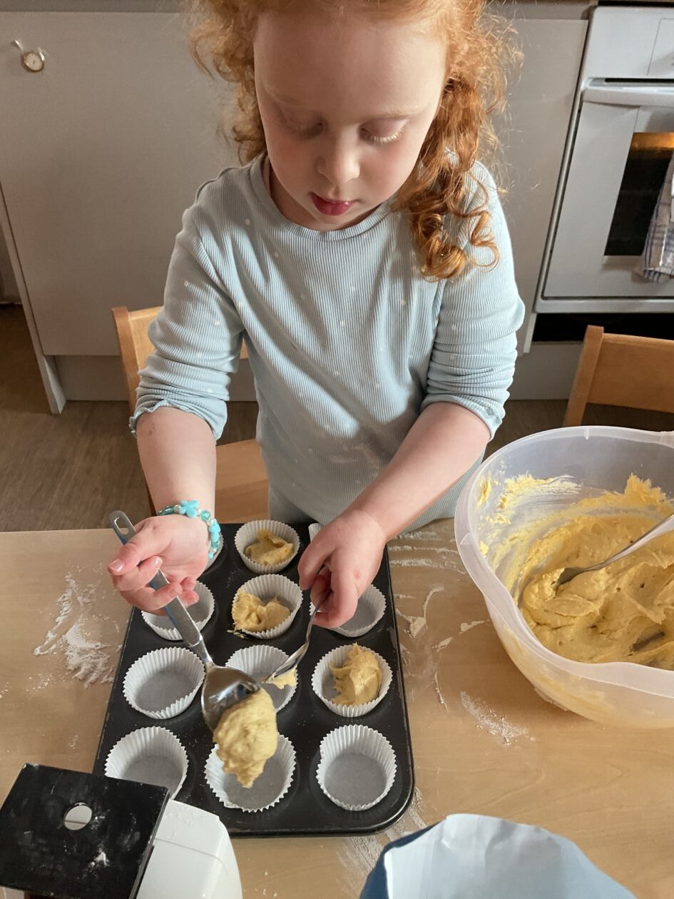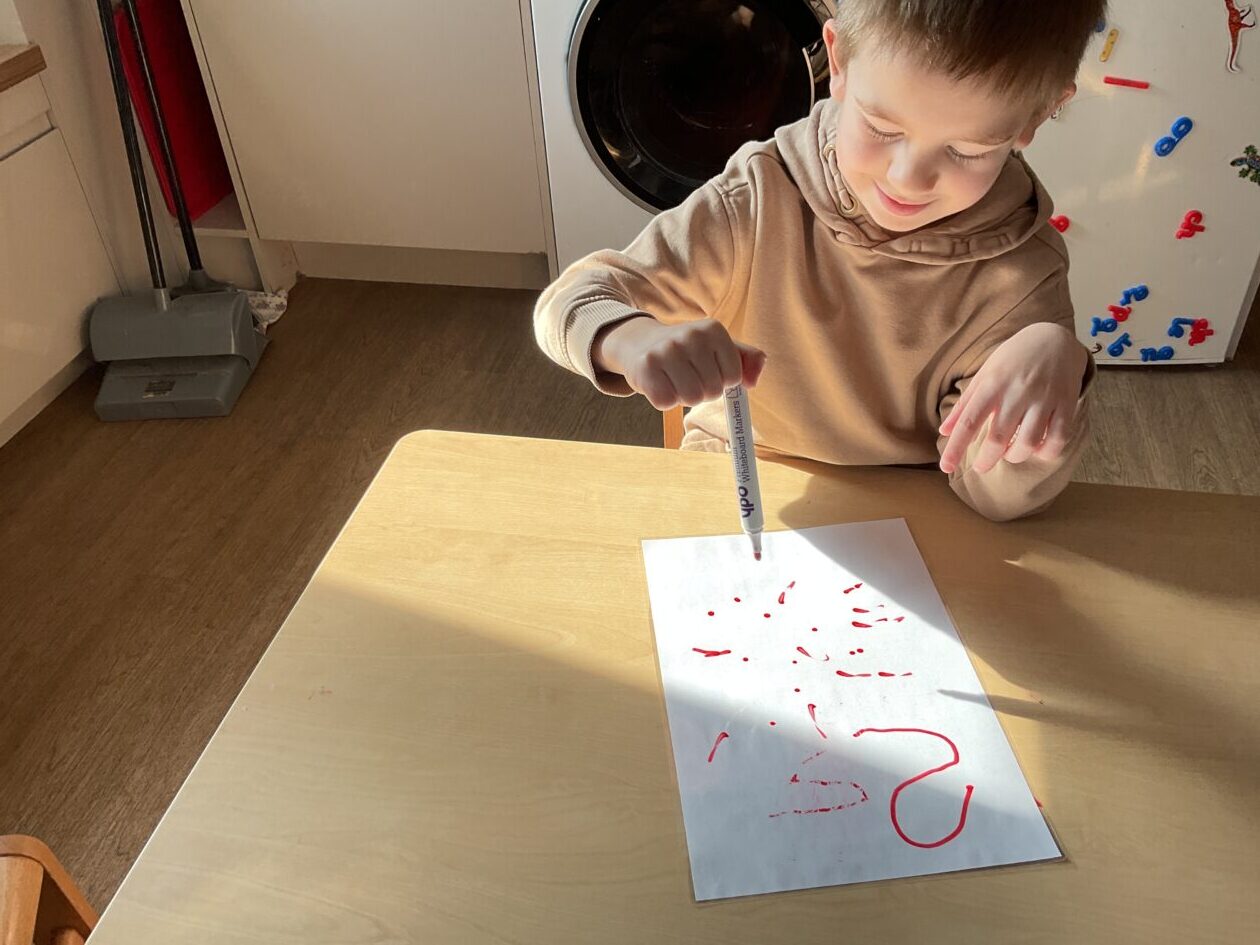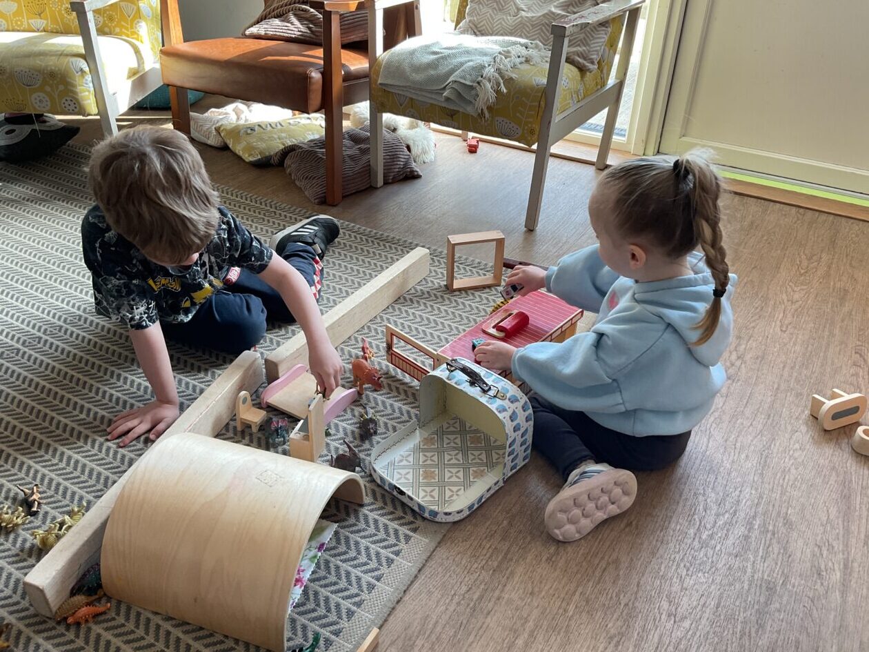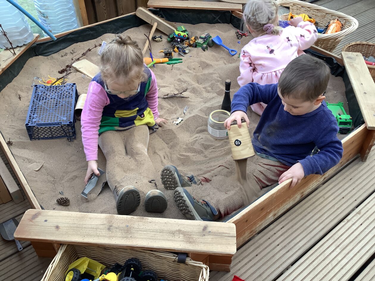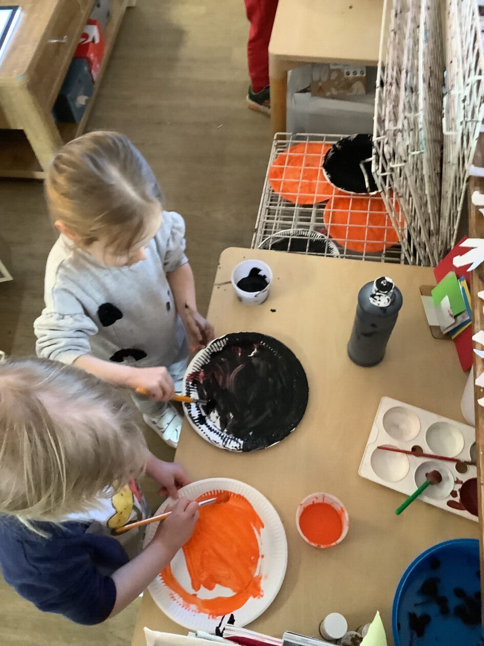 The outdoor room is always a popular choice and a great place to observe schemas (a repeated action used to explore and test theories in play). The bairns have used positioning, transporting, trajectory, enveloping, rotation and enclosure schemas in their play this week. They made paper aeroplanes and then built a platform to launch their planes from, watching how far they flew. They have also been engaged in imaginative play using the large hollow blocks and cable drums as fishing boats. “He is da een dat goes in da water. He is da fishing een and I’m da Captain.”