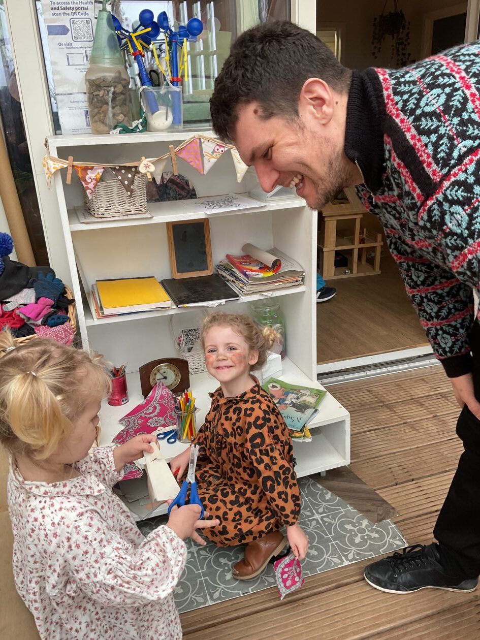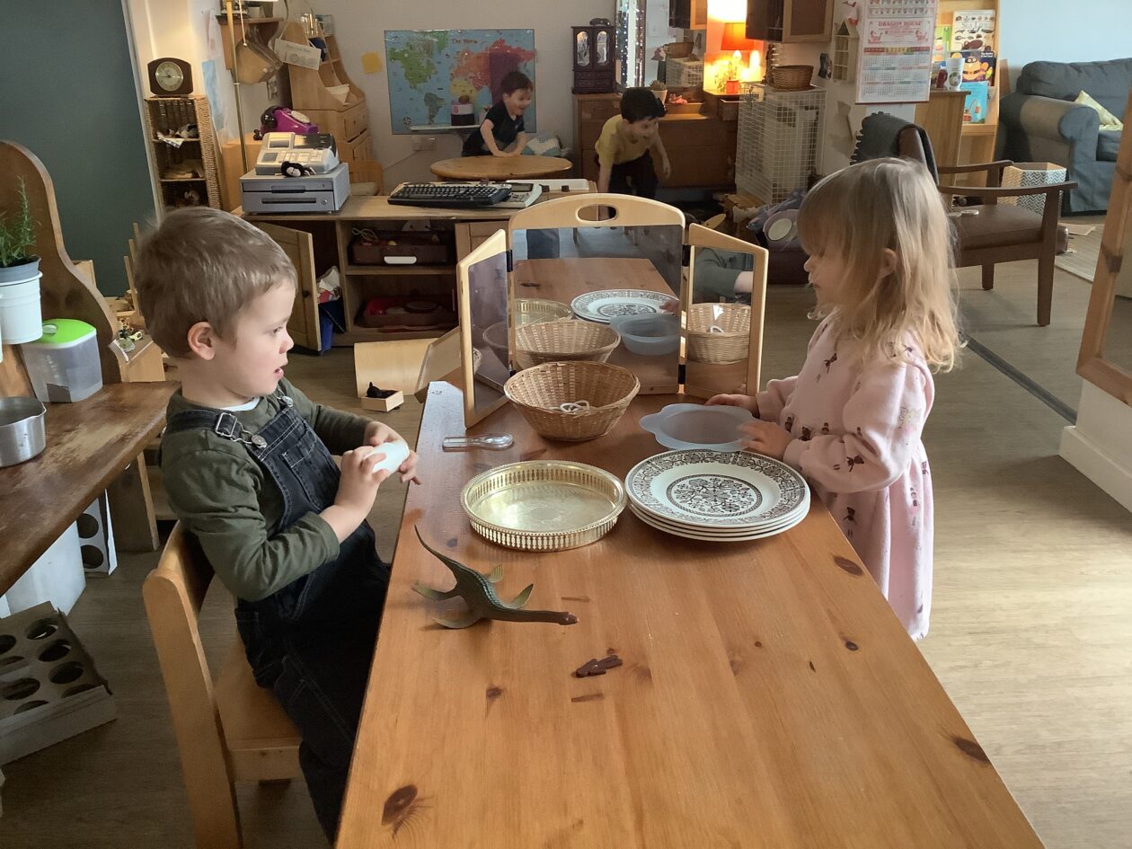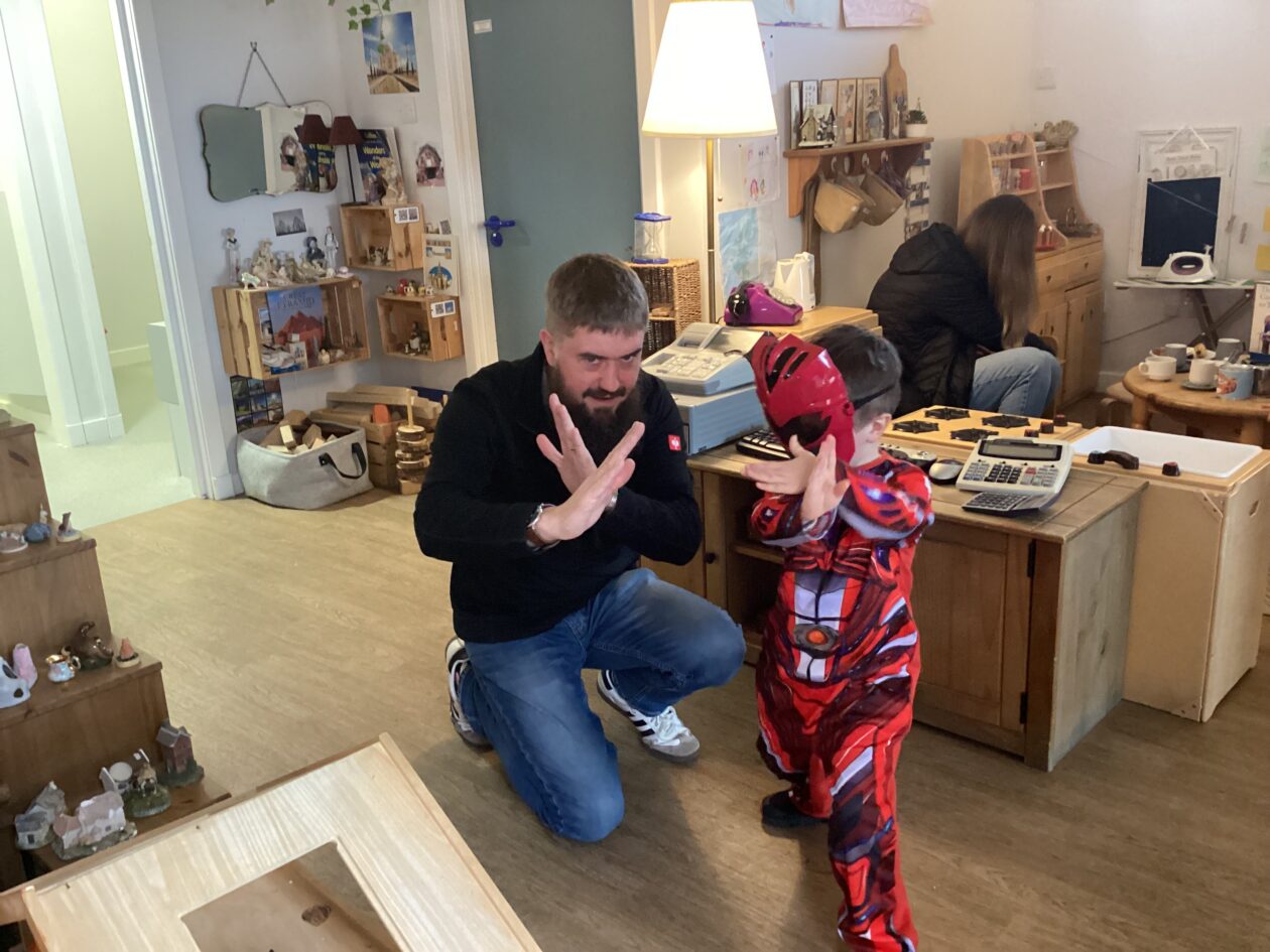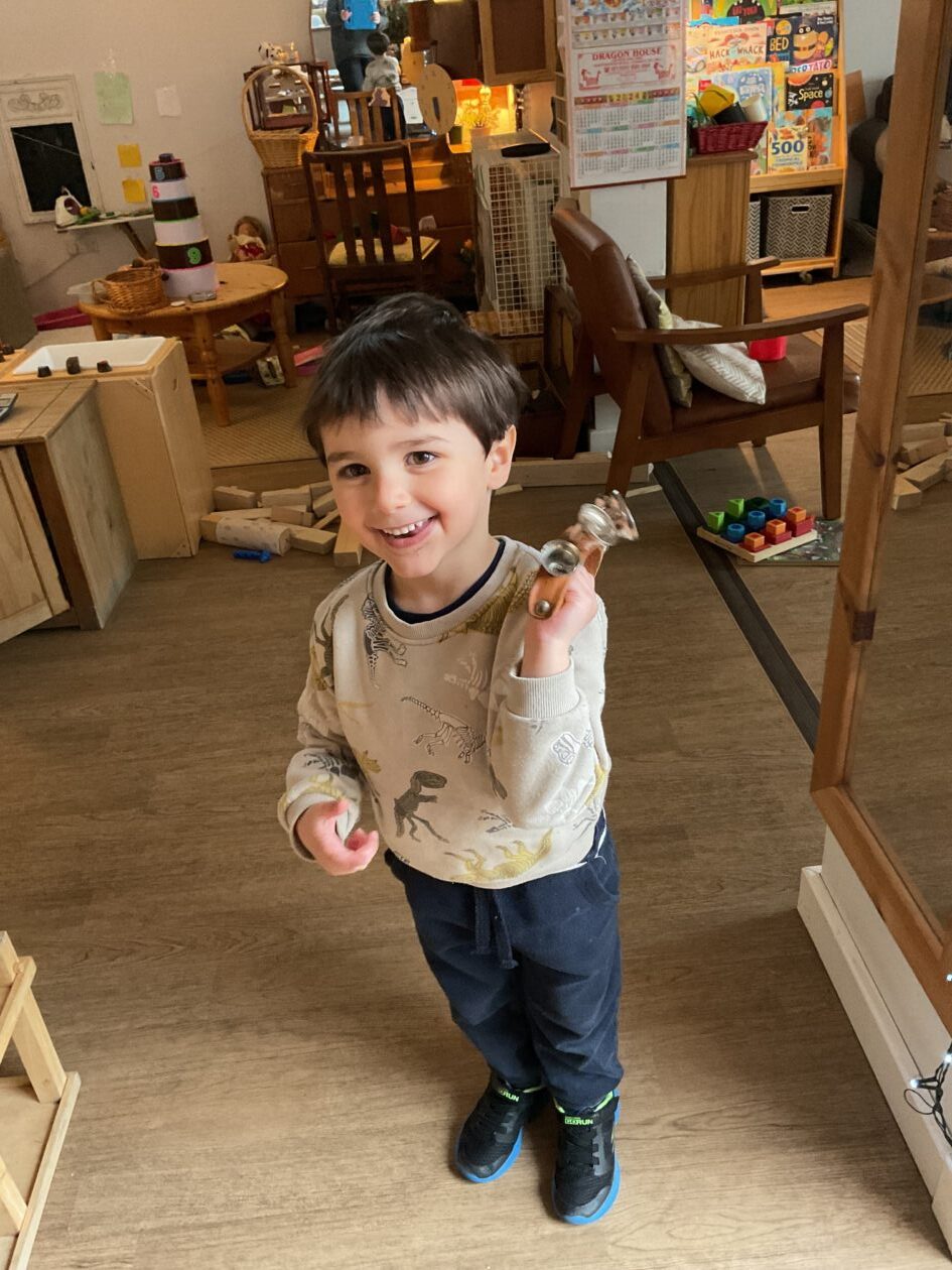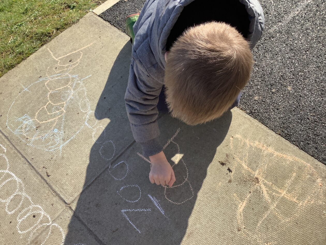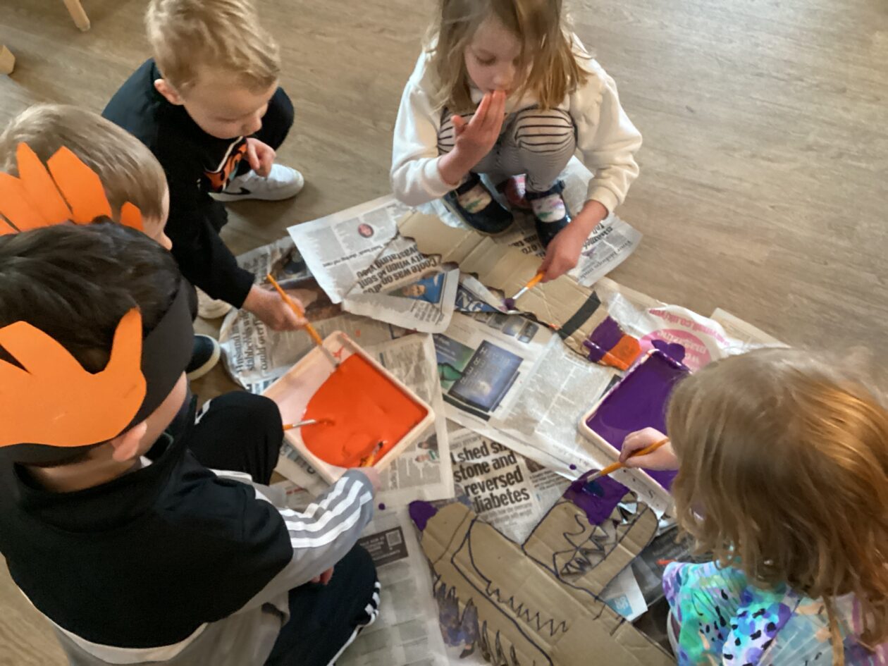 The outdoor room is always a popular choice and a great place to observe schemas (a repeated action used to explore and test theories in play). The bairns have used positioning, transporting, trajectory, enveloping, rotation and enclosure schemas in their play this week. They made paper aeroplanes and then built a platform to launch their planes from, watching how far they flew. They have also been engaged in imaginative play using the large hollow blocks and cable drums as fishing boats. “He is da een dat goes in da water. He is da fishing een and I’m da Captain.”