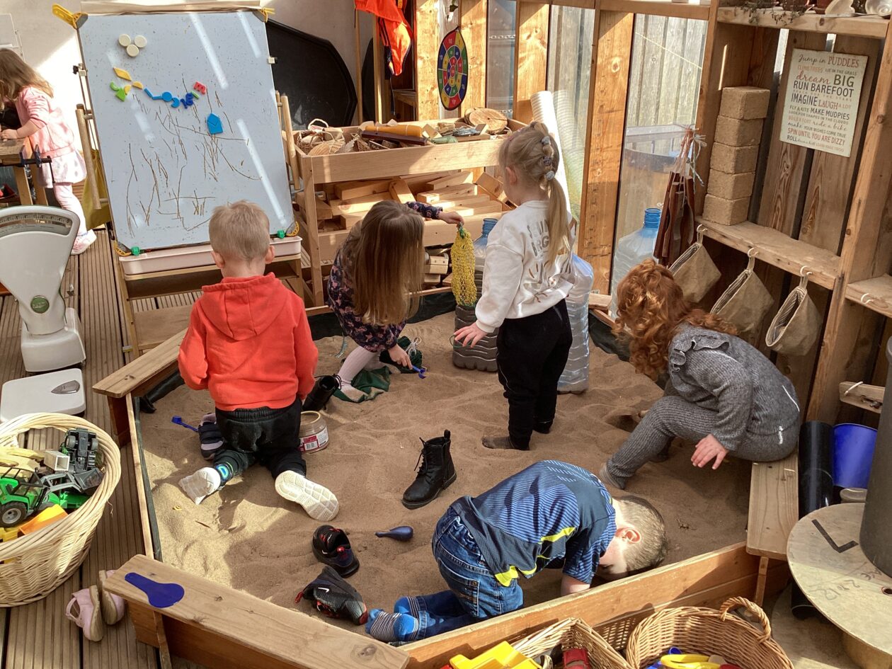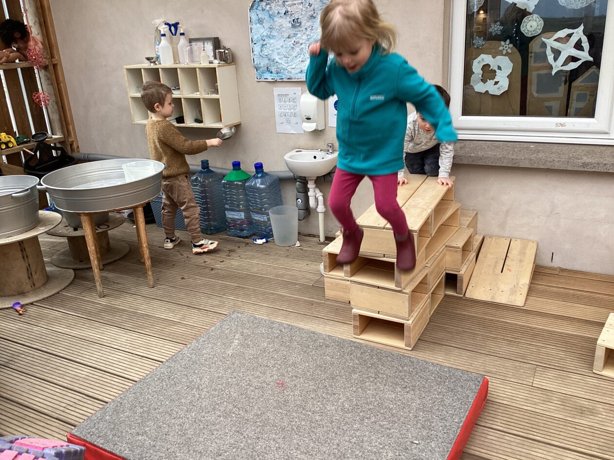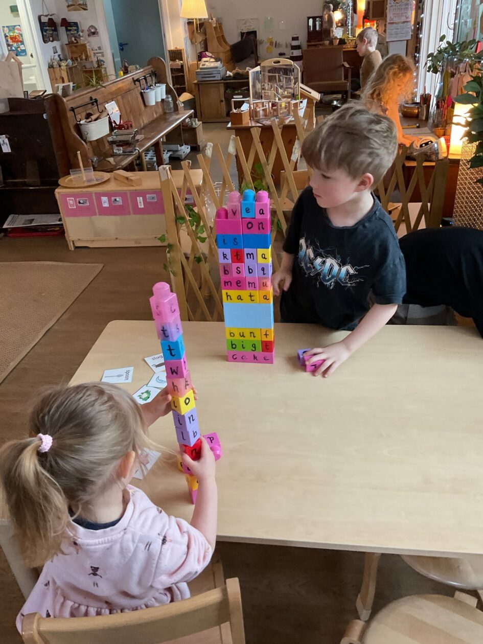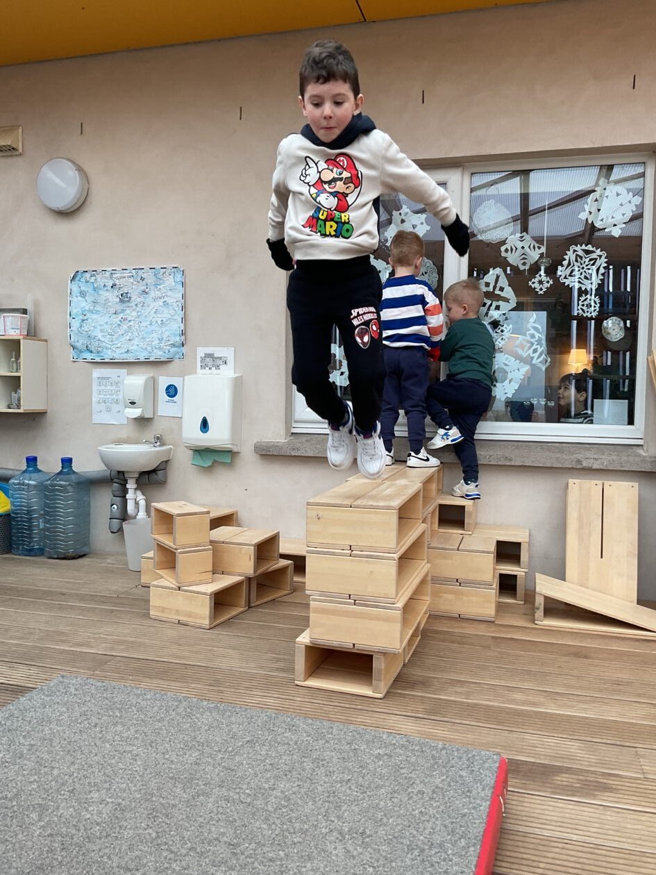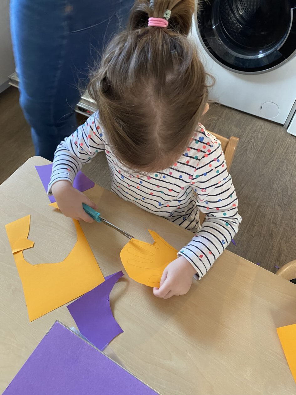 The outdoor room is always a popular choice and a great place to observe schemas (a repeated action used to explore and test theories in play). The bairns have used positioning, transporting, trajectory, enveloping, rotation and enclosure schemas in their play this week. They made paper aeroplanes and then built a platform to launch their planes from, watching how far they flew. They have also been engaged in imaginative play using the large hollow blocks and cable drums as fishing boats. “He is da een dat goes in da water. He is da fishing een and I’m da Captain.”