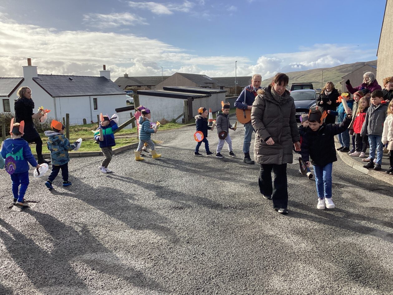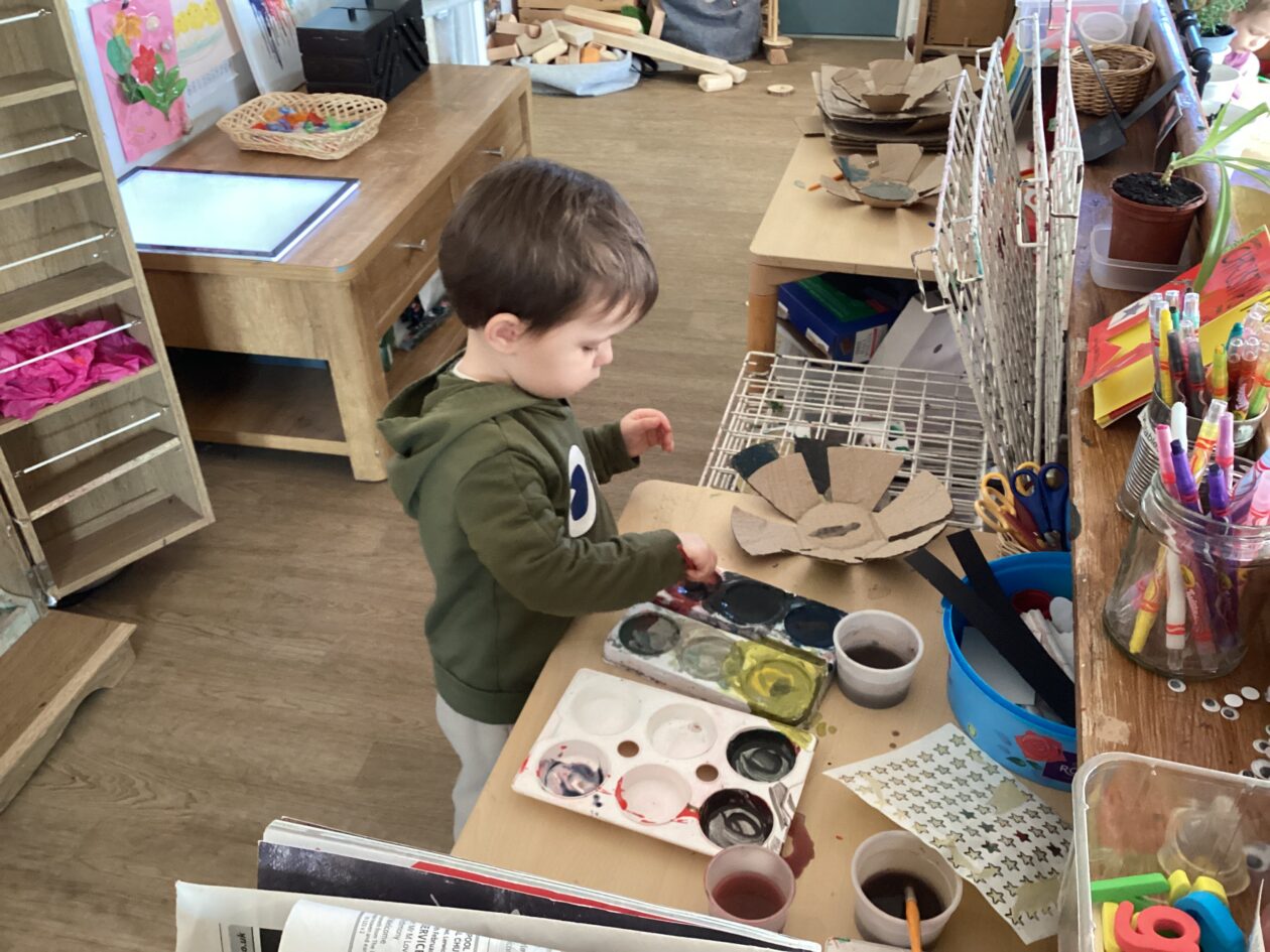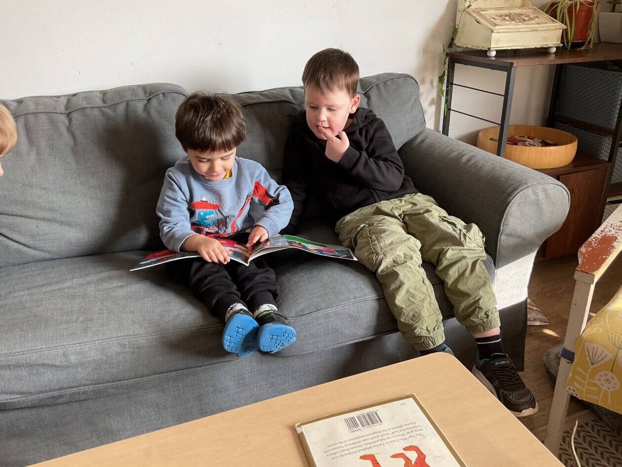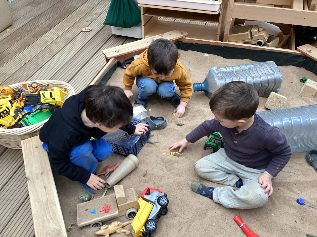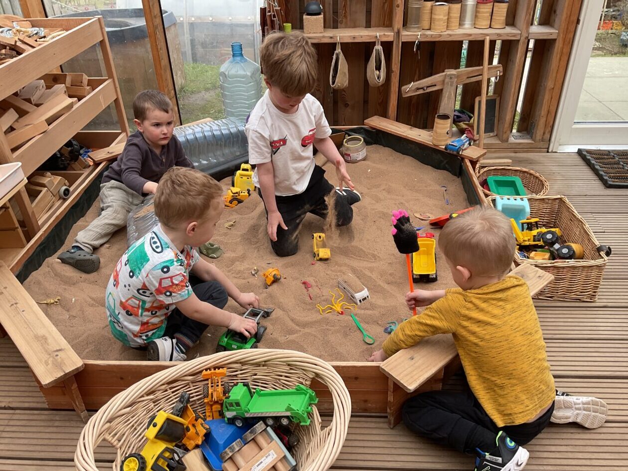 The outdoor room is always a popular choice and a great place to observe schemas (a repeated action used to explore and test theories in play). The bairns have used positioning, transporting, trajectory, enveloping, rotation and enclosure schemas in their play this week. They made paper aeroplanes and then built a platform to launch their planes from, watching how far they flew. They have also been engaged in imaginative play using the large hollow blocks and cable drums as fishing boats. “He is da een dat goes in da water. He is da fishing een and I’m da Captain.”