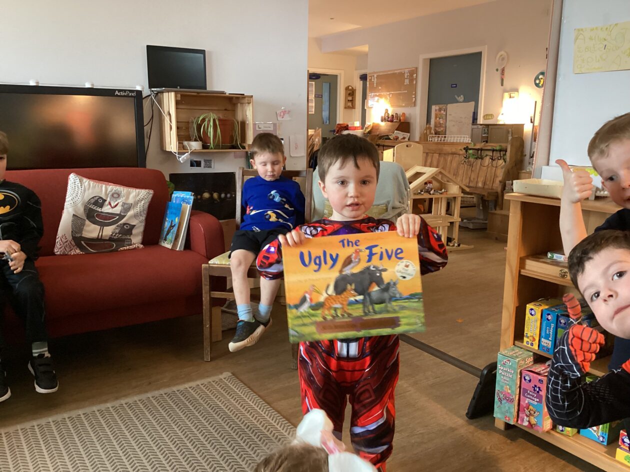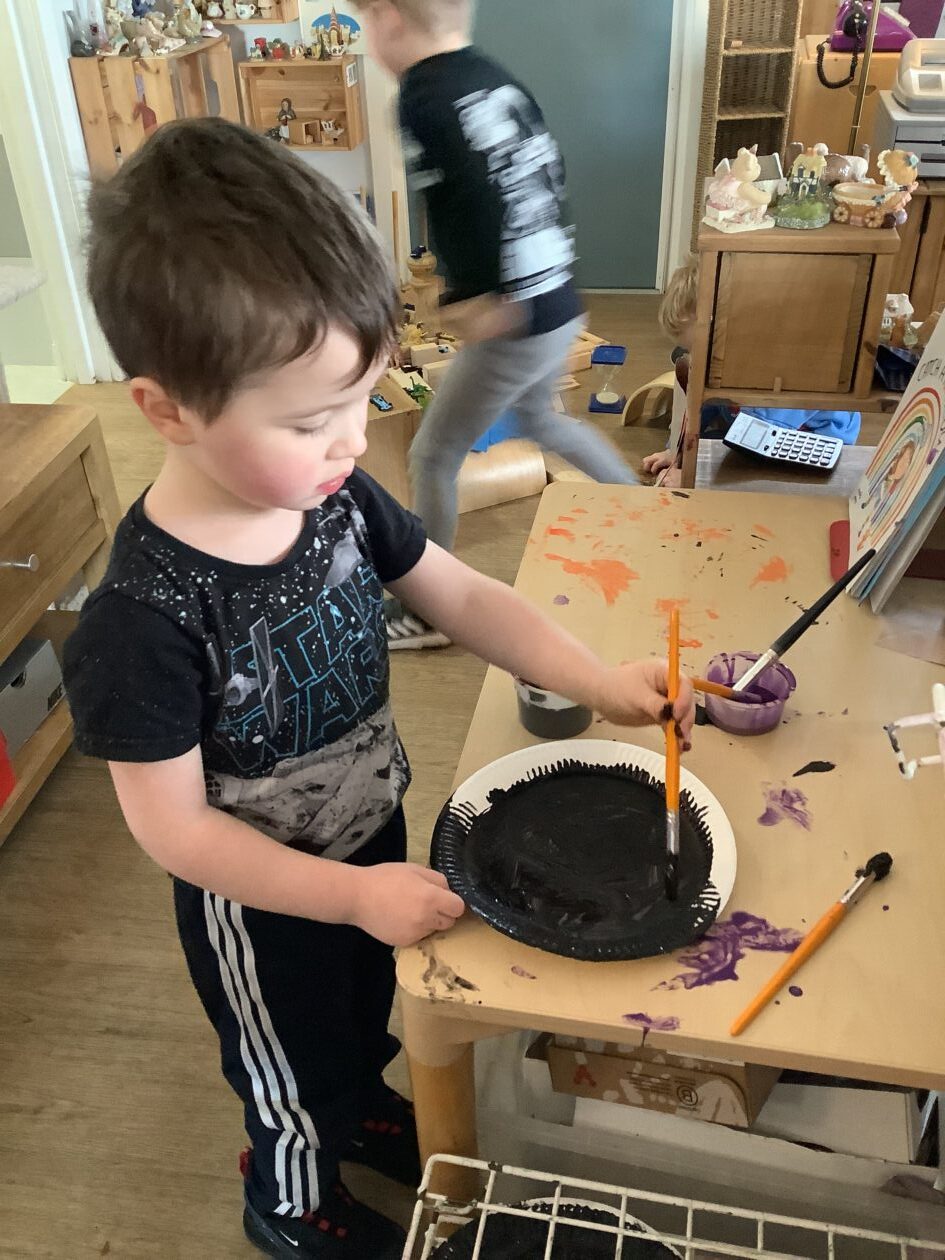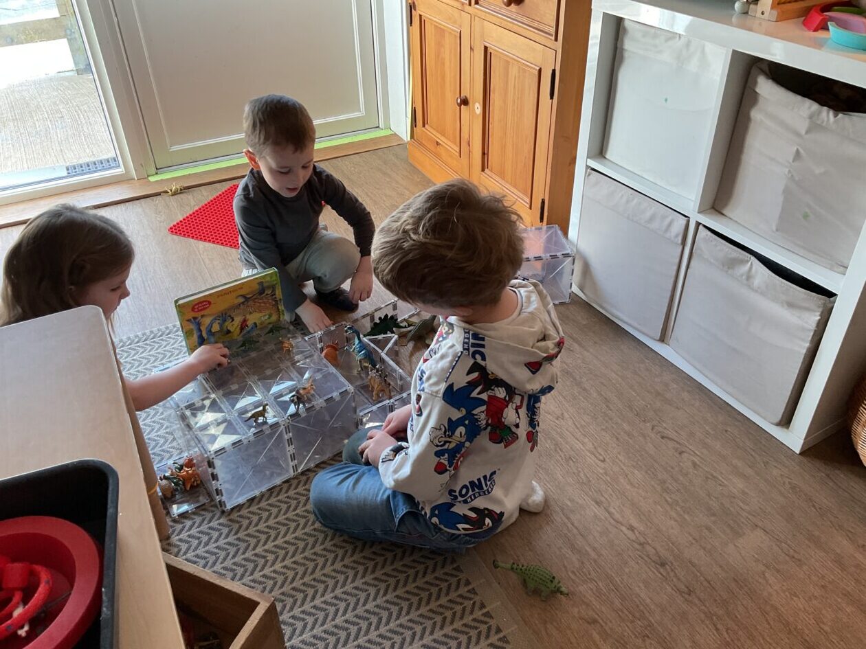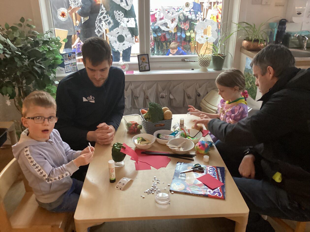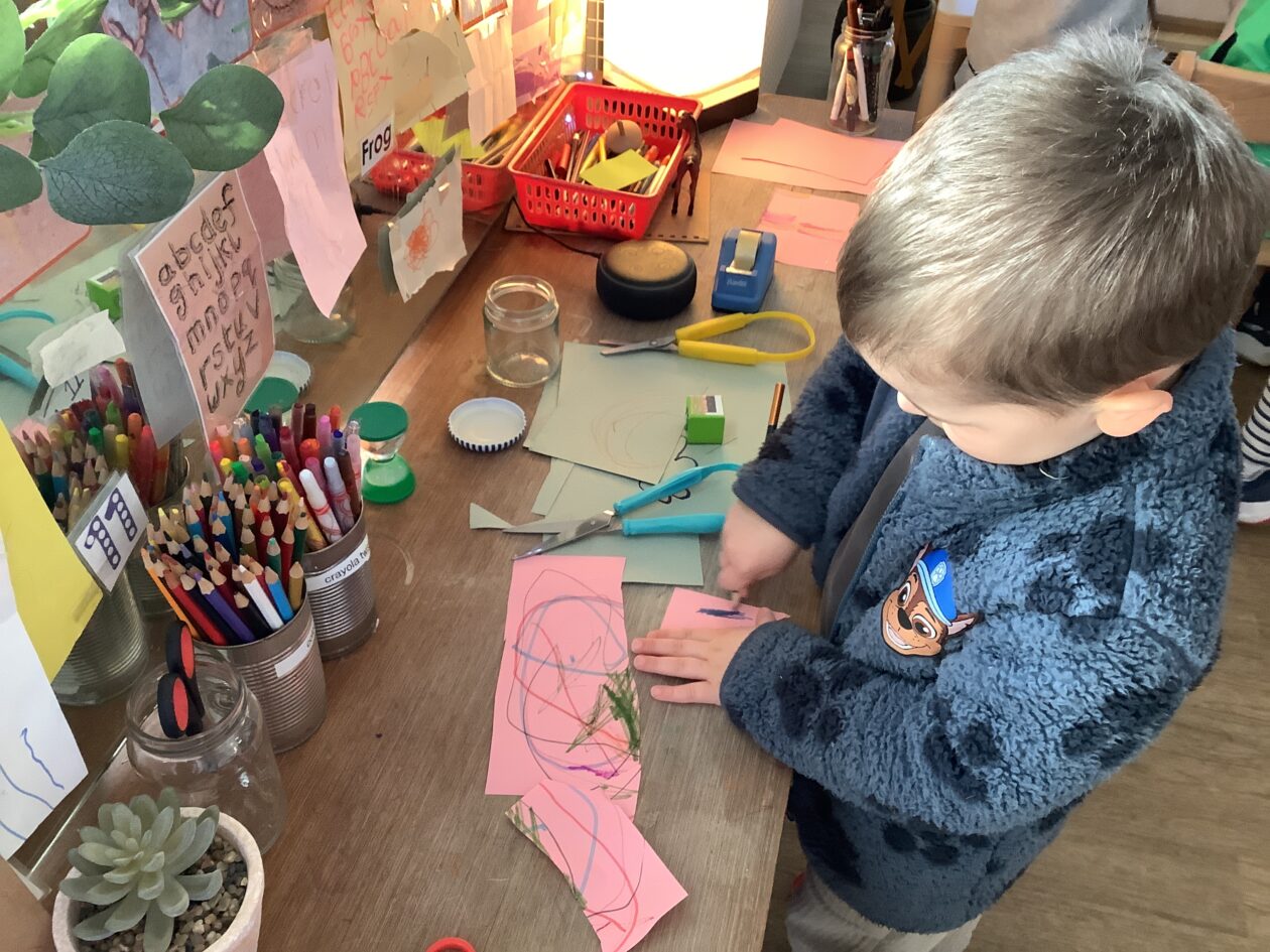 The outdoor room is always a popular choice and a great place to observe schemas (a repeated action used to explore and test theories in play). The bairns have used positioning, transporting, trajectory, enveloping, rotation and enclosure schemas in their play this week. They made paper aeroplanes and then built a platform to launch their planes from, watching how far they flew. They have also been engaged in imaginative play using the large hollow blocks and cable drums as fishing boats. “He is da een dat goes in da water. He is da fishing een and I’m da Captain.”