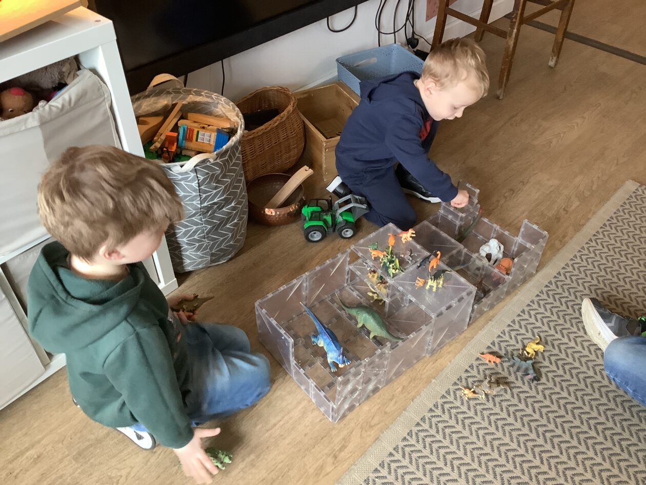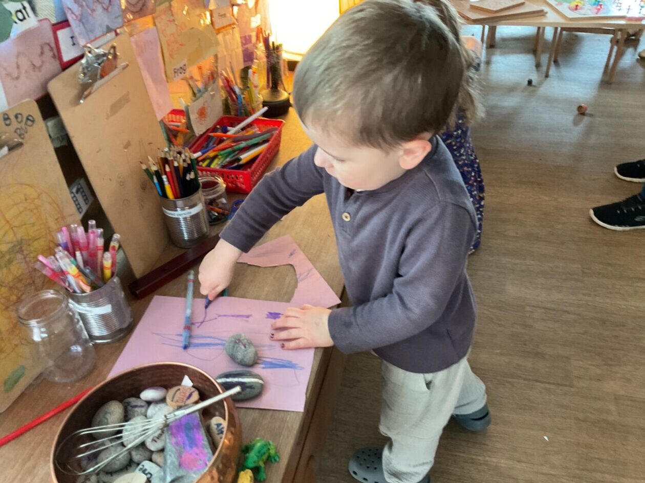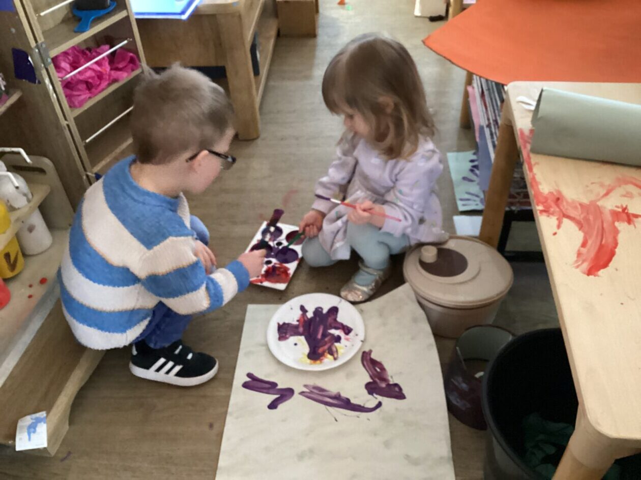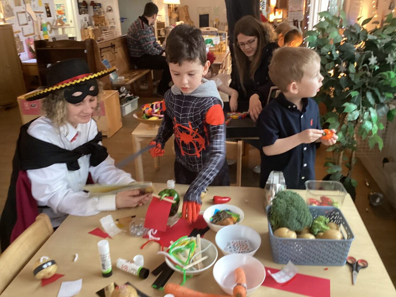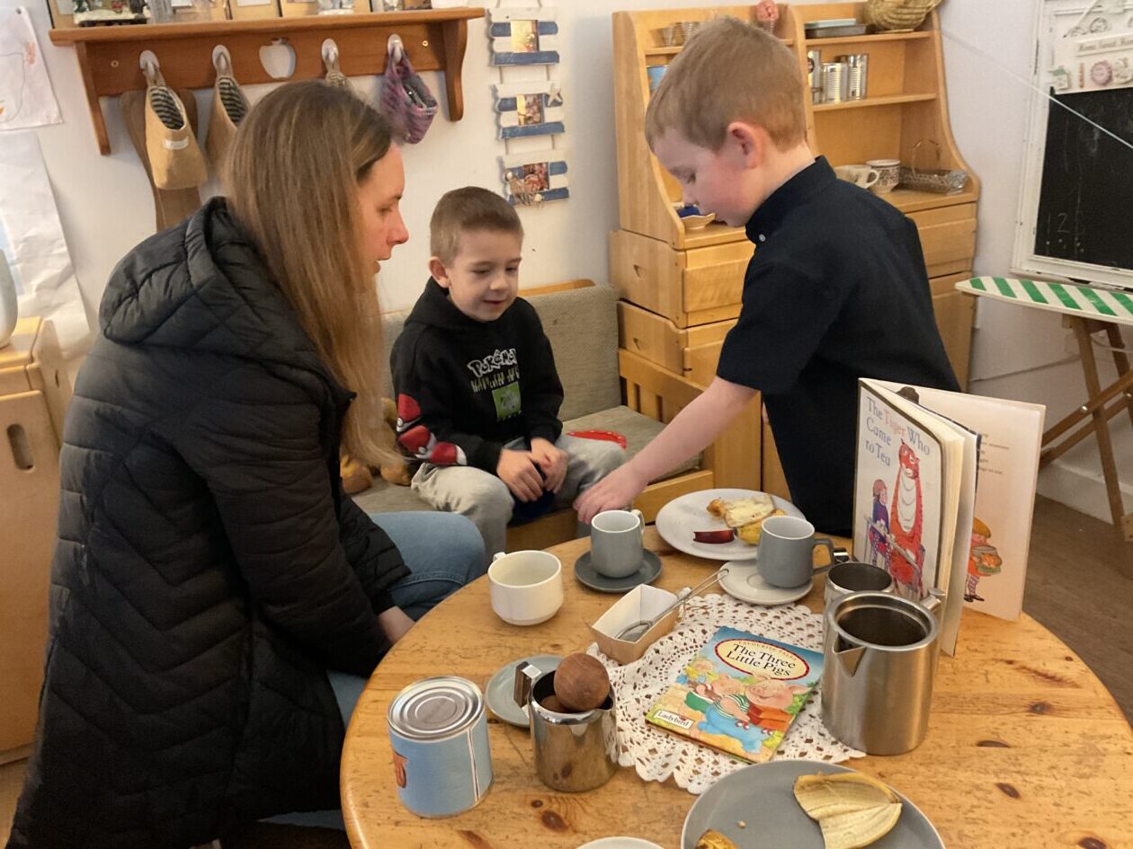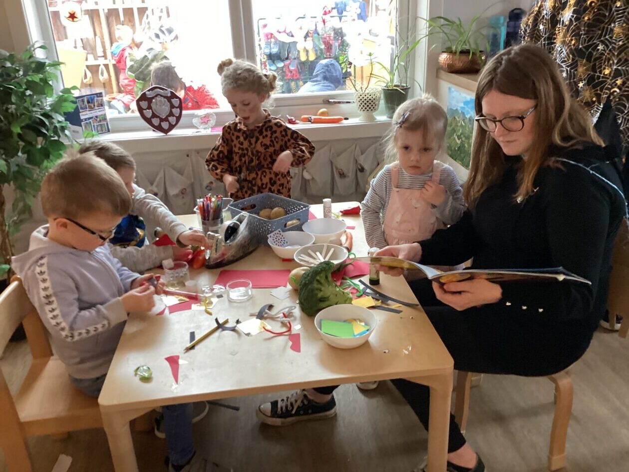 The outdoor room is always a popular choice and a great place to observe schemas (a repeated action used to explore and test theories in play). The bairns have used positioning, transporting, trajectory, enveloping, rotation and enclosure schemas in their play this week. They made paper aeroplanes and then built a platform to launch their planes from, watching how far they flew. They have also been engaged in imaginative play using the large hollow blocks and cable drums as fishing boats. “He is da een dat goes in da water. He is da fishing een and I’m da Captain.”