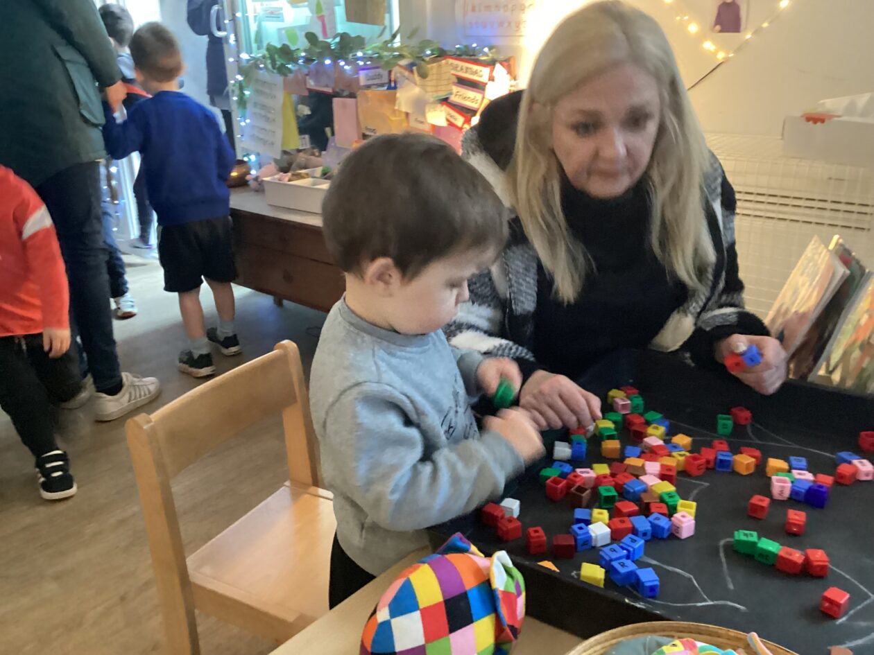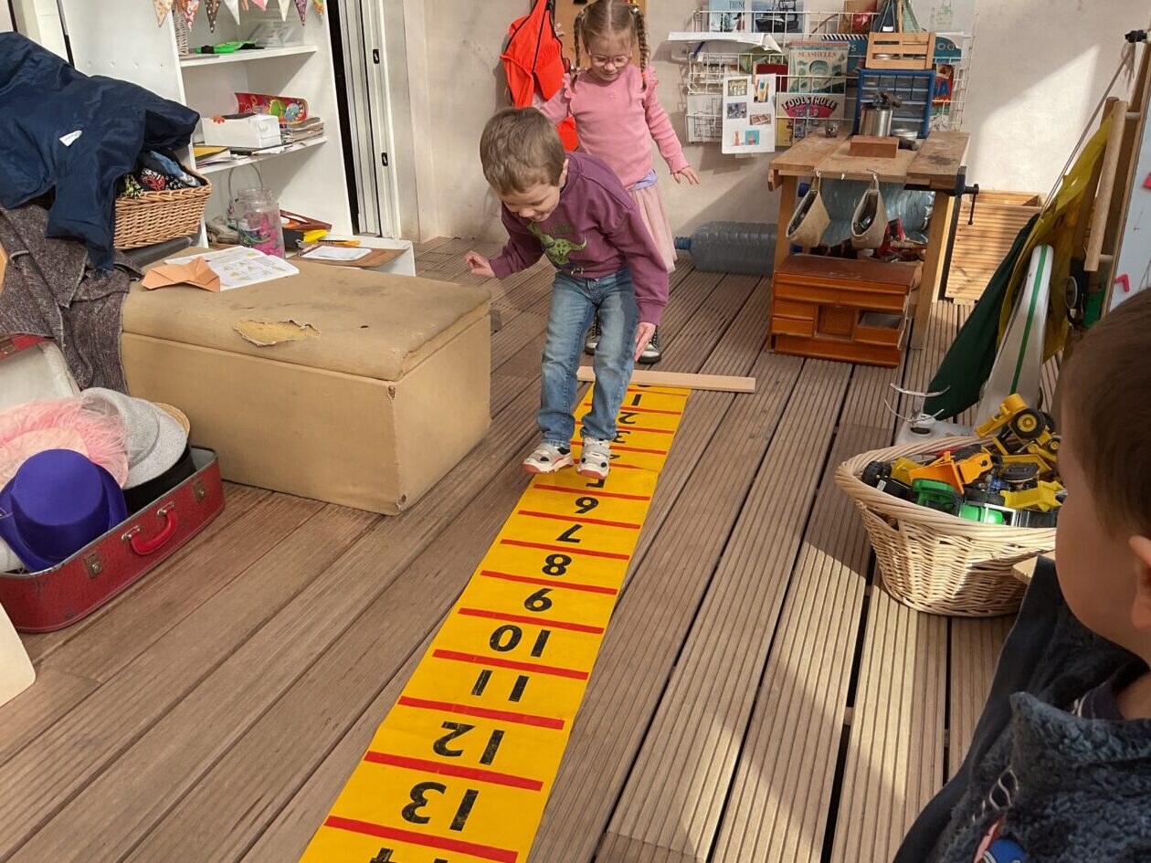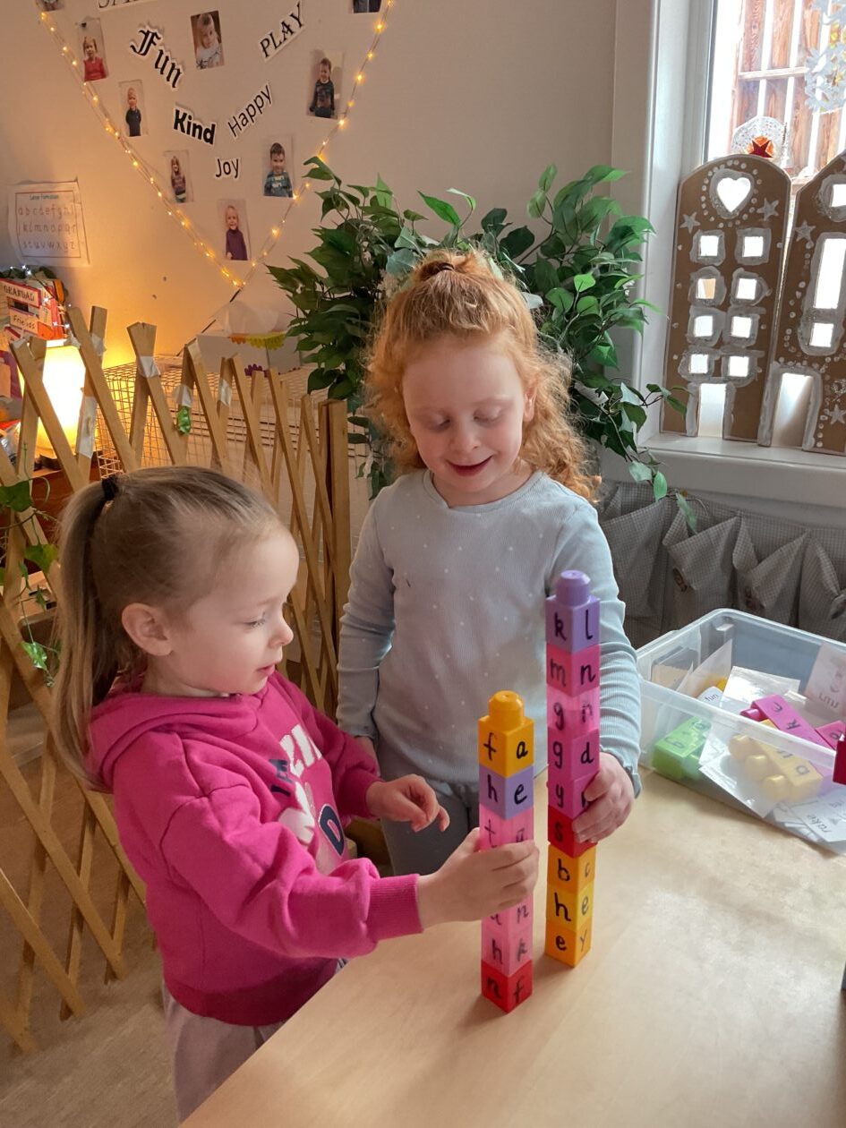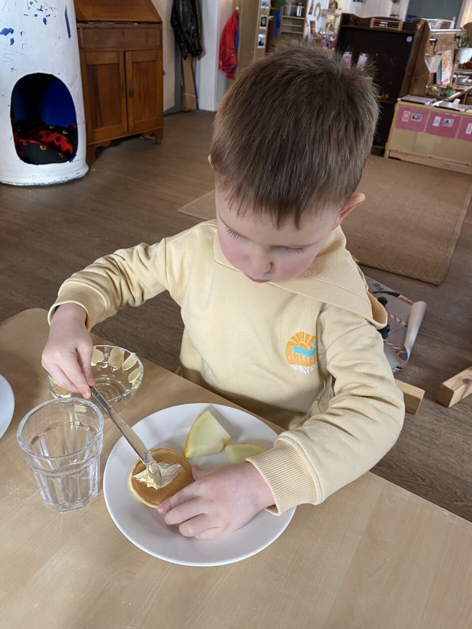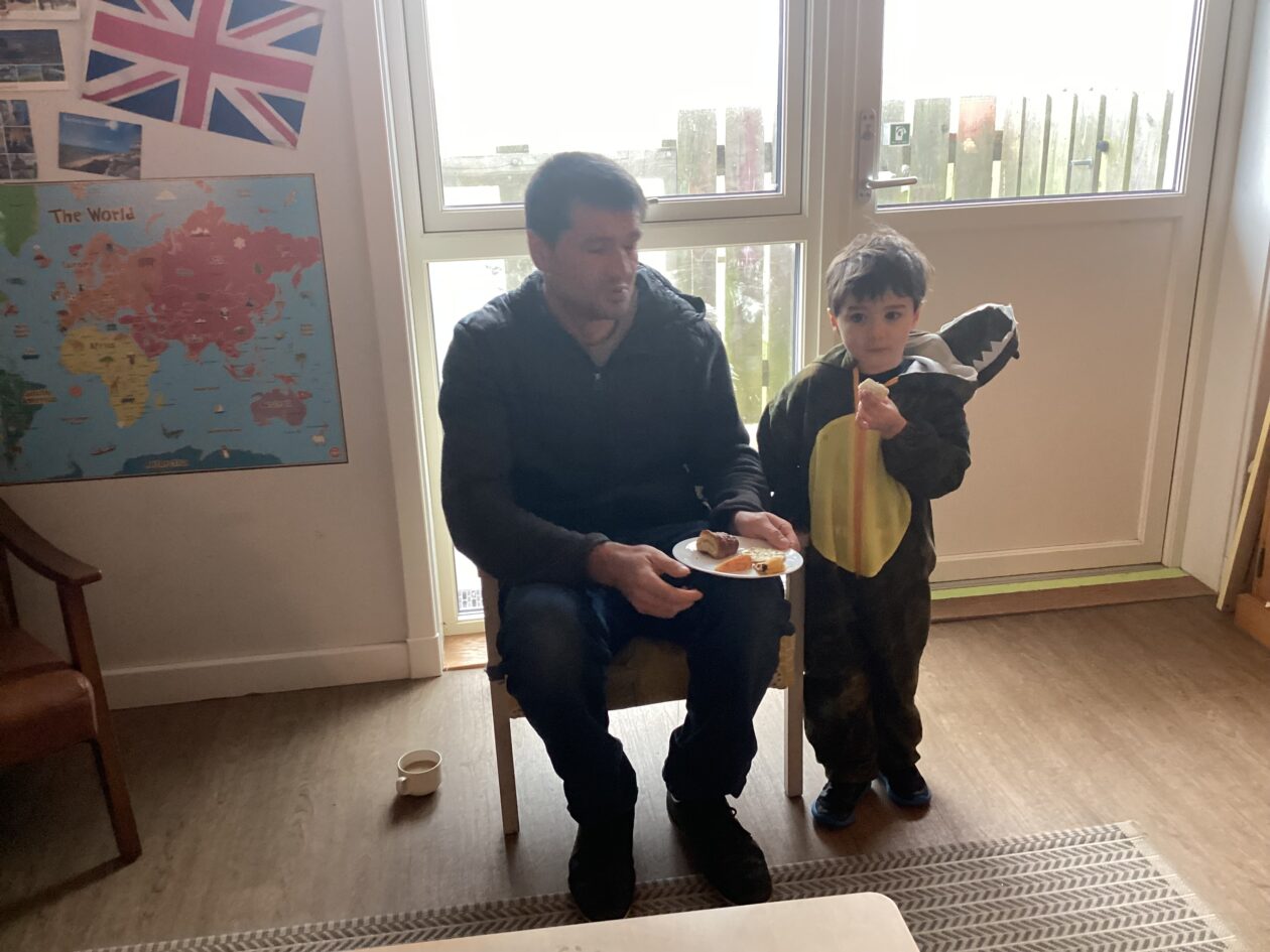 The outdoor room is always a popular choice and a great place to observe schemas (a repeated action used to explore and test theories in play). The bairns have used positioning, transporting, trajectory, enveloping, rotation and enclosure schemas in their play this week. They made paper aeroplanes and then built a platform to launch their planes from, watching how far they flew. They have also been engaged in imaginative play using the large hollow blocks and cable drums as fishing boats. “He is da een dat goes in da water. He is da fishing een and I’m da Captain.”
