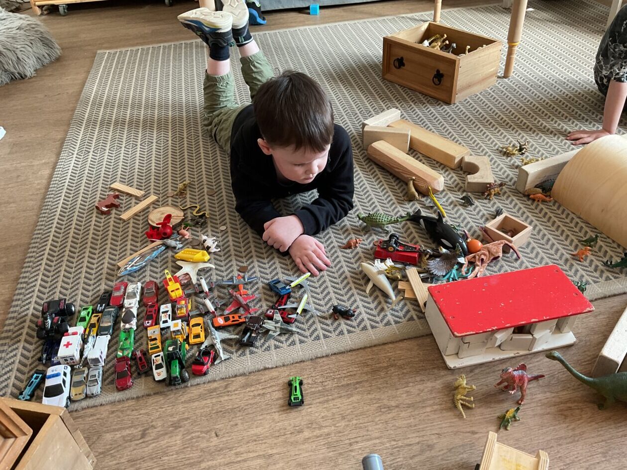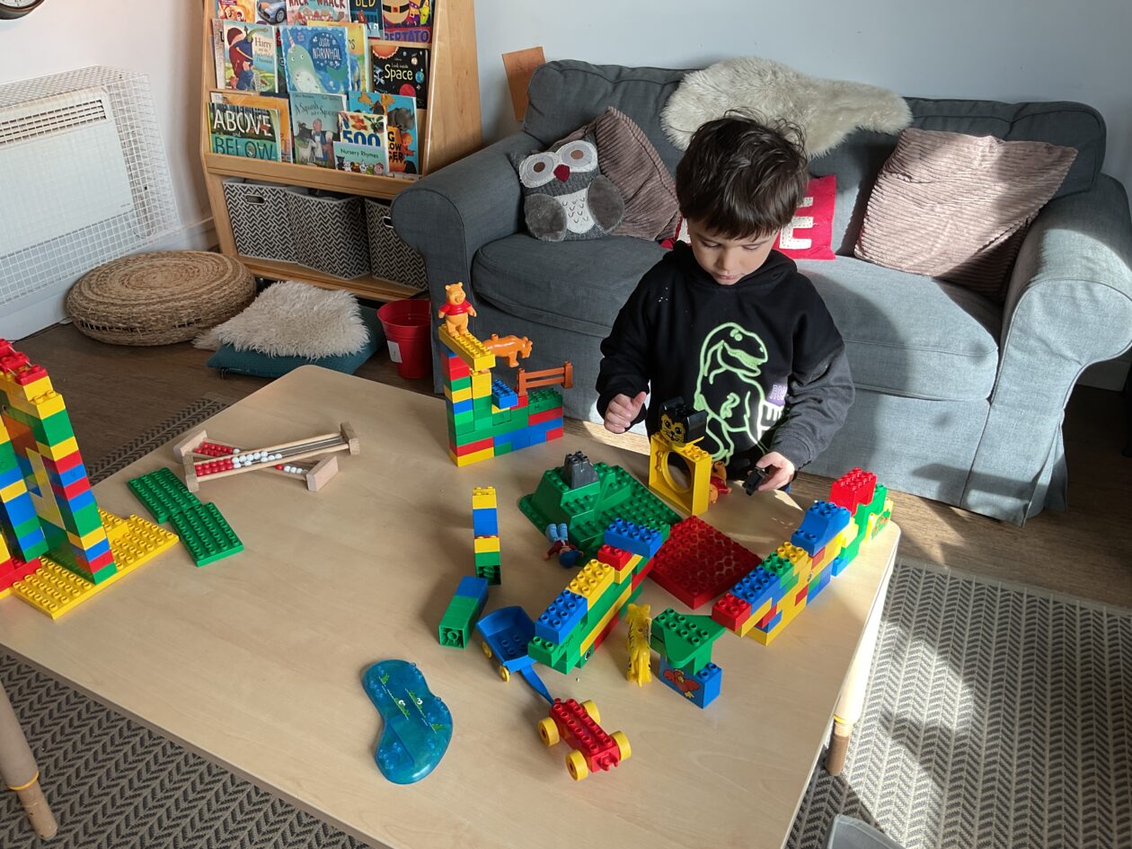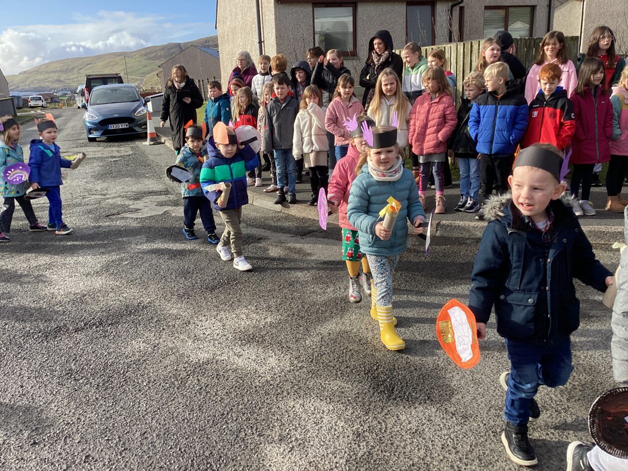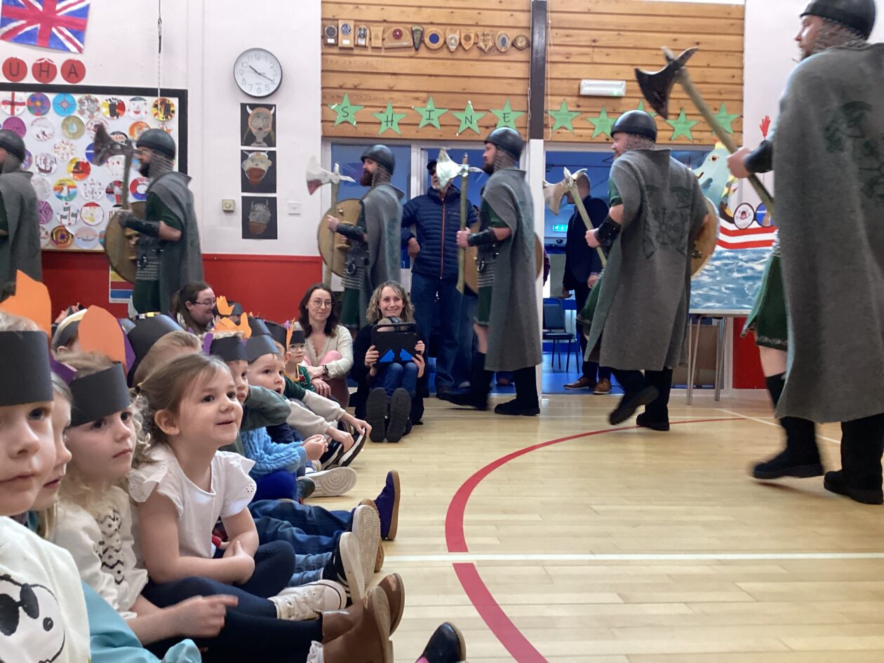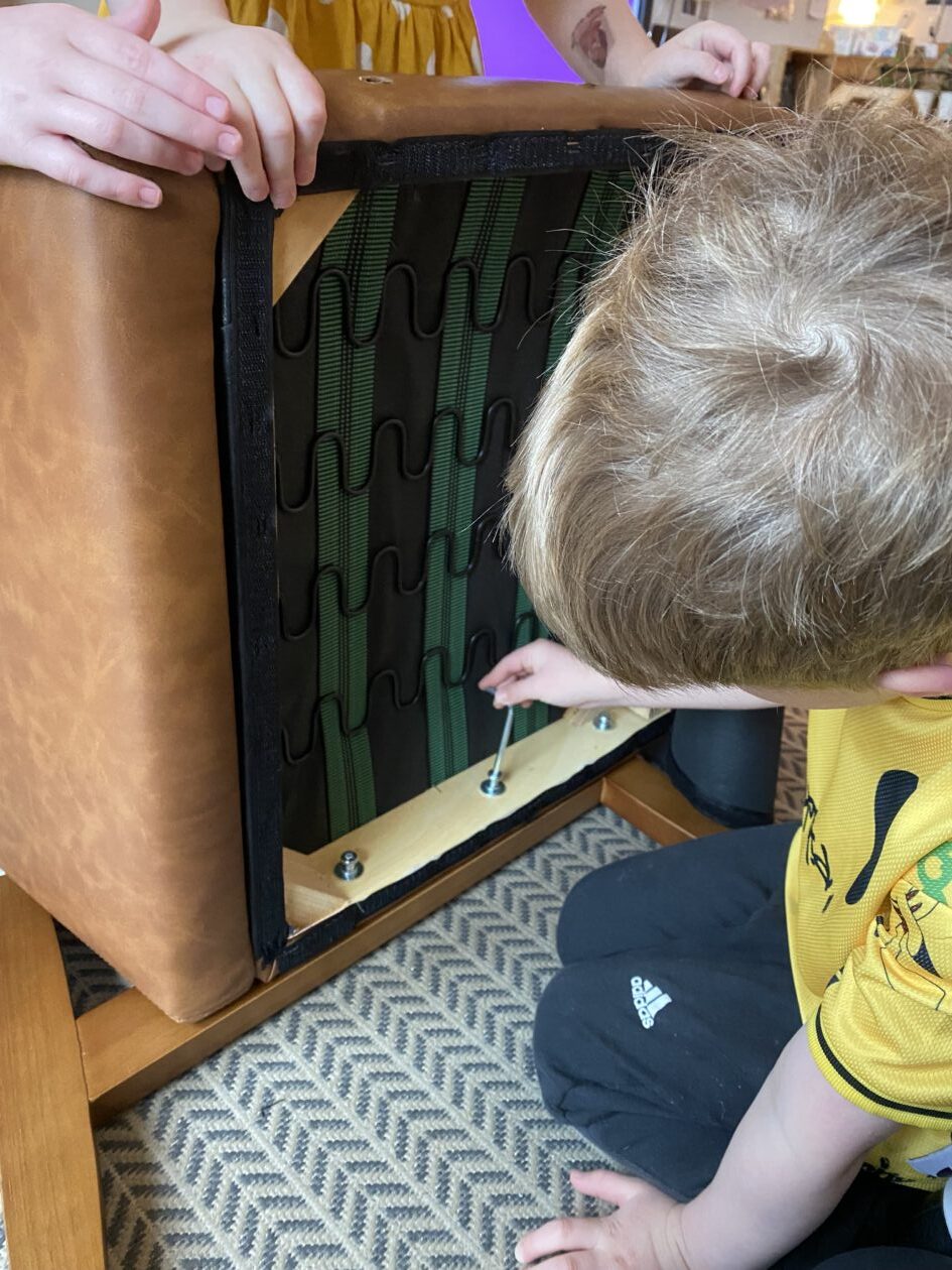 The outdoor room is always a popular choice and a great place to observe schemas (a repeated action used to explore and test theories in play). The bairns have used positioning, transporting, trajectory, enveloping, rotation and enclosure schemas in their play this week. They made paper aeroplanes and then built a platform to launch their planes from, watching how far they flew. They have also been engaged in imaginative play using the large hollow blocks and cable drums as fishing boats. “He is da een dat goes in da water. He is da fishing een and I’m da Captain.”