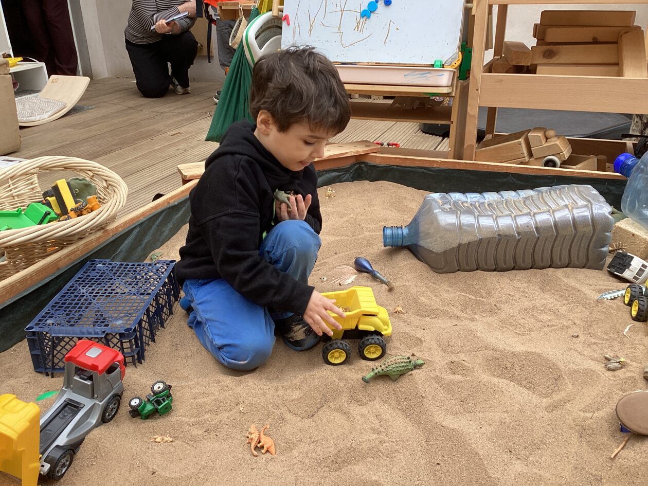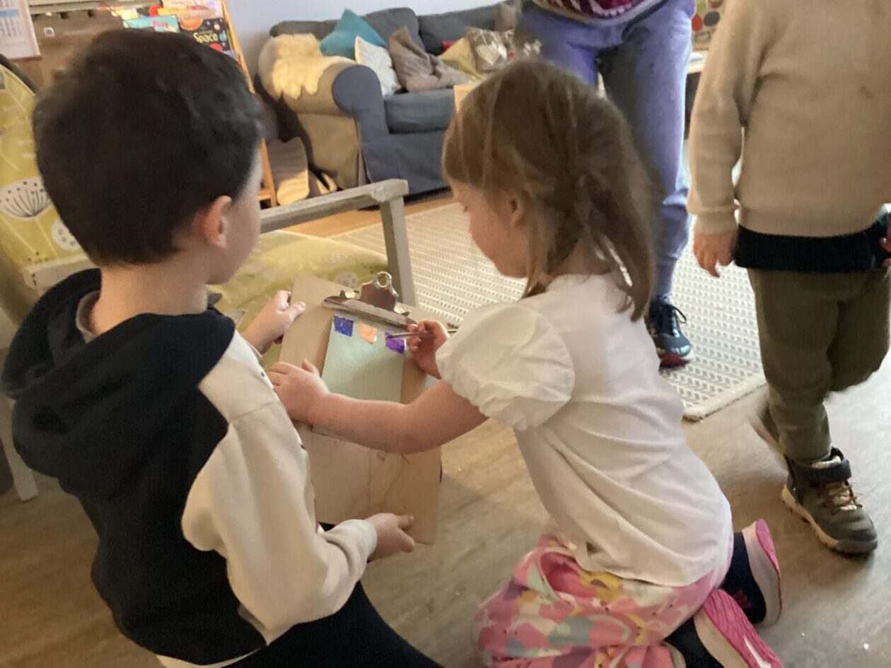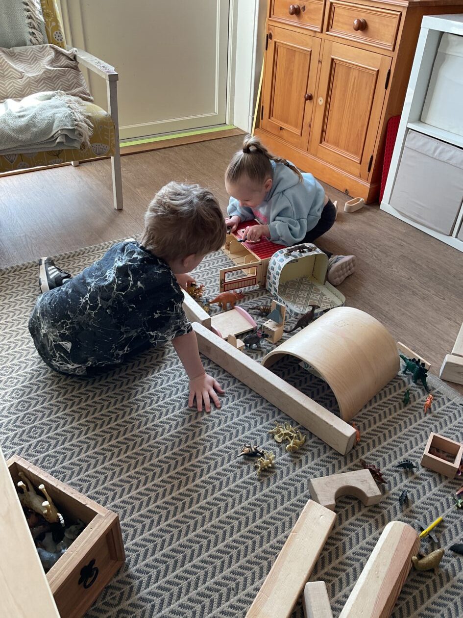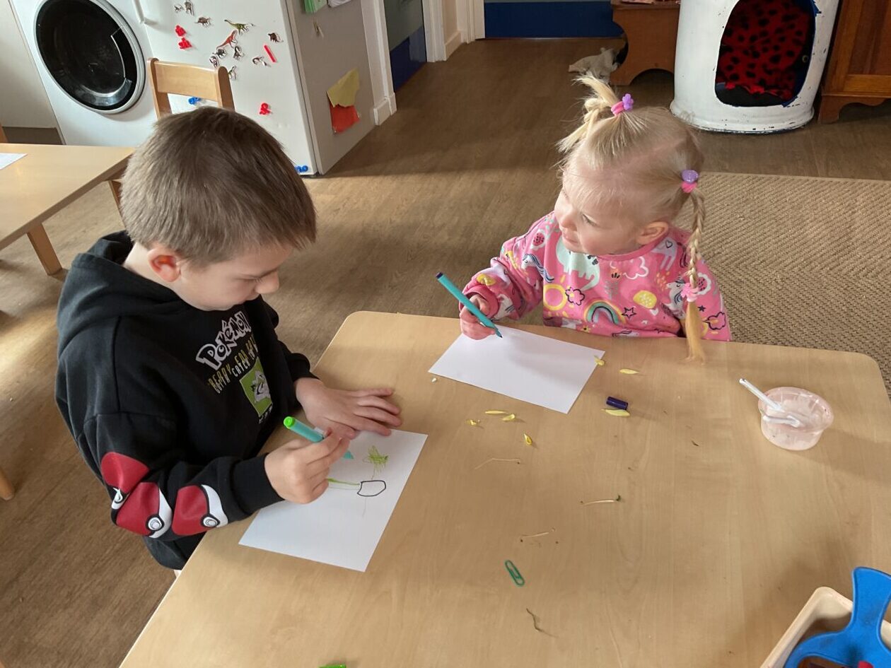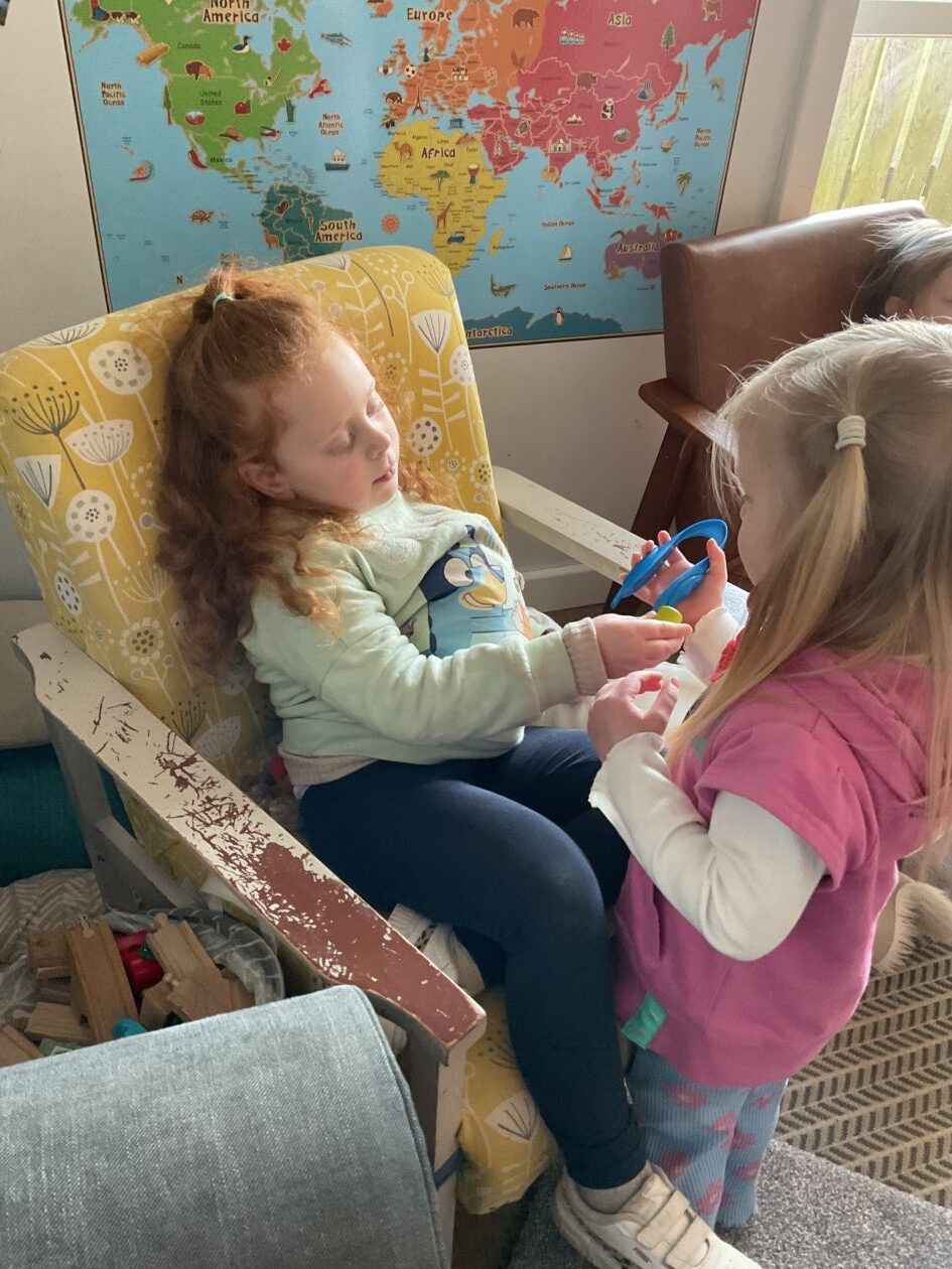 The outdoor room is always a popular choice and a great place to observe schemas (a repeated action used to explore and test theories in play). The bairns have used positioning, transporting, trajectory, enveloping, rotation and enclosure schemas in their play this week. They made paper aeroplanes and then built a platform to launch their planes from, watching how far they flew. They have also been engaged in imaginative play using the large hollow blocks and cable drums as fishing boats. “He is da een dat goes in da water. He is da fishing een and I’m da Captain.”