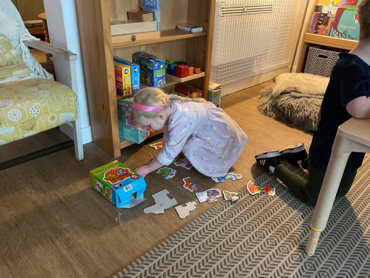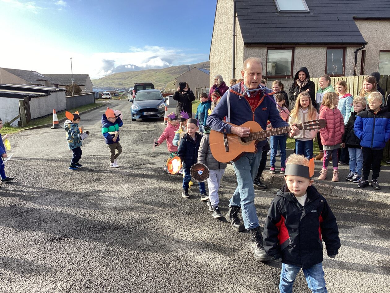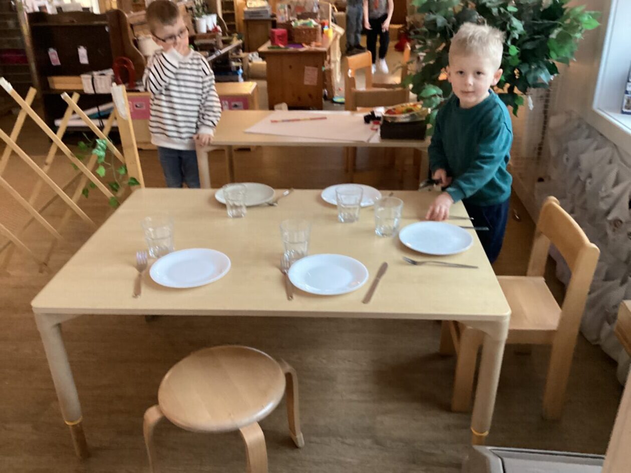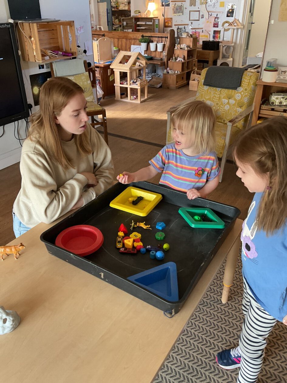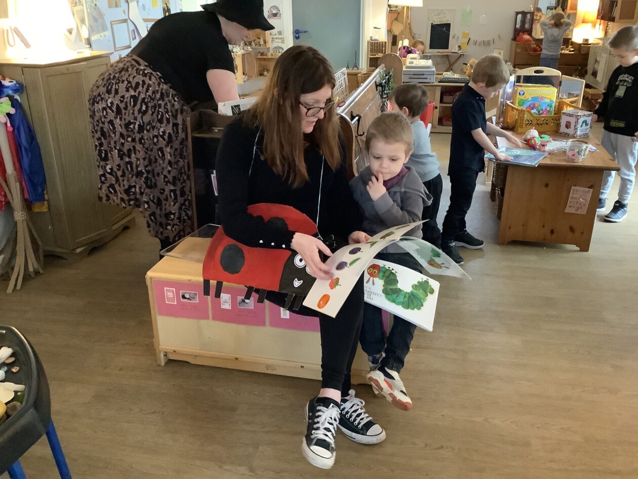 The outdoor room is always a popular choice and a great place to observe schemas (a repeated action used to explore and test theories in play). The bairns have used positioning, transporting, trajectory, enveloping, rotation and enclosure schemas in their play this week. They made paper aeroplanes and then built a platform to launch their planes from, watching how far they flew. They have also been engaged in imaginative play using the large hollow blocks and cable drums as fishing boats. “He is da een dat goes in da water. He is da fishing een and I’m da Captain.”