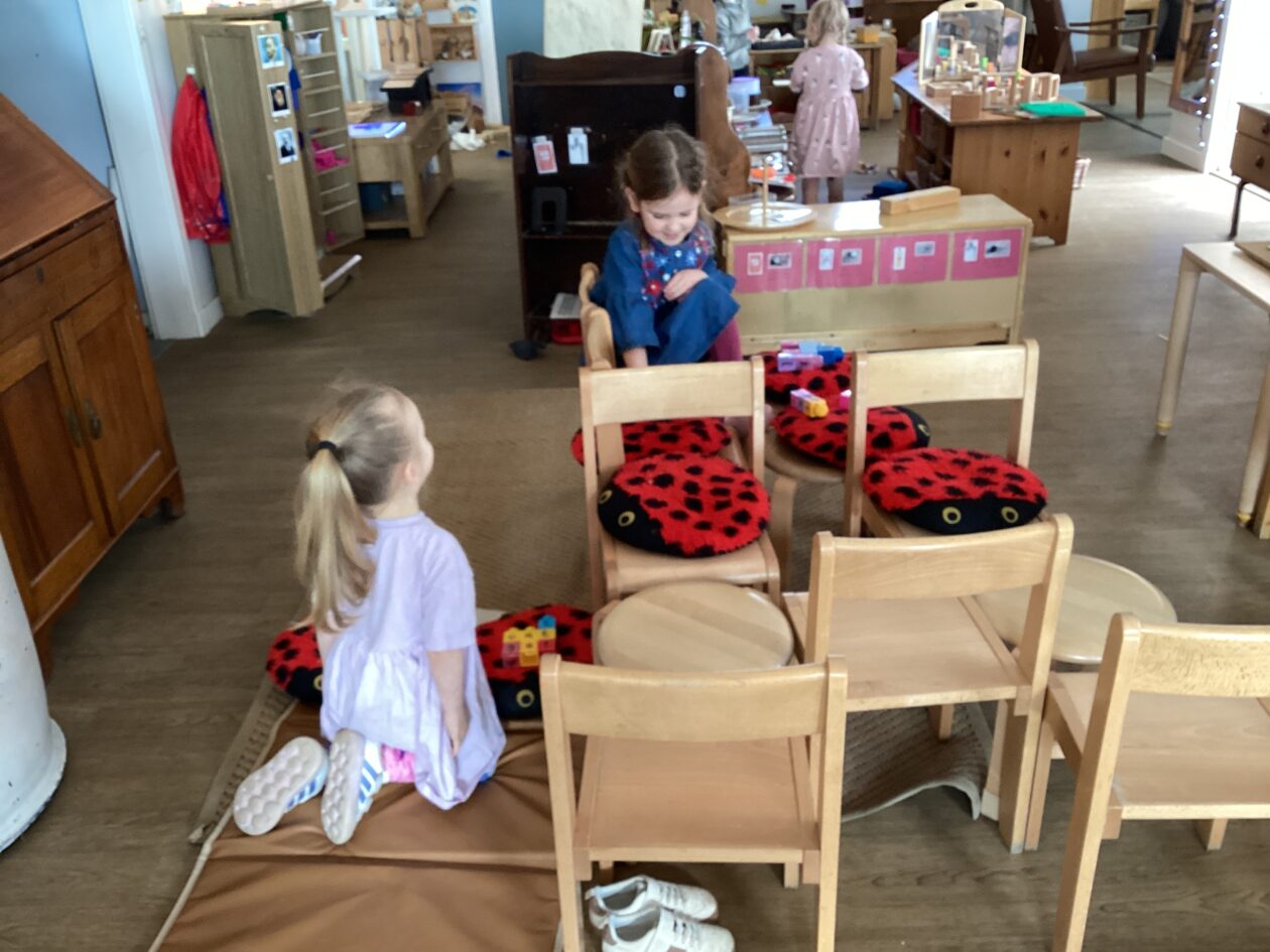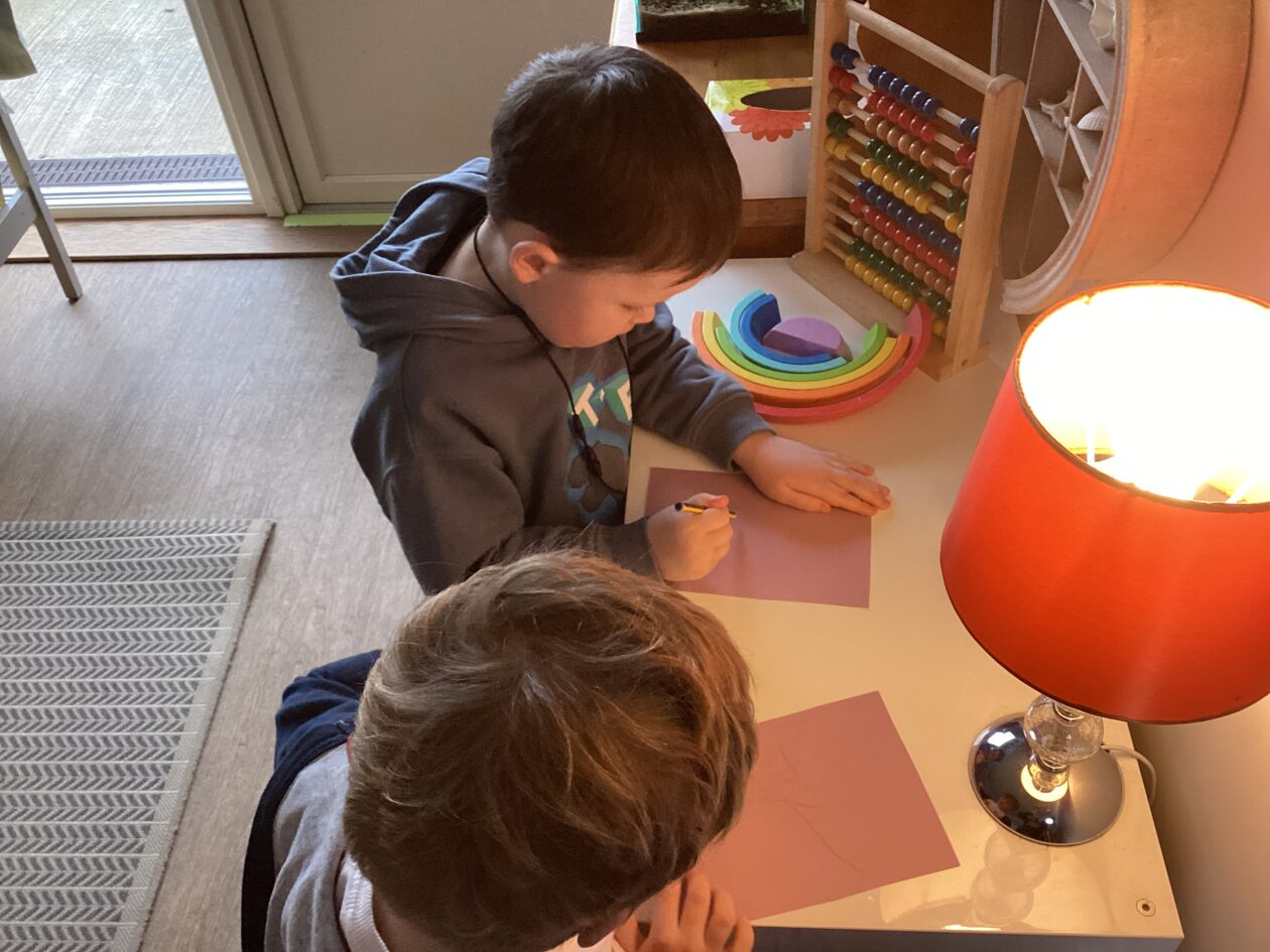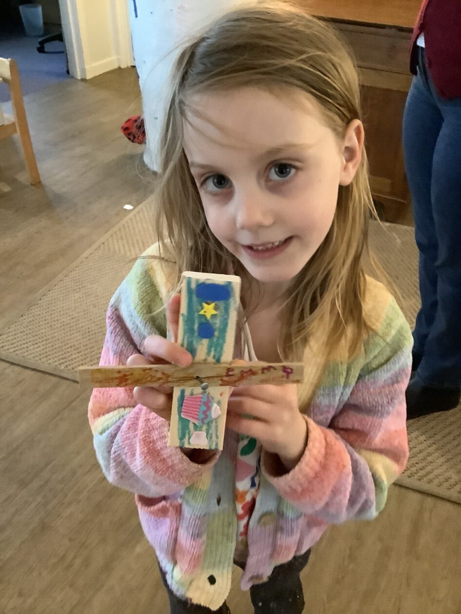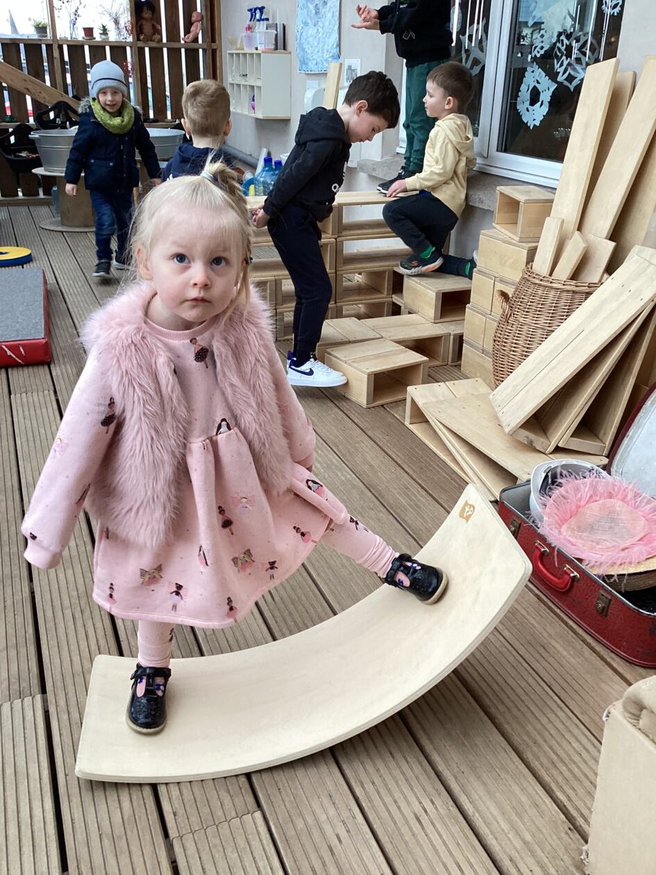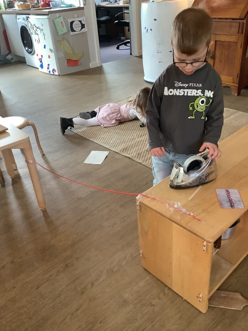 The outdoor room is always a popular choice and a great place to observe schemas (a repeated action used to explore and test theories in play). The bairns have used positioning, transporting, trajectory, enveloping, rotation and enclosure schemas in their play this week. They made paper aeroplanes and then built a platform to launch their planes from, watching how far they flew. They have also been engaged in imaginative play using the large hollow blocks and cable drums as fishing boats. “He is da een dat goes in da water. He is da fishing een and I’m da Captain.”