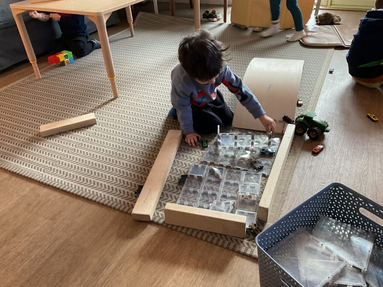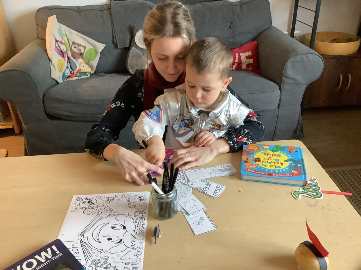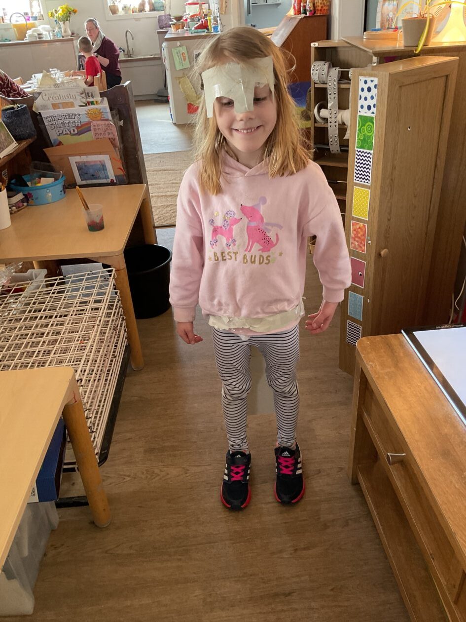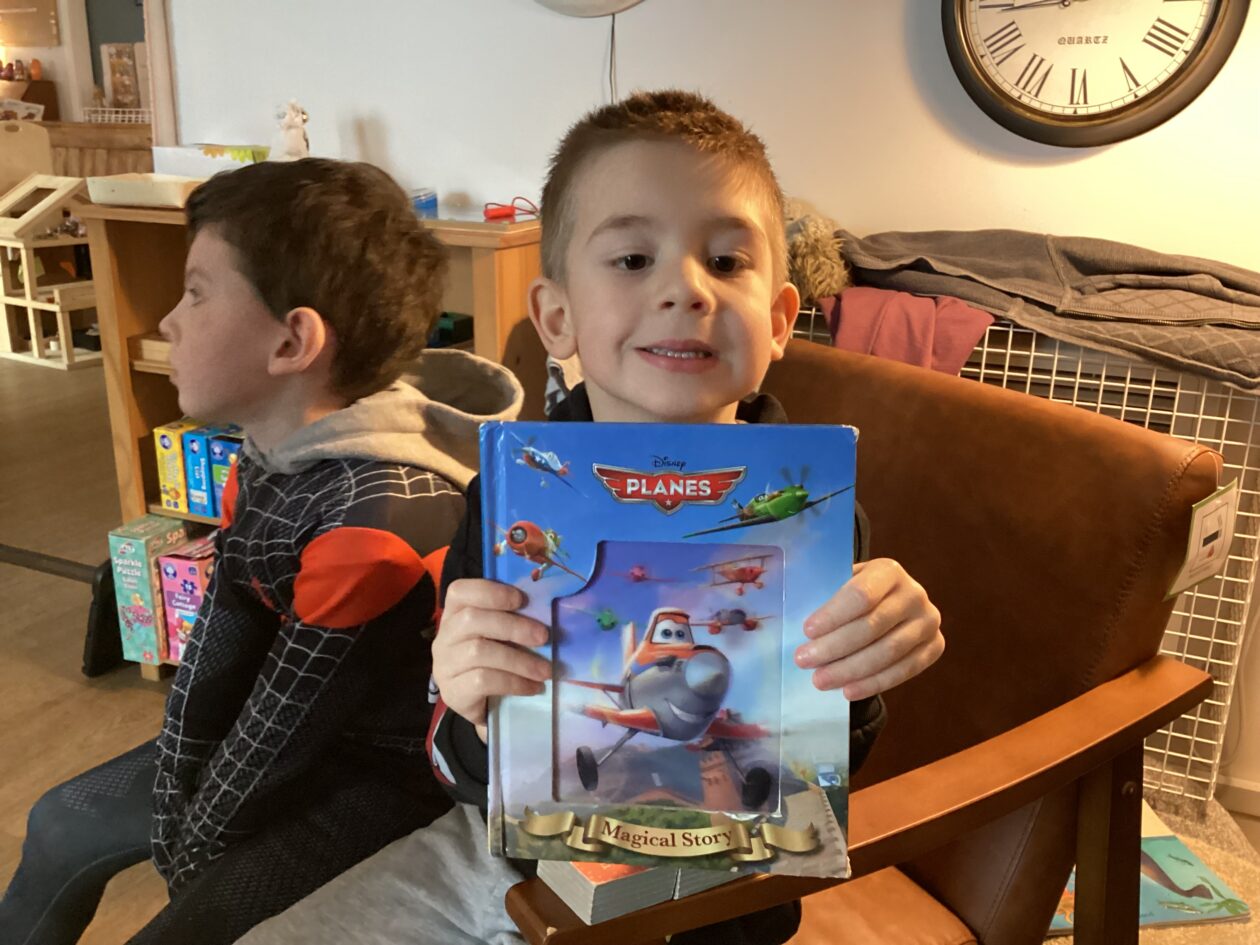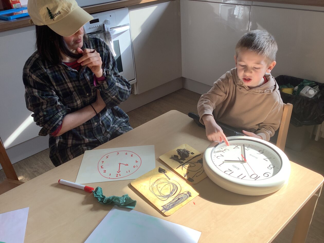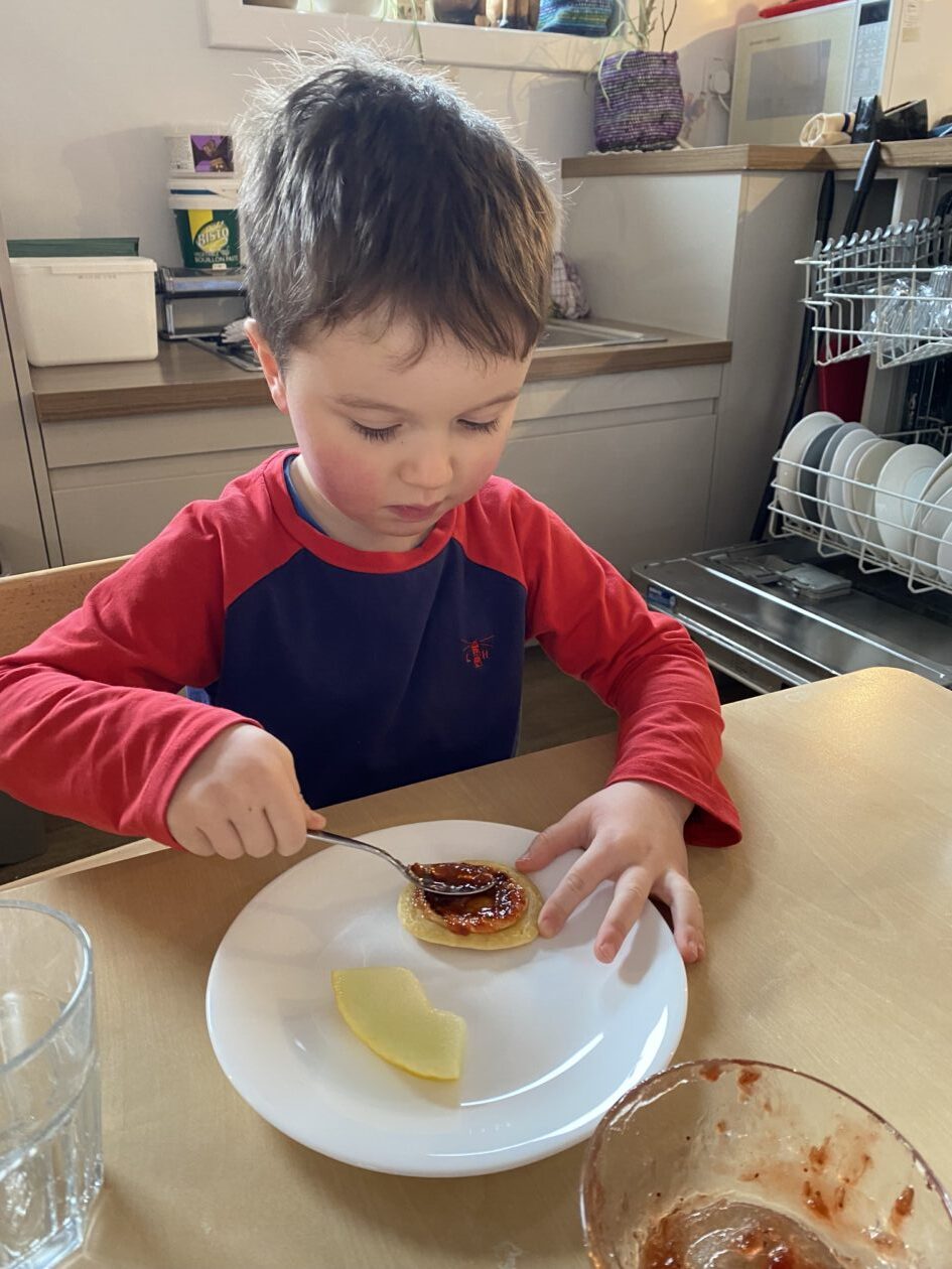 The outdoor room is always a popular choice and a great place to observe schemas (a repeated action used to explore and test theories in play). The bairns have used positioning, transporting, trajectory, enveloping, rotation and enclosure schemas in their play this week. They made paper aeroplanes and then built a platform to launch their planes from, watching how far they flew. They have also been engaged in imaginative play using the large hollow blocks and cable drums as fishing boats. “He is da een dat goes in da water. He is da fishing een and I’m da Captain.”
